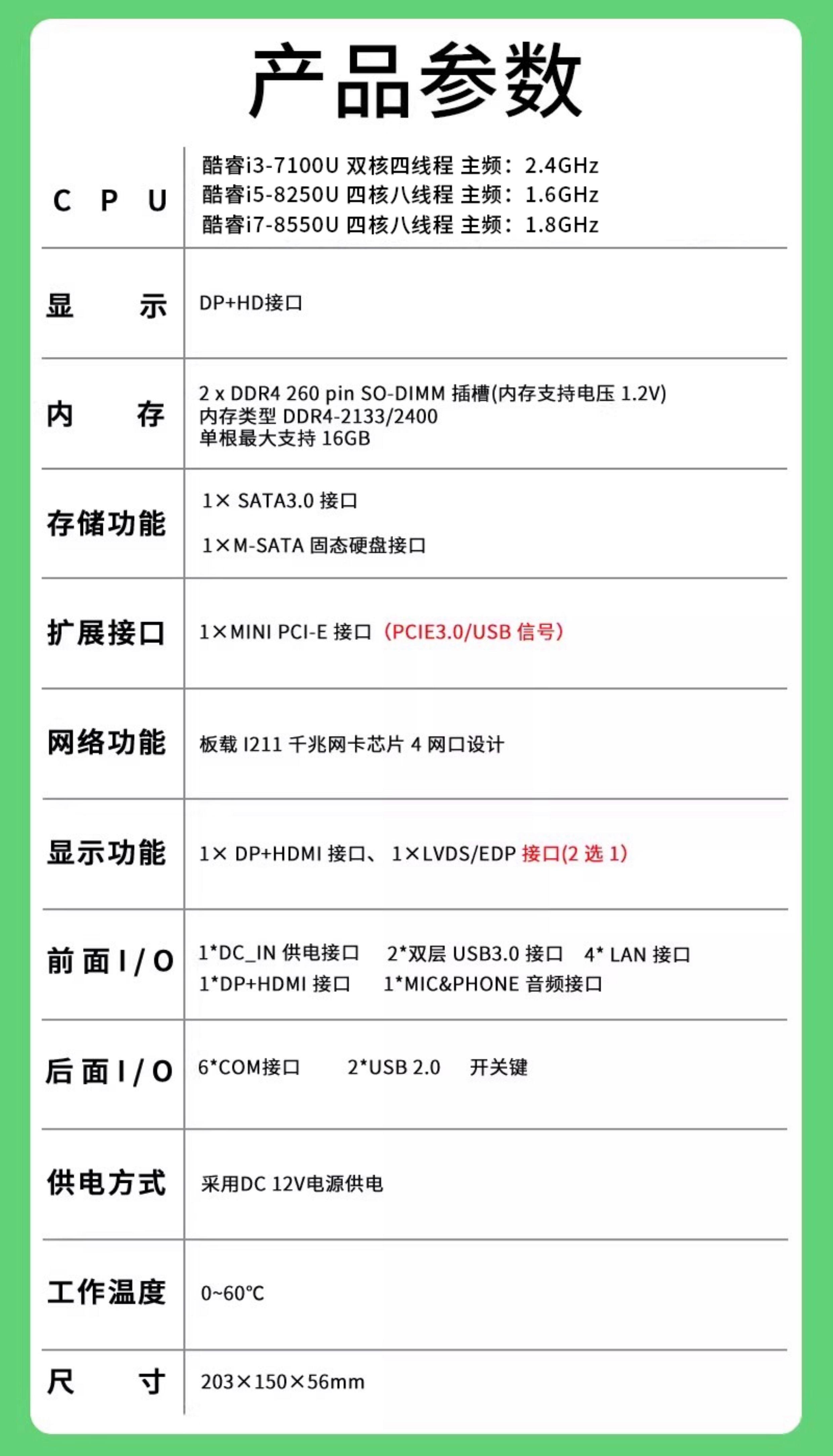 | Package Type | H16 Chassis Four Network Six Serial I3-7100U,H16 Chassis Four Network Six Serial I5-8250U,H16 Chassis Four Network Six Serial I7-8550U |