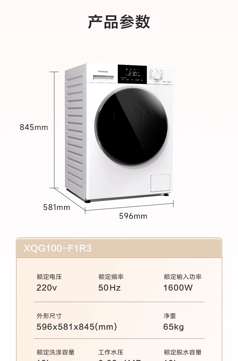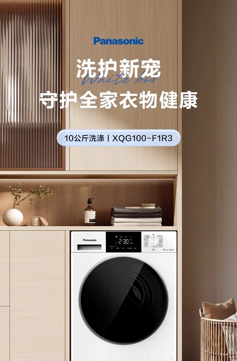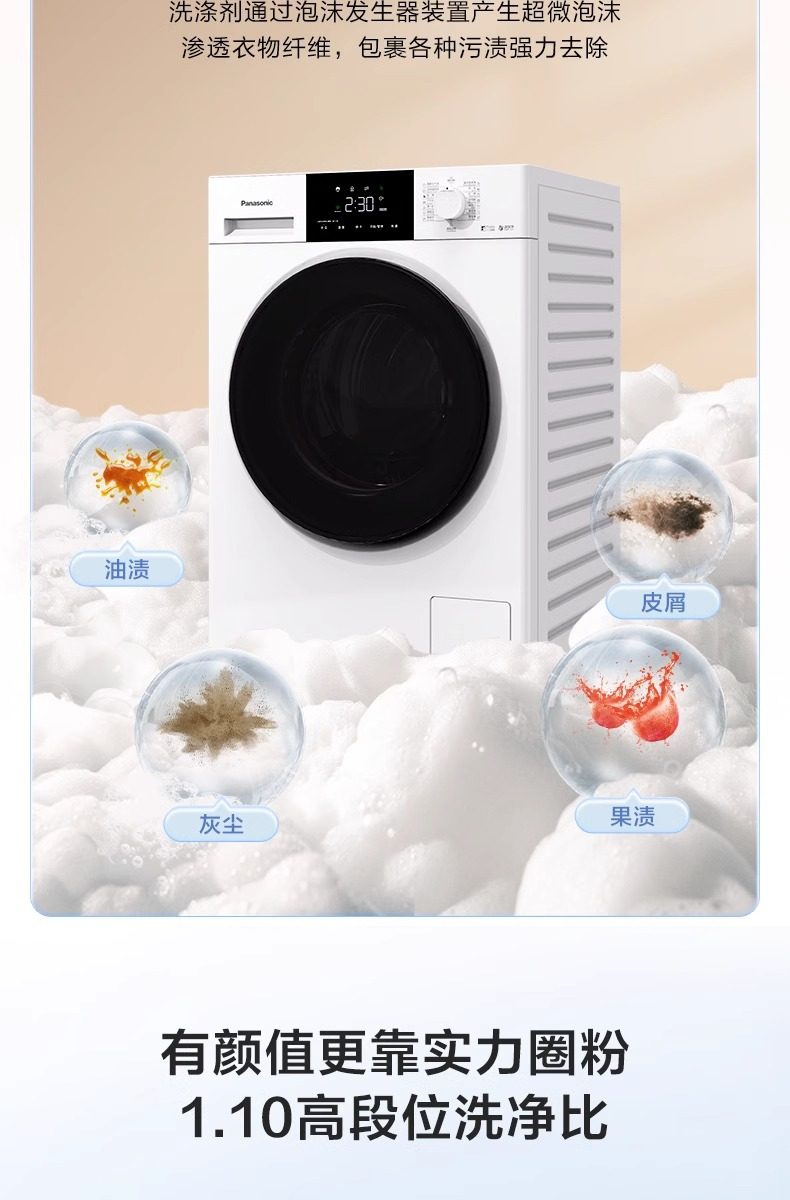Panasonic Drum Washing Machine 10kg Fully Automatic Ultra-Thin Night Wash Warm Water Foam Cleaning F1R3 White 3971