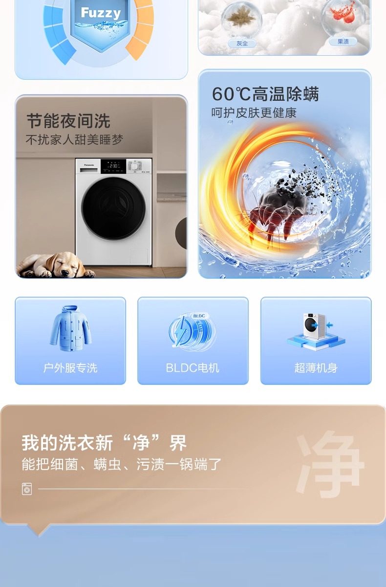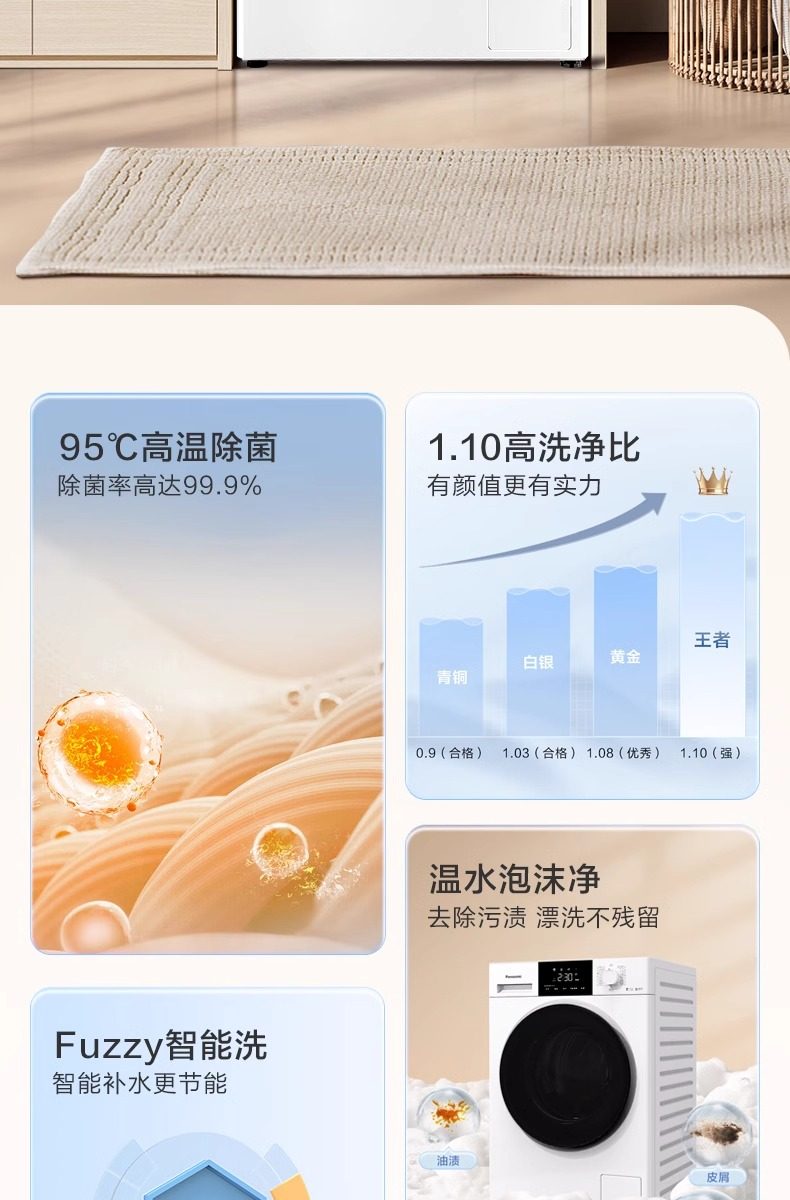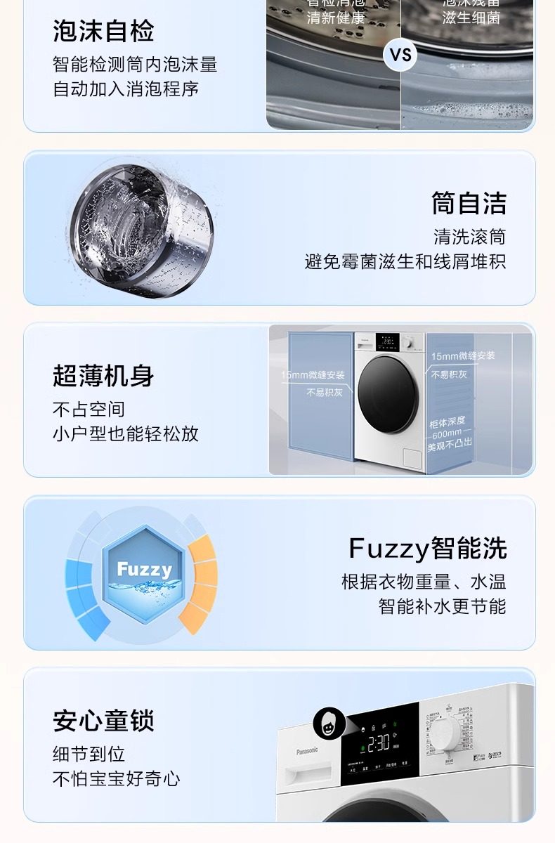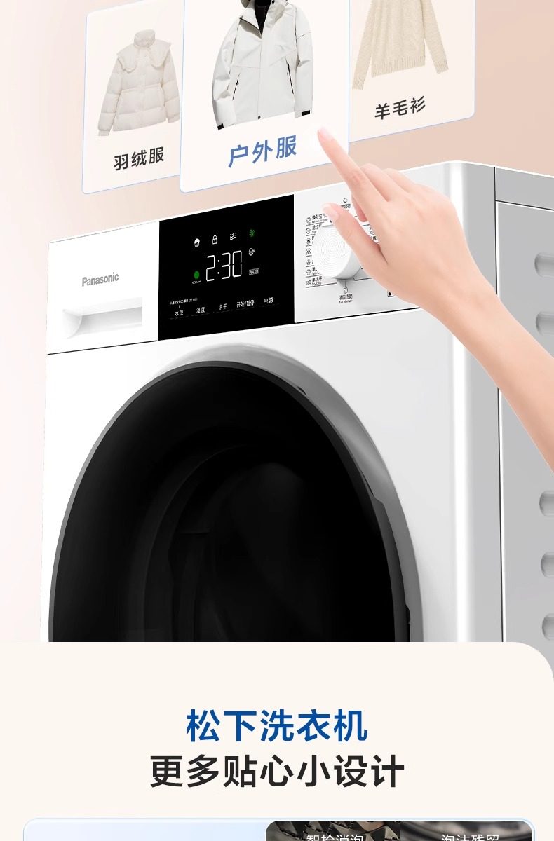 Panasonic Drum Washing Machine 10kg Fully Automatic Ultra-Thin Night Wash Warm Water Foam Cleaning F1R3 White 3971