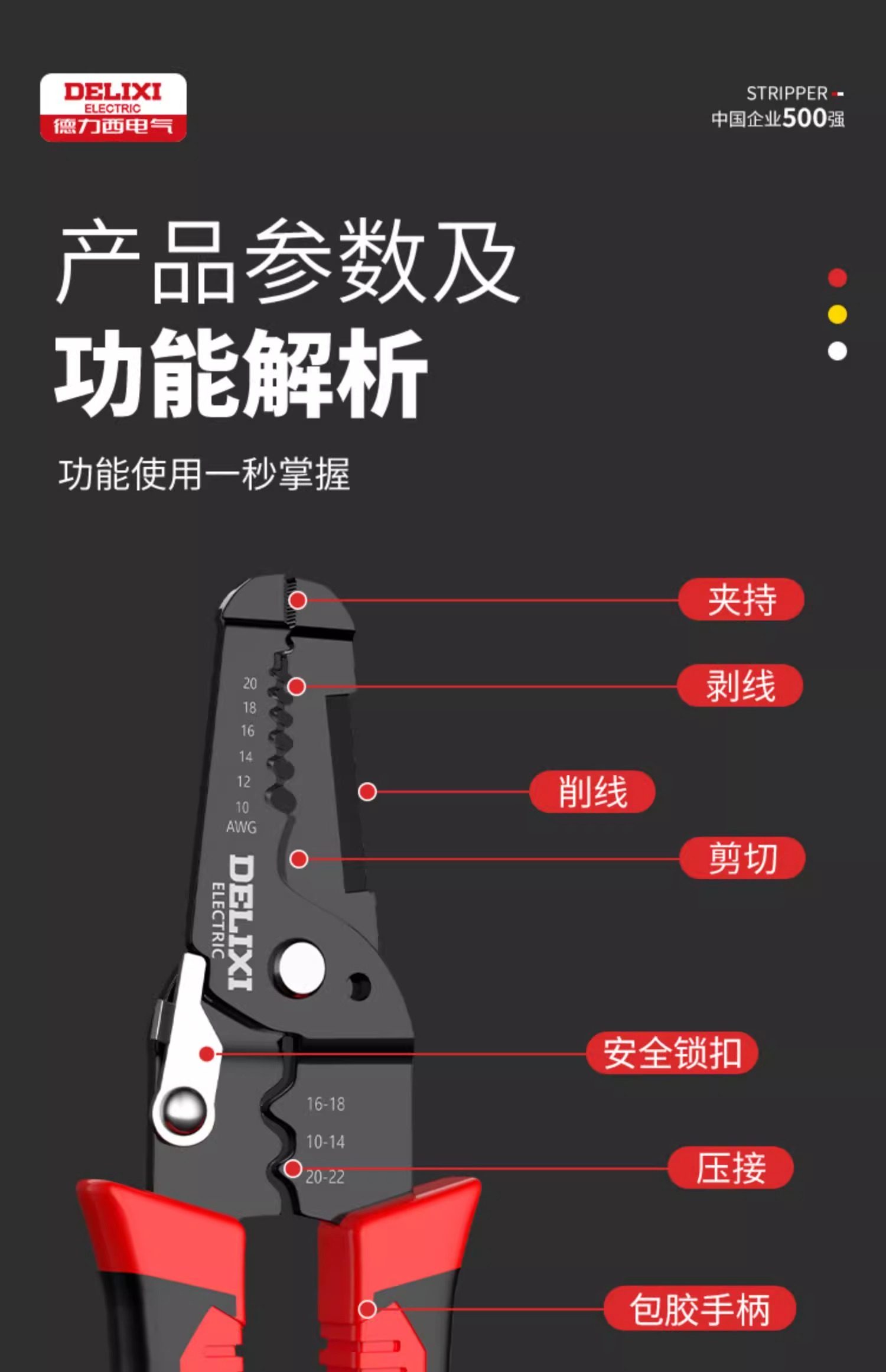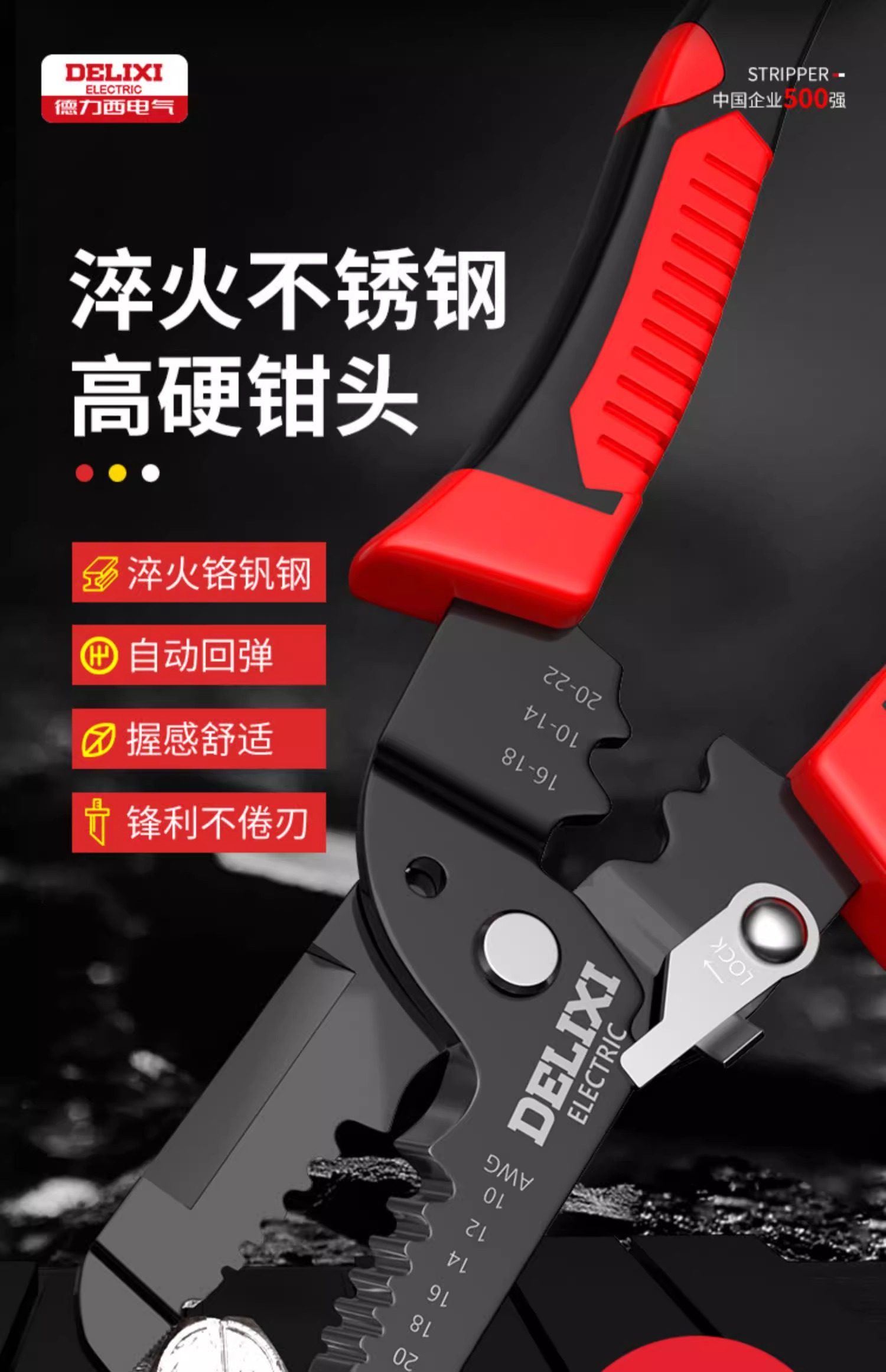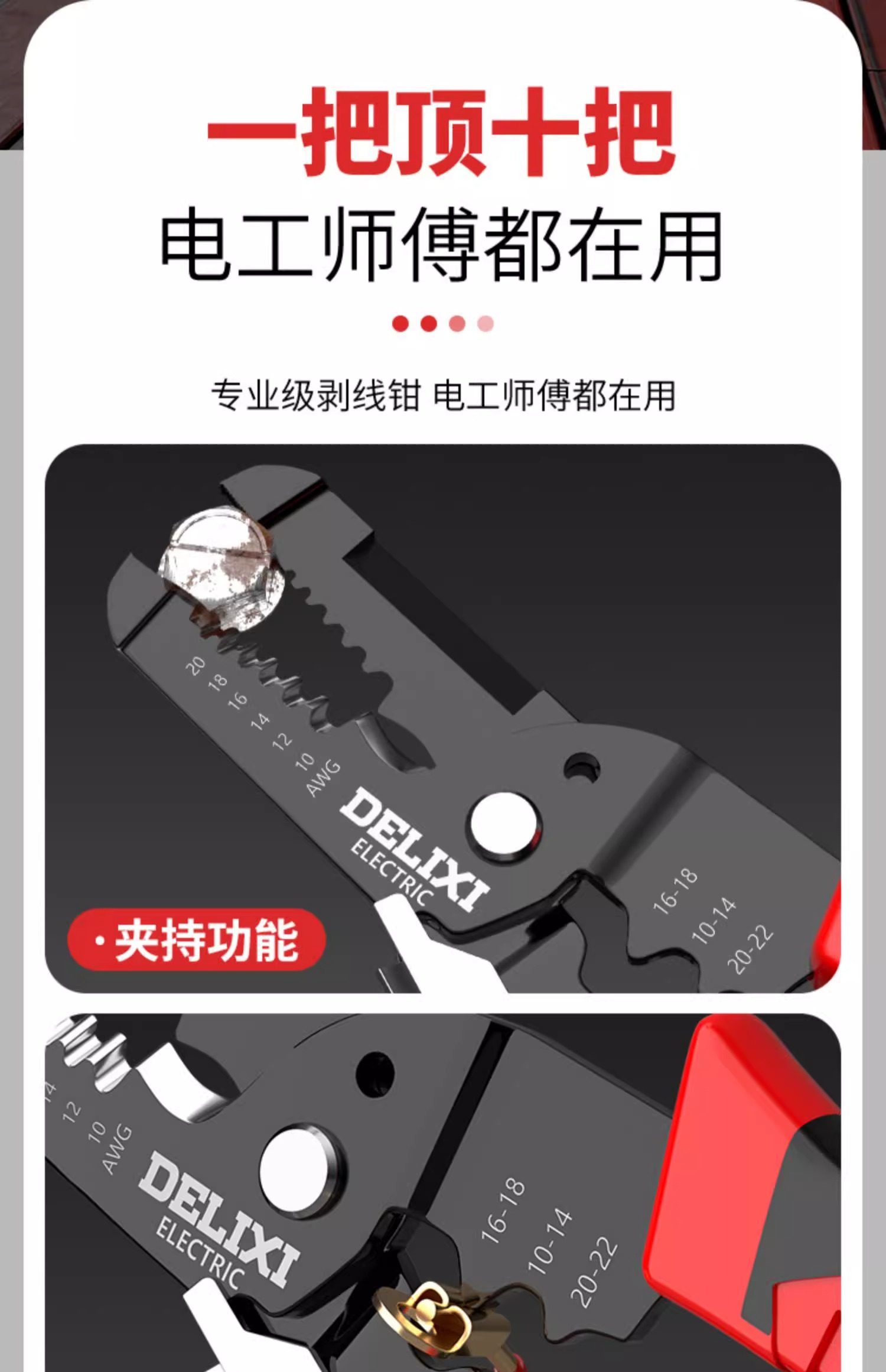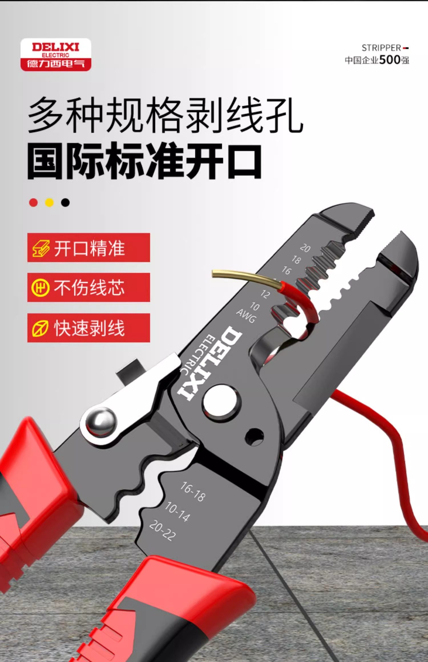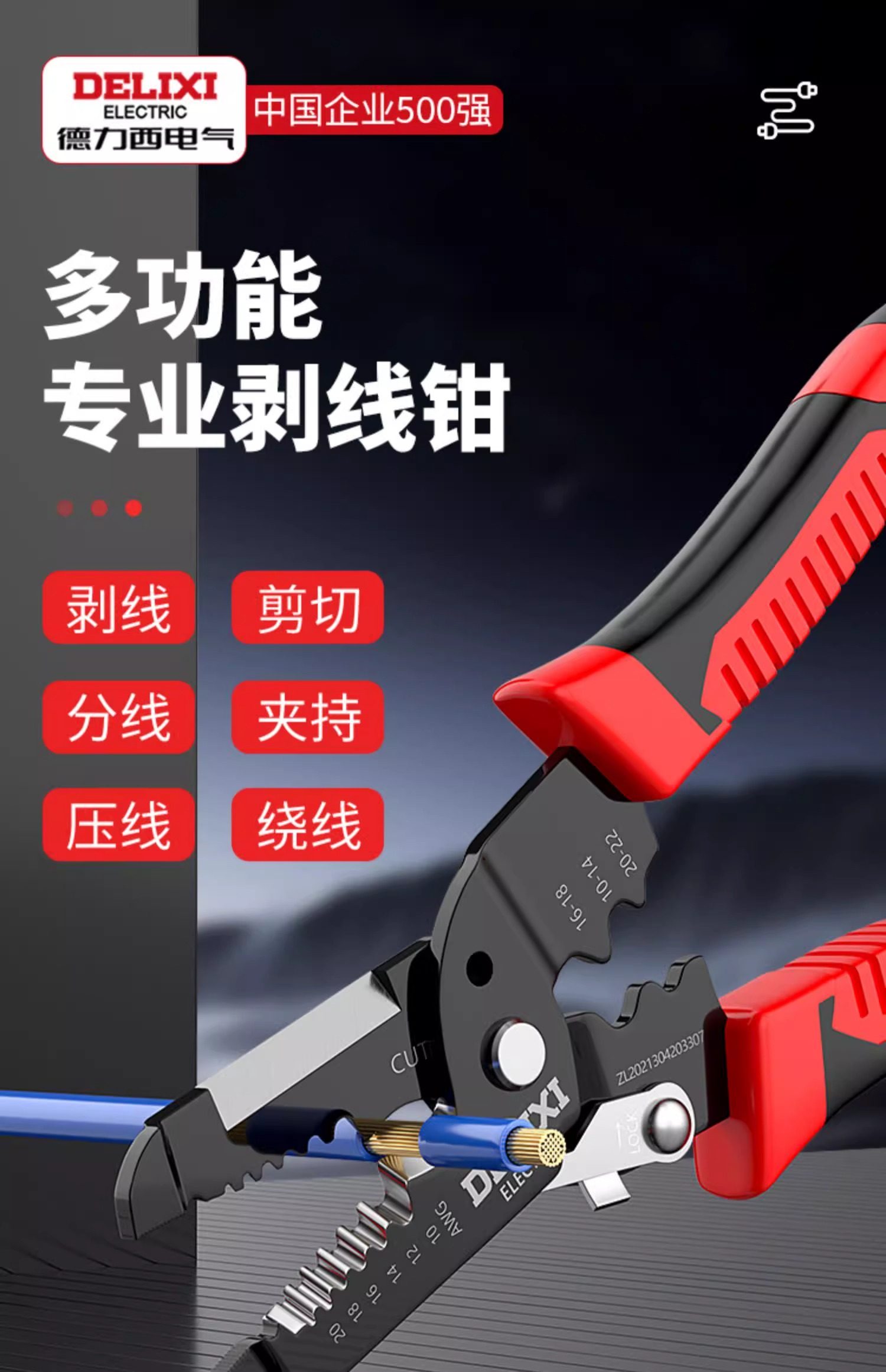 Delixi Electric Wire Stripping Pliers, Electrician's Special Pliers, Multi-Functional Wiring, Wire Pulling, Crimping, and Cutting Pliers Tool Set