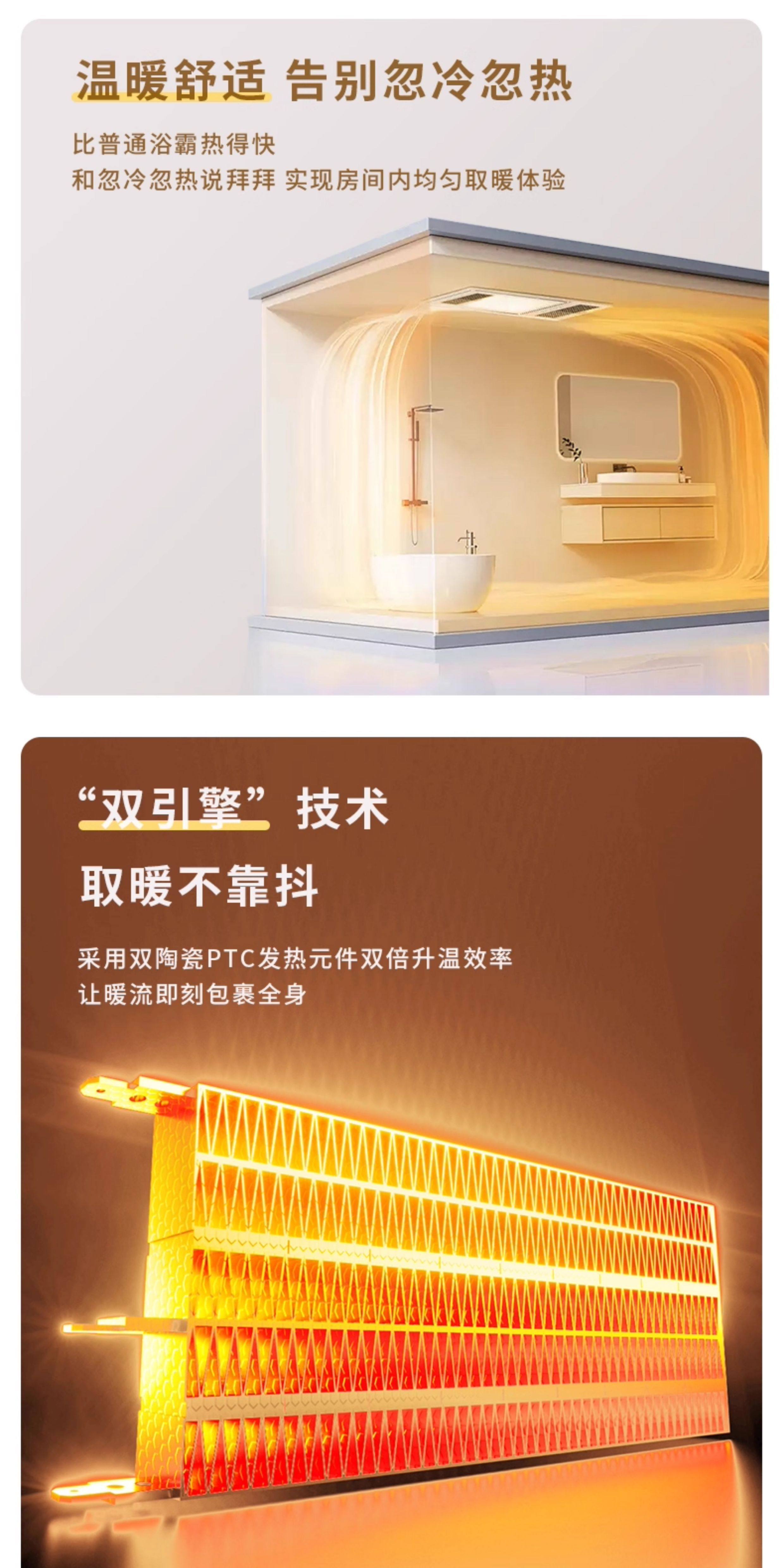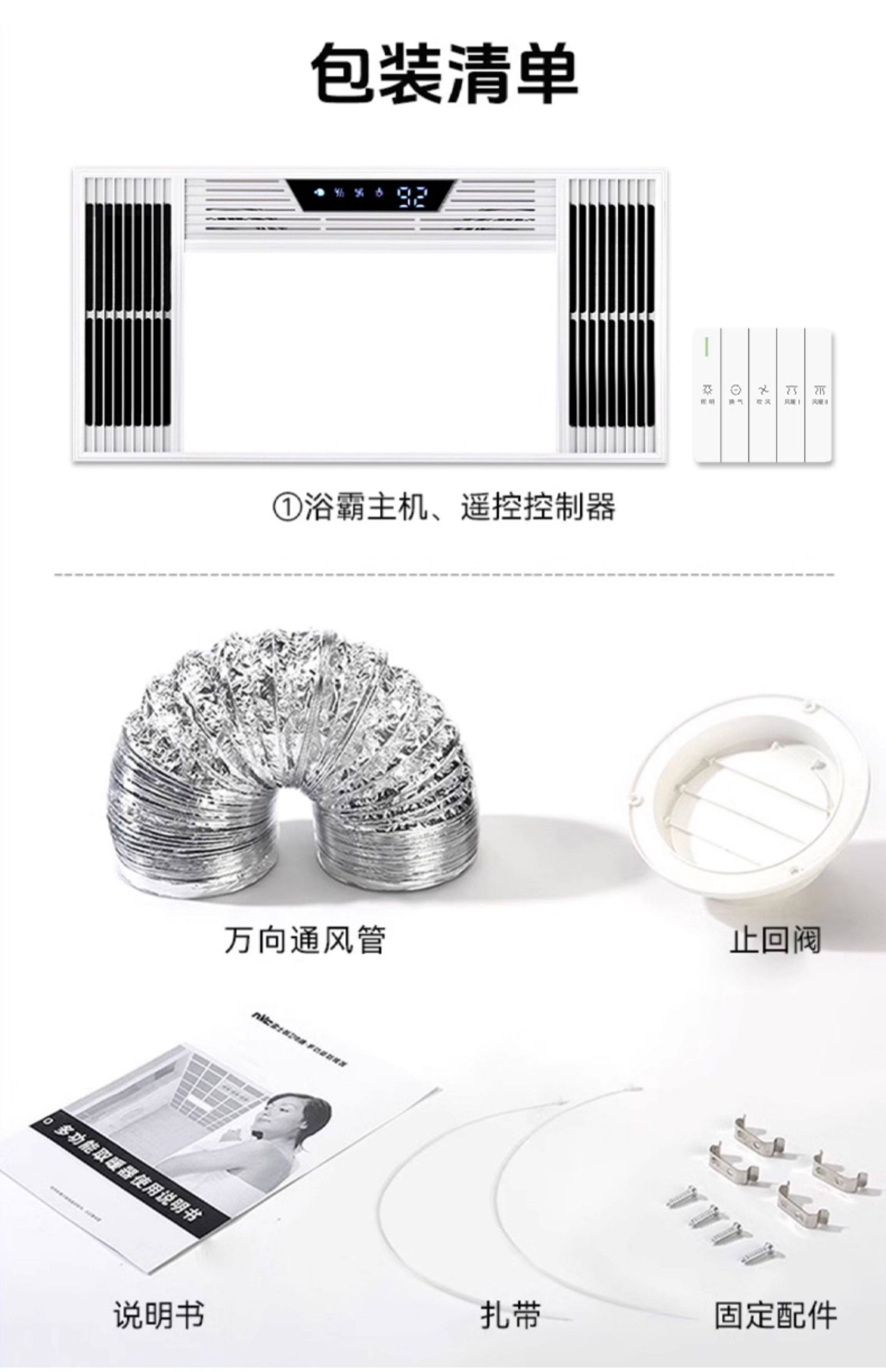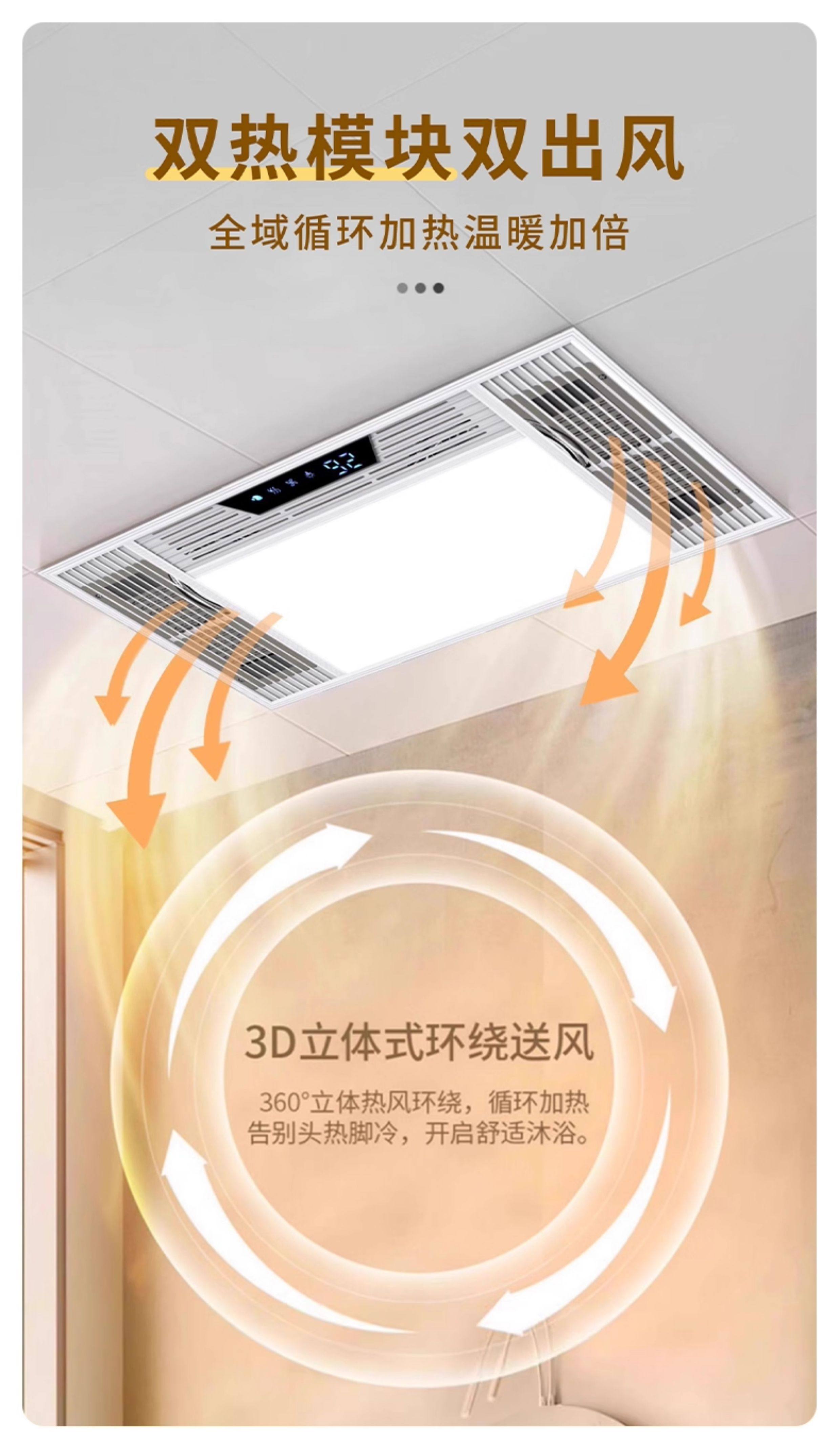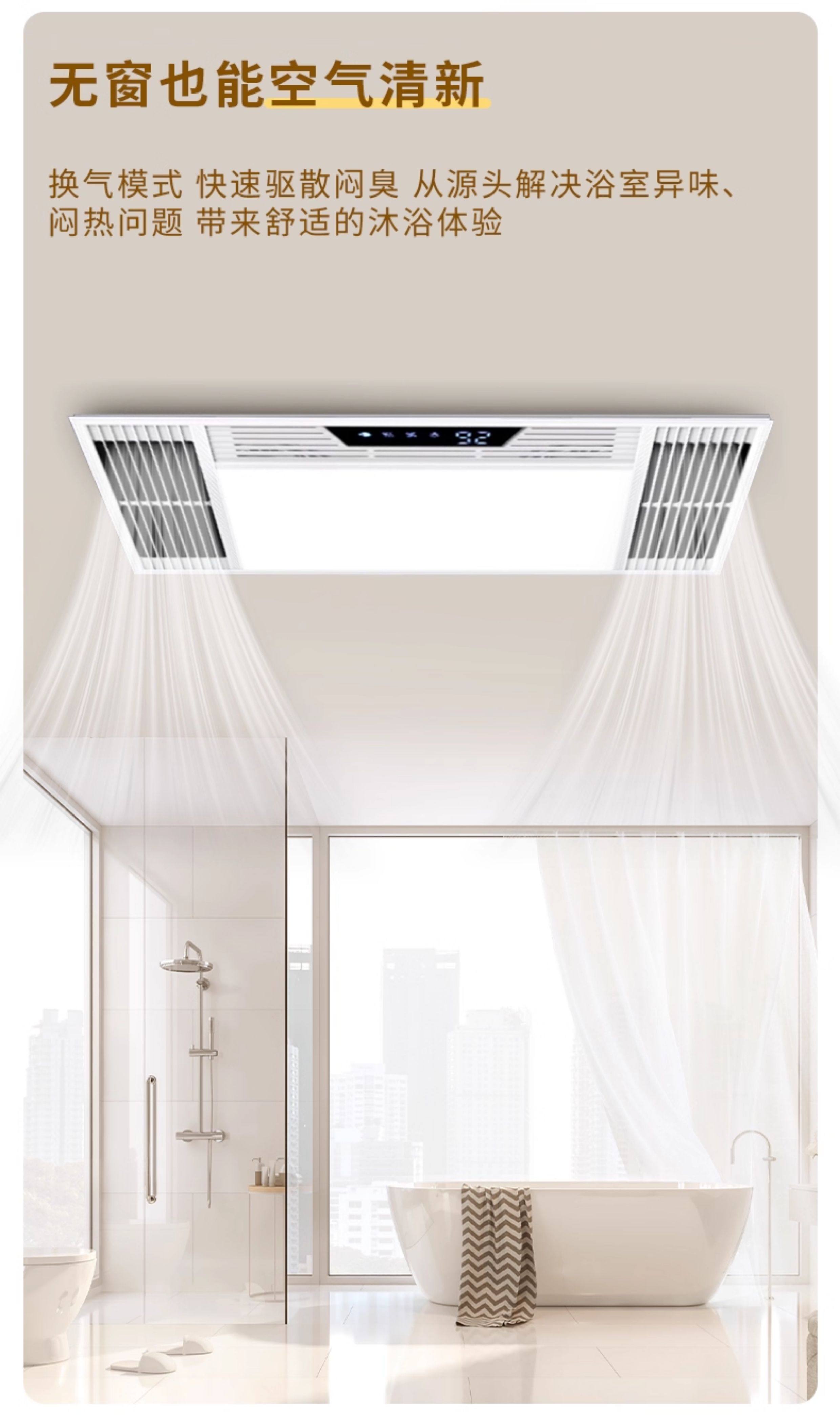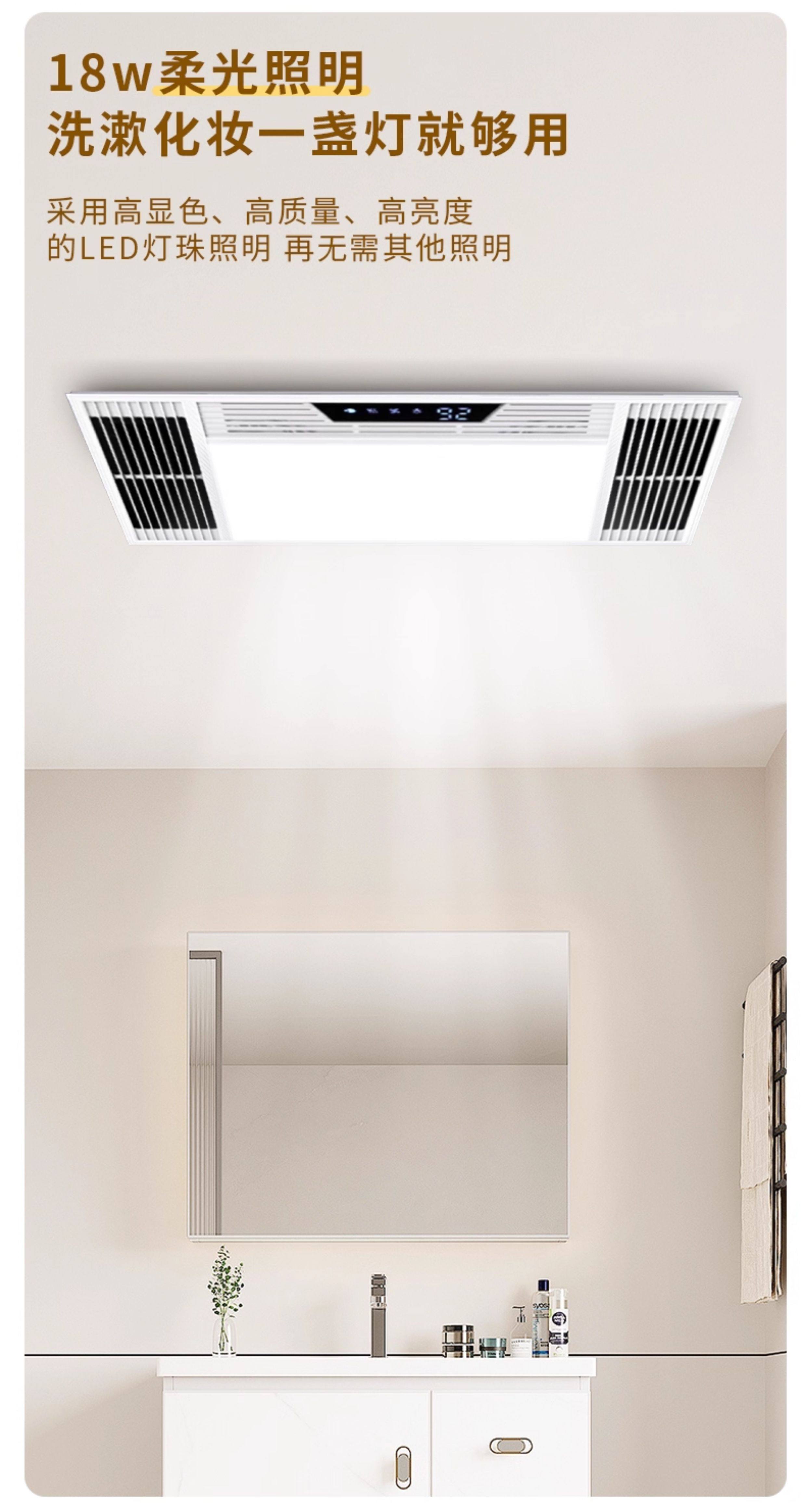 Integrated Ceiling Heater with Exhaust Fan and Lighting for Bathroom, Waterproof Heating Lamp for Bathroom and Toilet