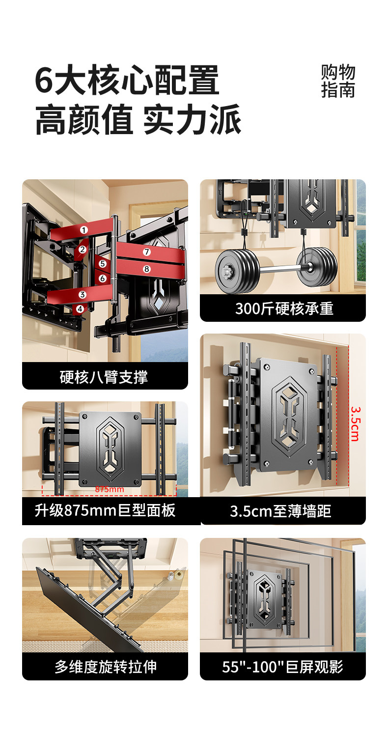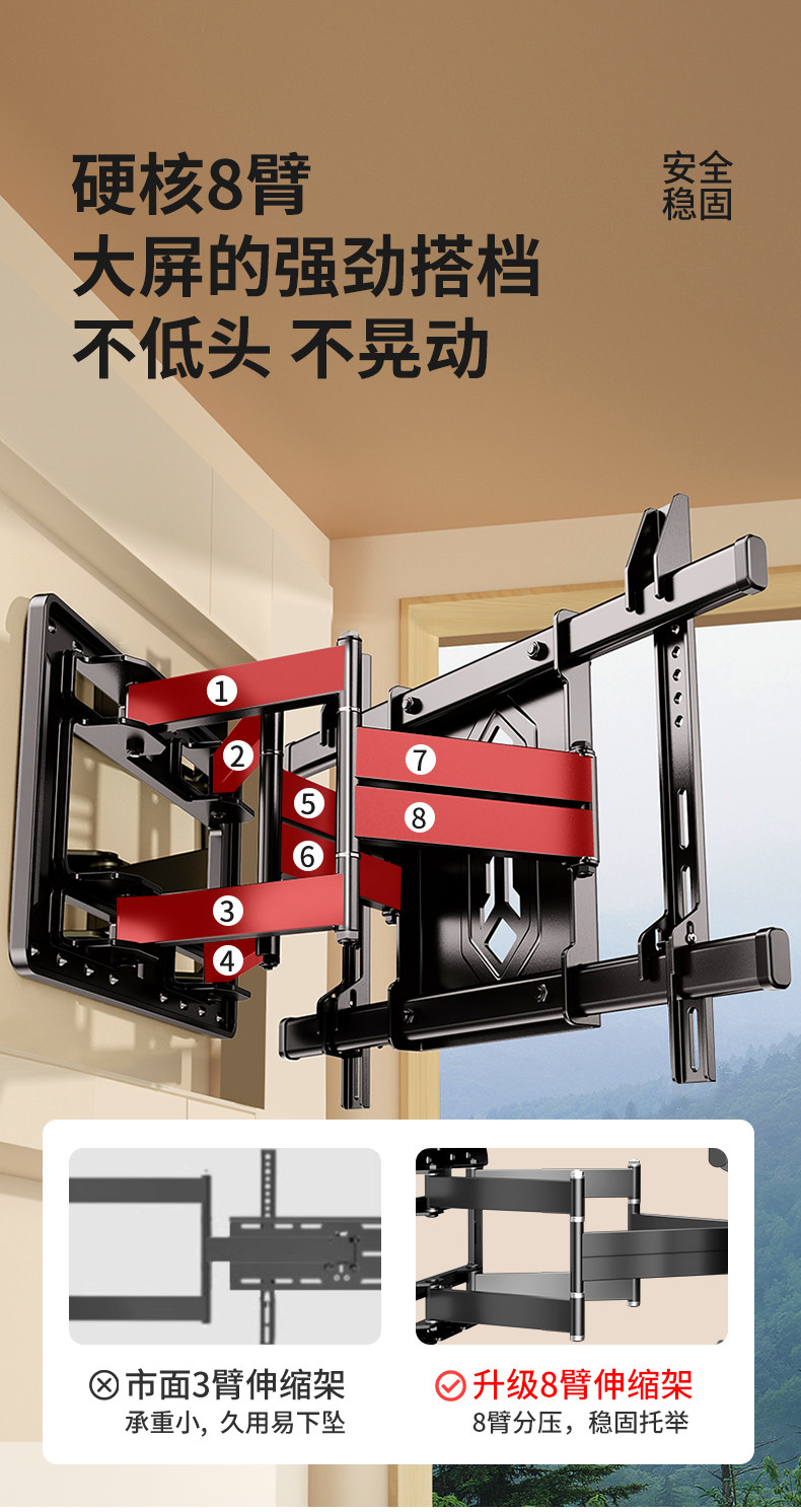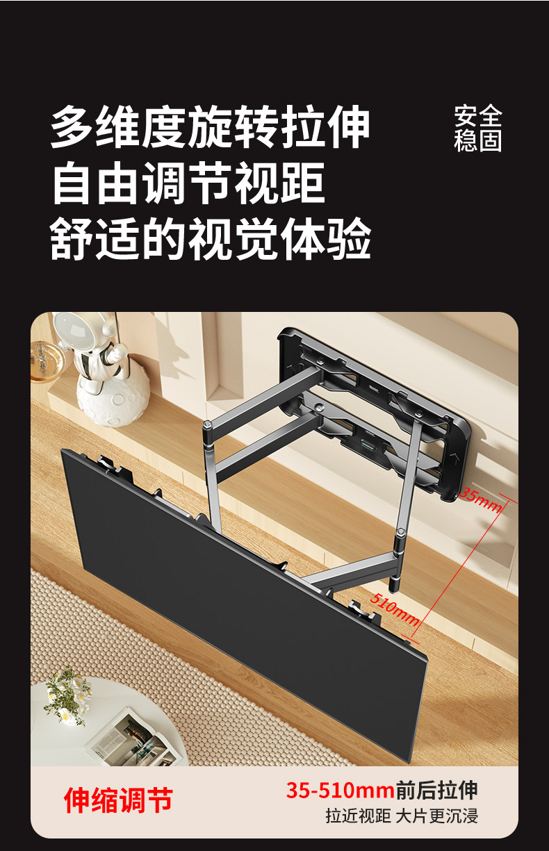 Universal Tv Mount Telescopic Rotating Bracket Wall Mount Suitable for Sony Xiaomi Skyworth Samsung 7585100inch