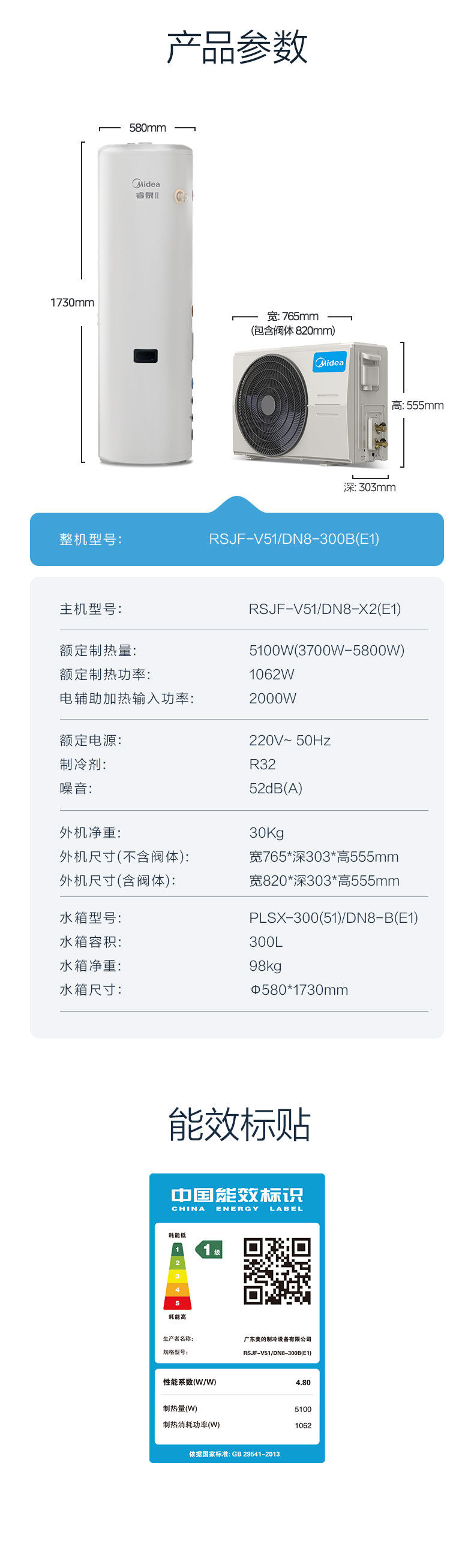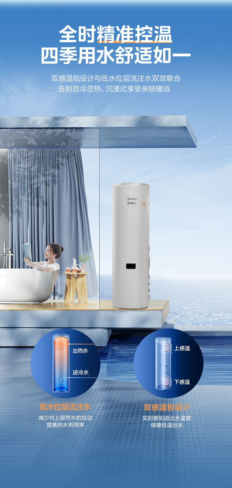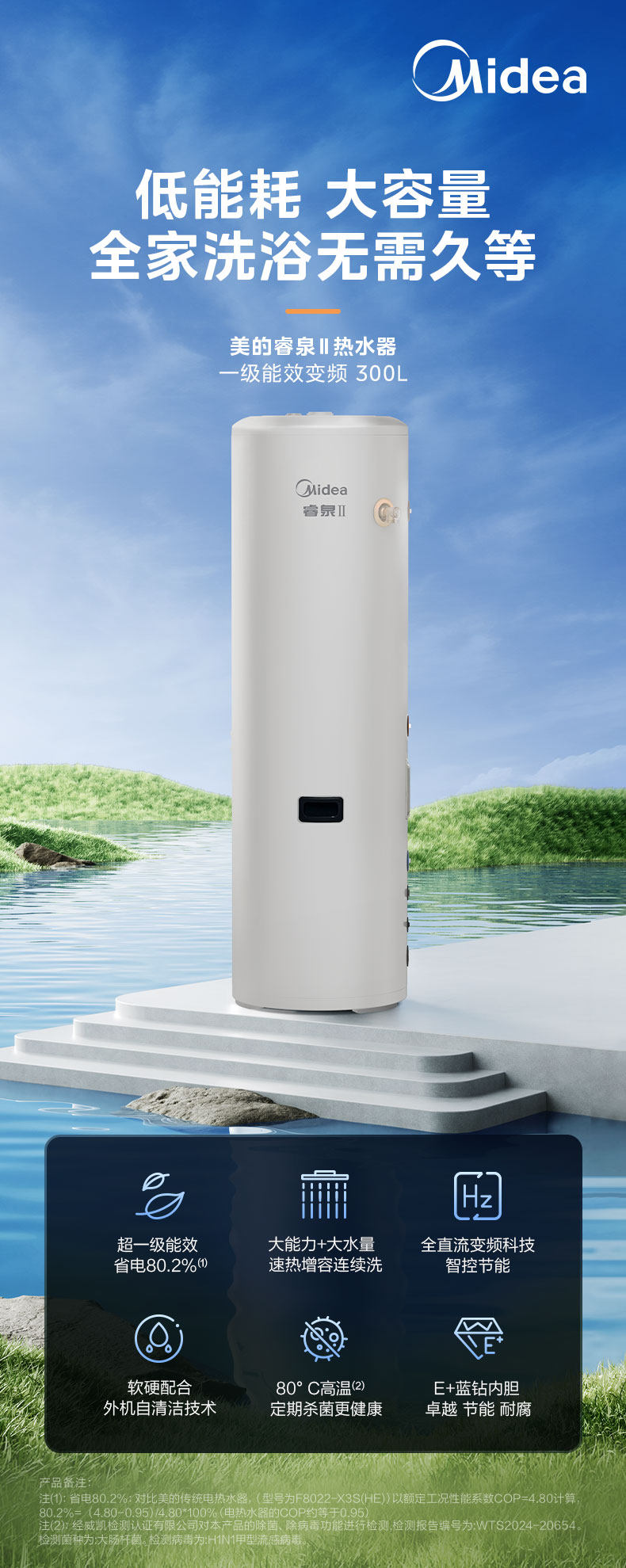 Midea Air Energy Water Heater, Household Heat Pump Electric Auxiliary Water Heater, First-Class Energy Efficiency, Variable Frequency, Energy-Saving Ruiquan 300 Liters