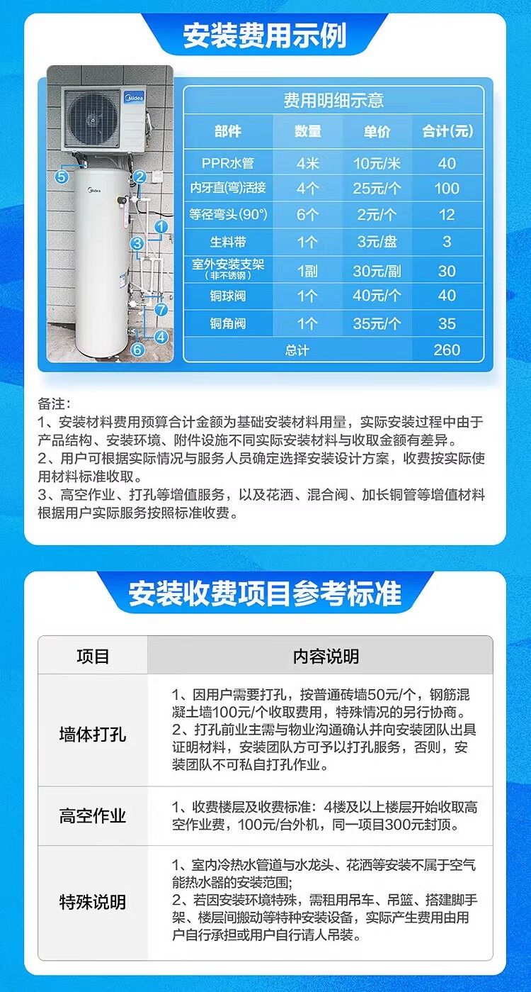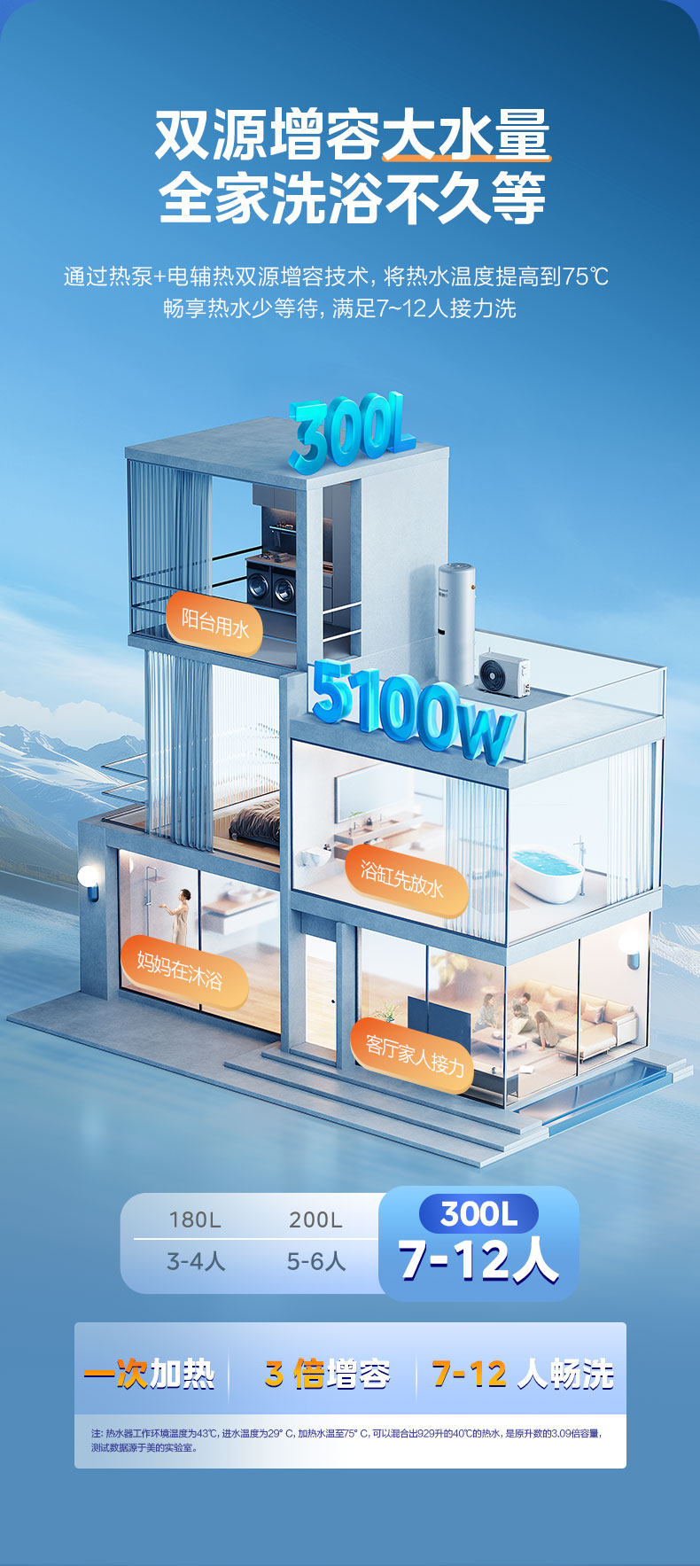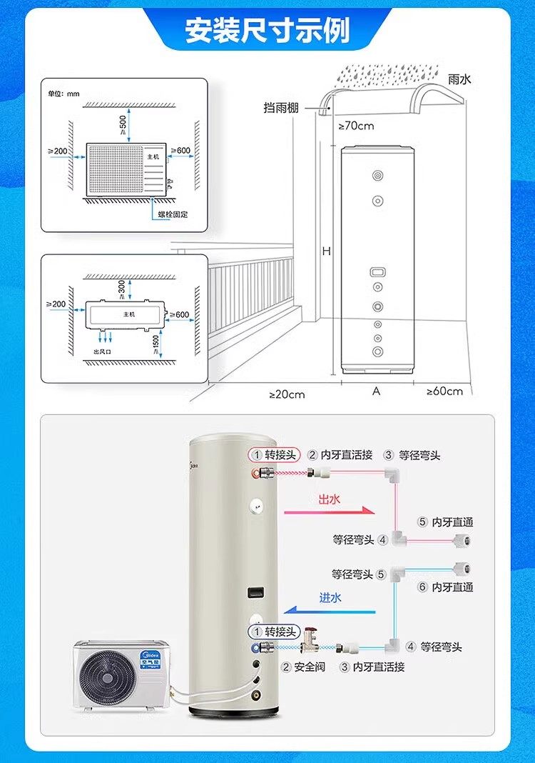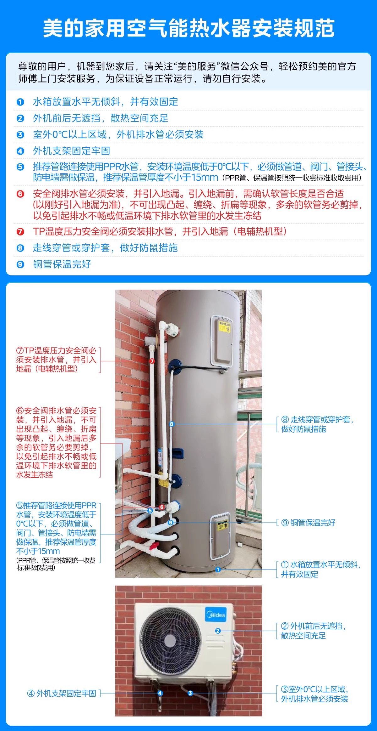 Midea Air Energy Water Heater, Household Heat Pump Electric Auxiliary Water Heater, First-Class Energy Efficiency, Variable Frequency, Energy-Saving Ruiquan 300 Liters