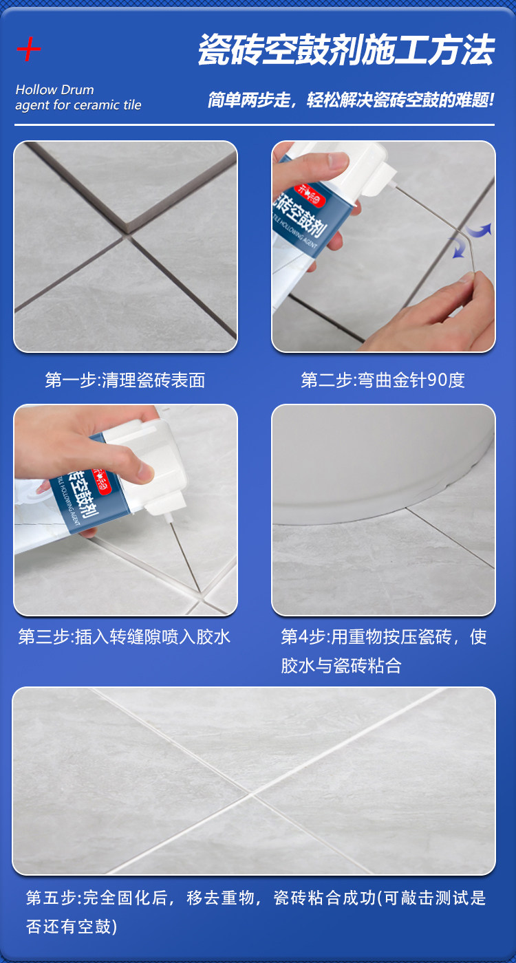 Special Glue for Tile Hollows, Strong Adhesive for Repairing Raised Floor Tiles, Wall Glue Injection, Grout Filling and Repair Agent