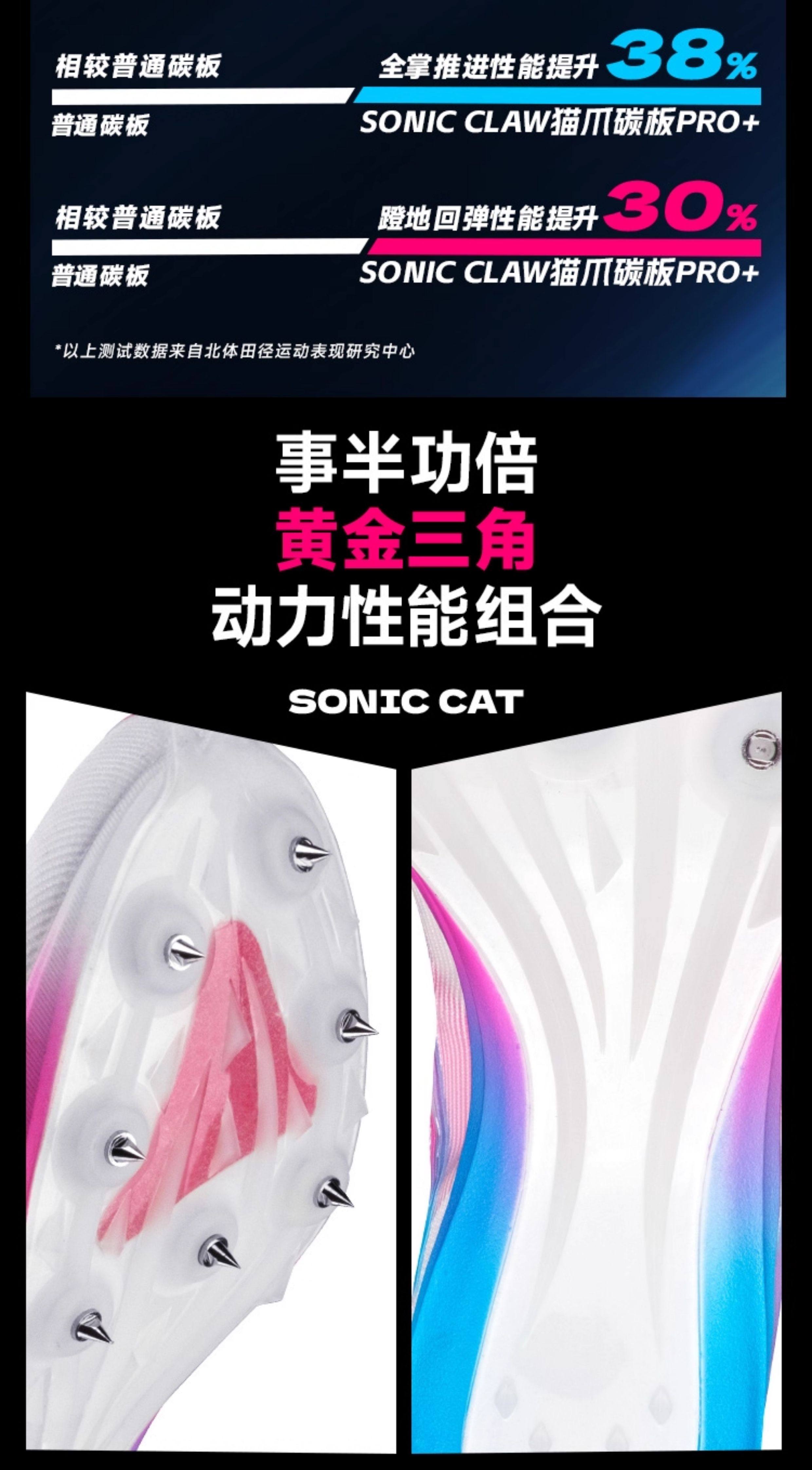 [North Sports Joint Research]Sonic Cat Extreme Spikes Full-Length Carbon Plate Official Flagship Children's Track and Field Exam Short and Medium Sprint