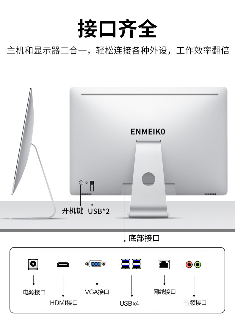 Ultra-Thin All-In-One Computer for Online Learning, Home Office, Built-In Camera, Complete Desktop Computer Set
