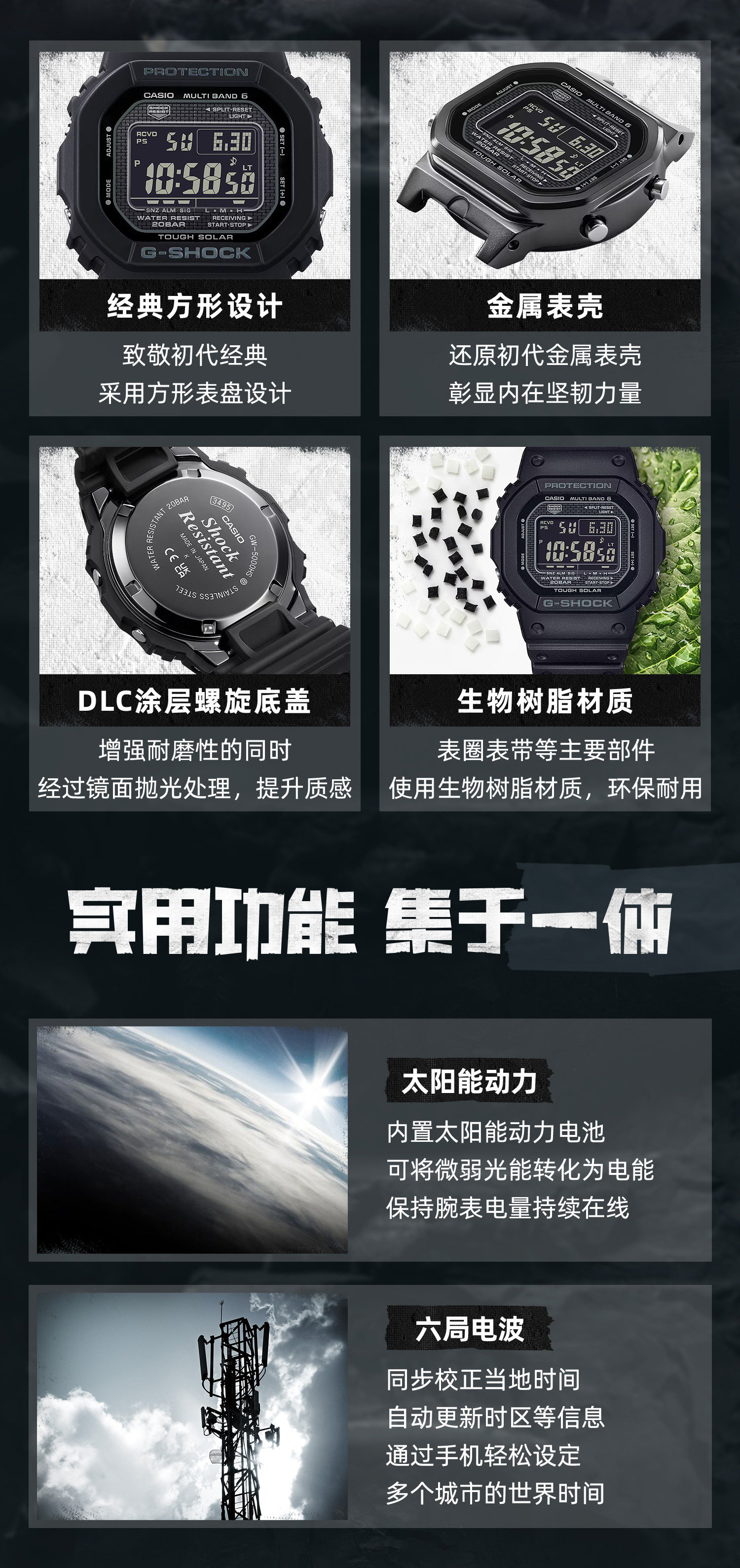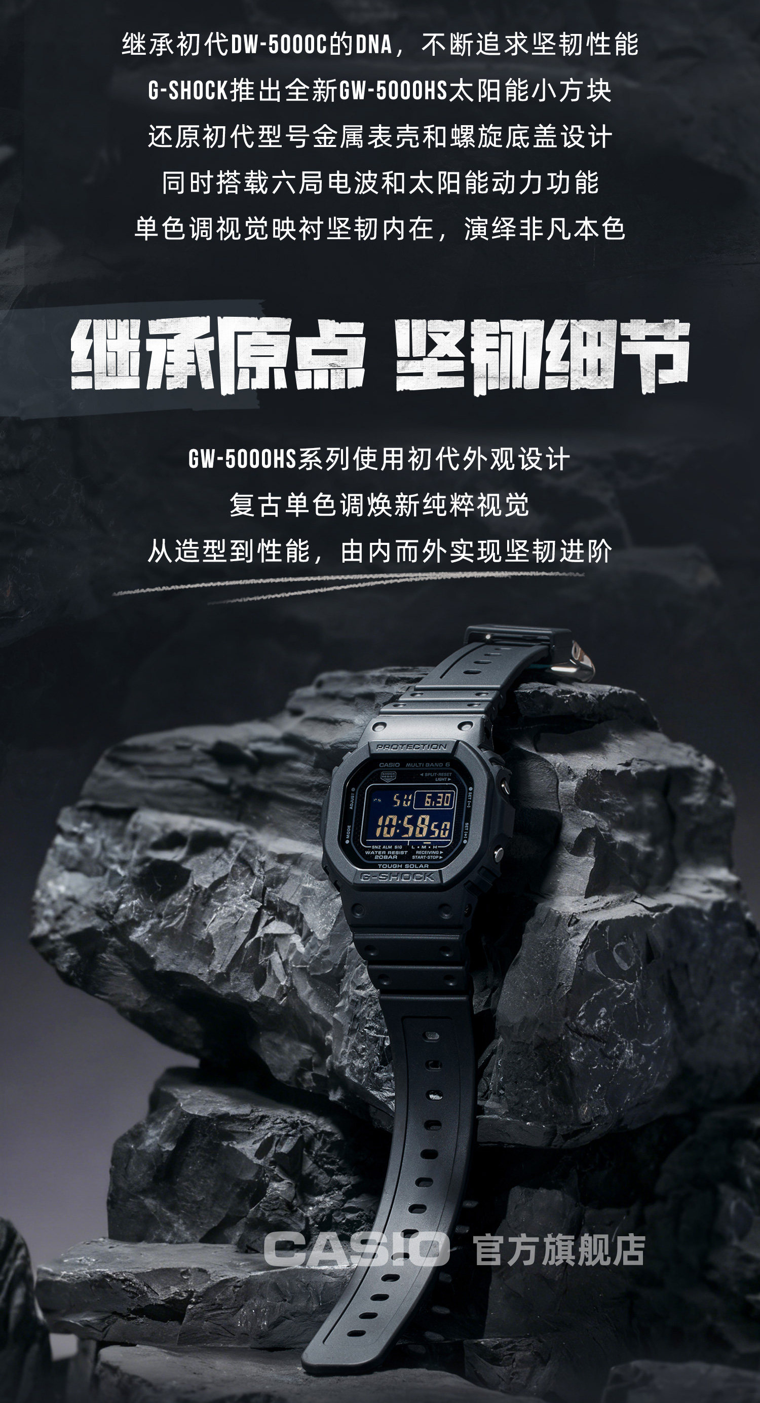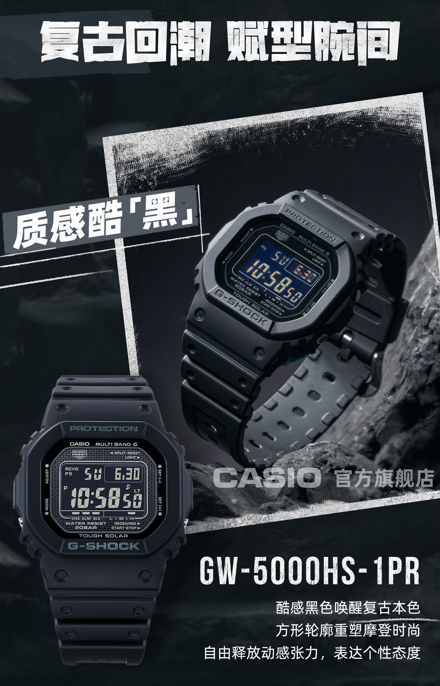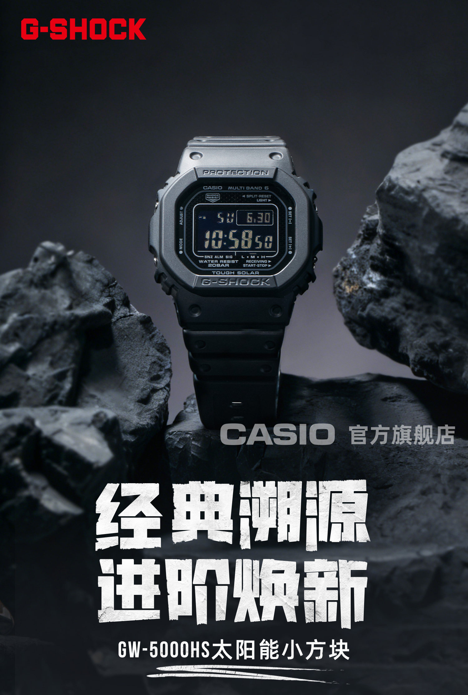 Casio Flagship Store Gw-5000Hs Solar Six-Game Radio Small Square Bubble Wrap and Waterproof Watch G-Shock