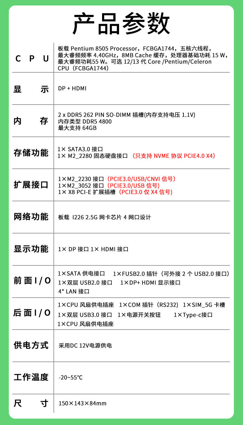 | Package Type | H14 Chassis 8505 Four Network 2.5g,H14 Chassis 8505 Four Networks 2.5g+2 Optical Ports 10g,H14 Chassis 8505 Four Networks 2.5g+4 Optical Ports 10g,H14 Chassis I5-12450H Four Network 2.5g Free Fan,H14 Chassis I5-12450H Four Network Dual Optical Fans,H14 Chassis I7-13620H Four Network 2.5g Free Fan,H14 Chassis I7-13620H Four Networks + 2 Optical Fans,H14 Chassis I7-13620H Four Network 4 Optical Fans |