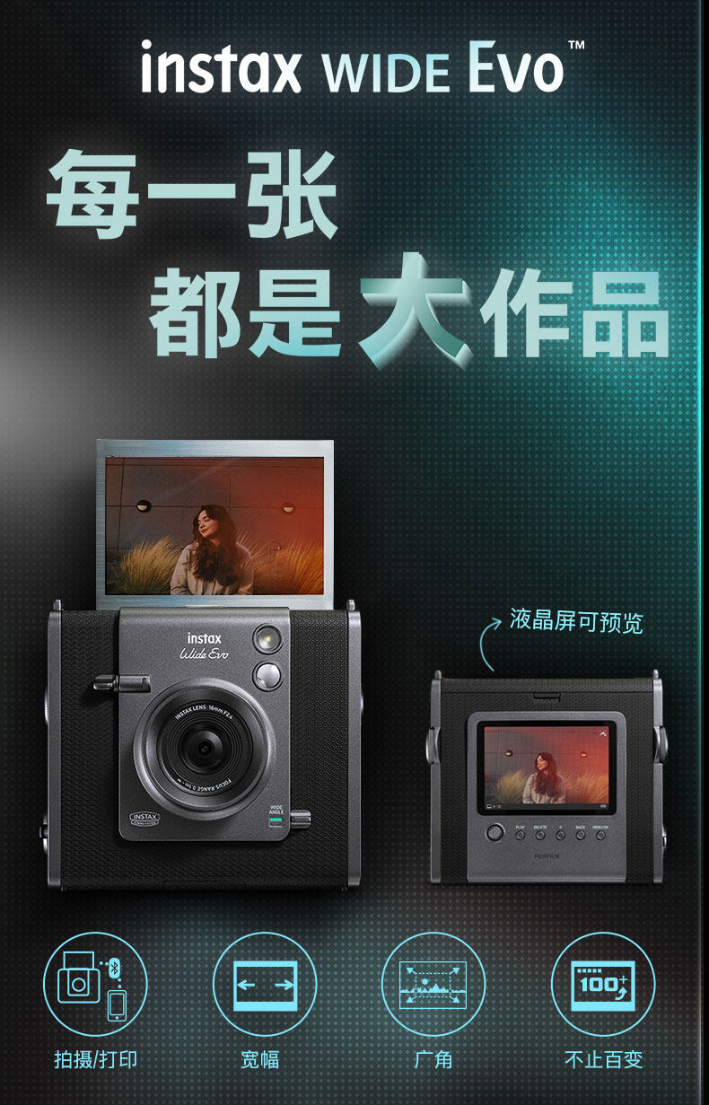 Fuji Camera Instax Wide Evo Instant Wide-Format Imaging with Optional Digital-To-Analog Printing