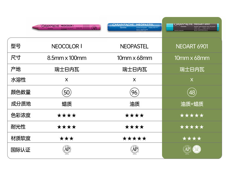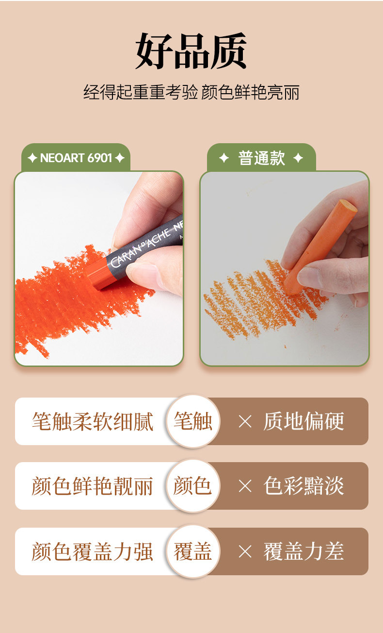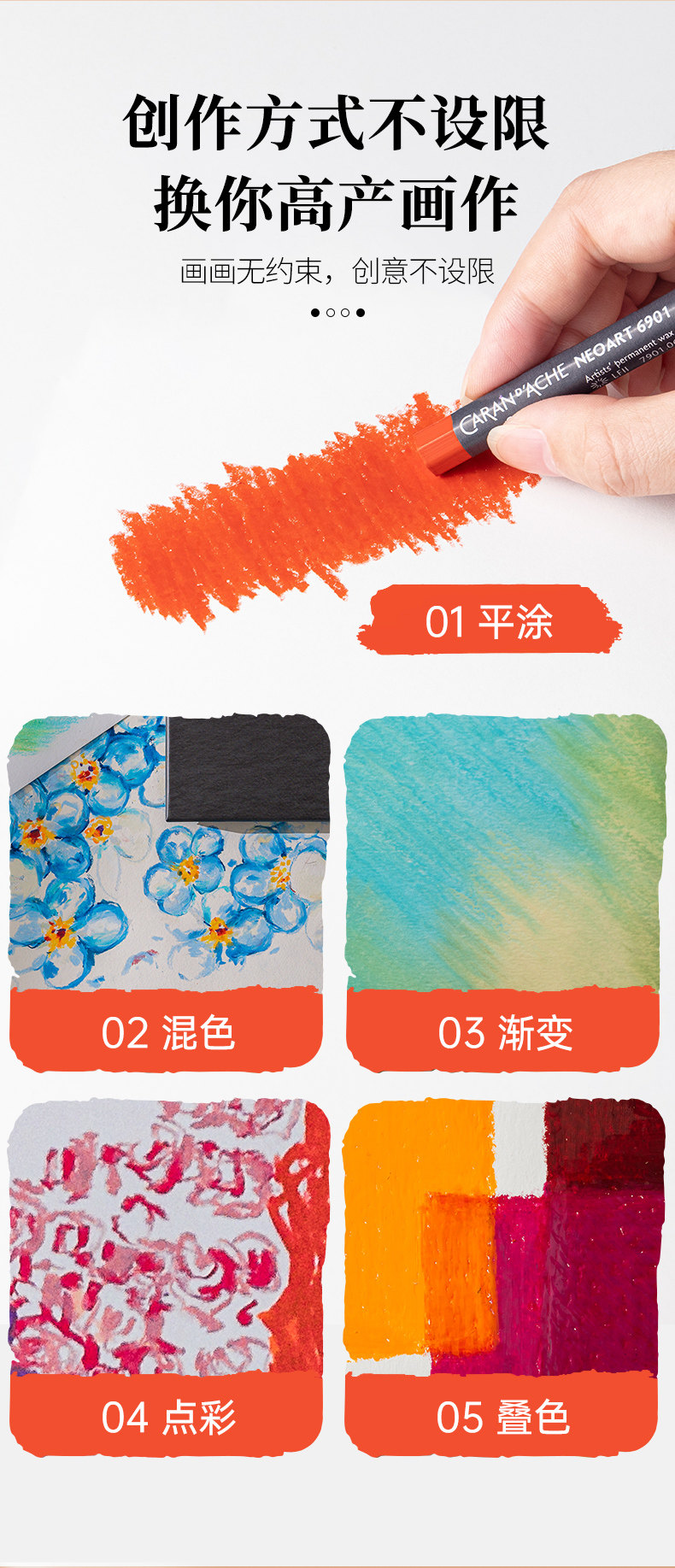 Caran D'Ache Swiss Neoart6901 Series Oil Pastels Wax-Based Pastel Sticks for Students and Art Students Painting Crayons Artist-Grade 48-Color Painting Set