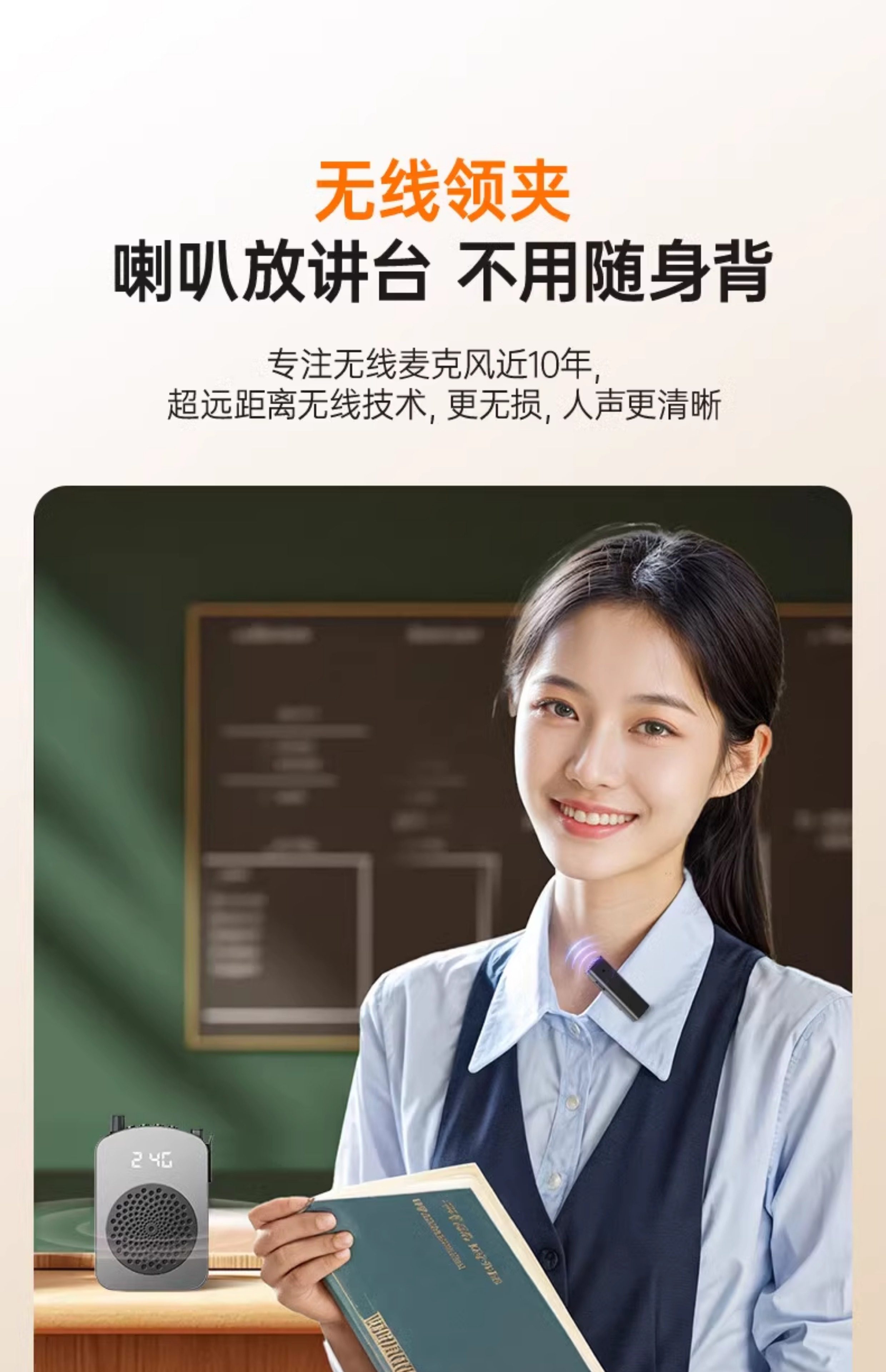Wireless Lavalier Microphone Amplifier for Teachers, Dedicated for Lectures and Classes, Microphone Amplifier Speaker