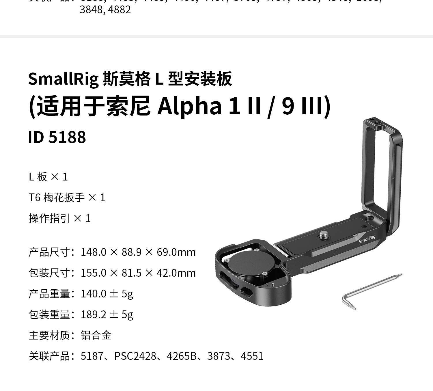 Smog Compatible Sony A1 Ii Expansion Frame A1 2Nd Generation Dslr Mirrorless Camera Sony A9 Iii Cage Kit Photography A9 3Rd Generation L Plate Tripod L-Shaped Quick Release Plate Camera-Specific Accessories
