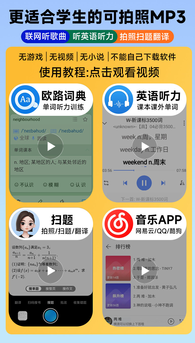 Fanmu Mp3 Can Take Pictures, Portable Music Player, Mp4 for Students, Mp5 Player, Wifi, Listening to Music, English Listening, Bluetooth