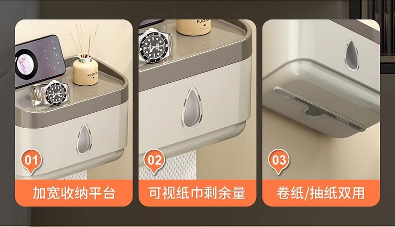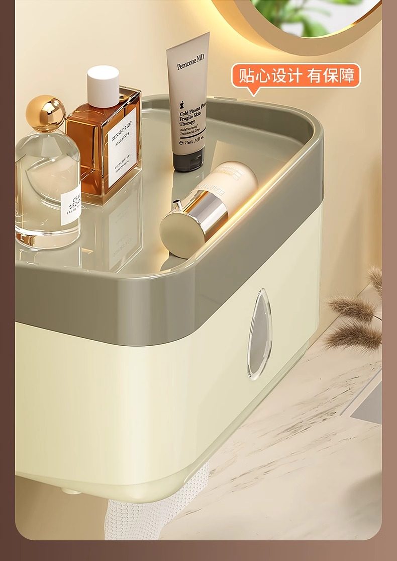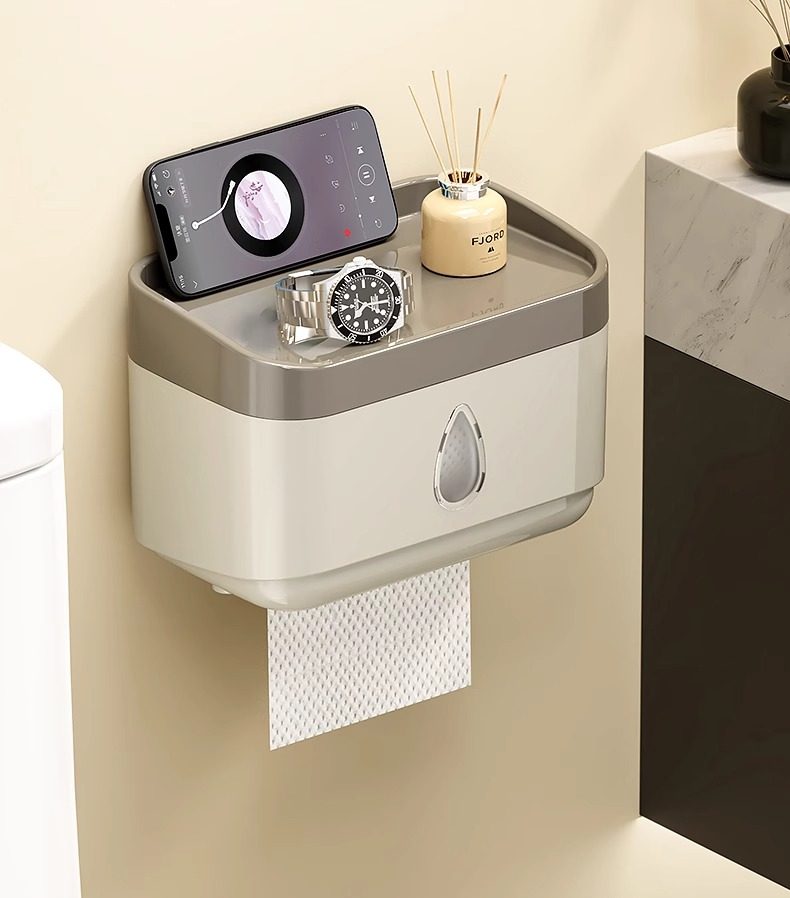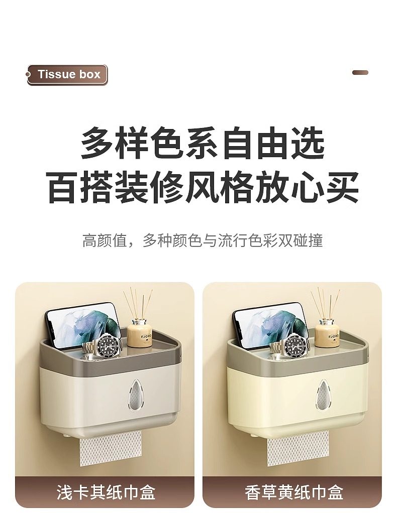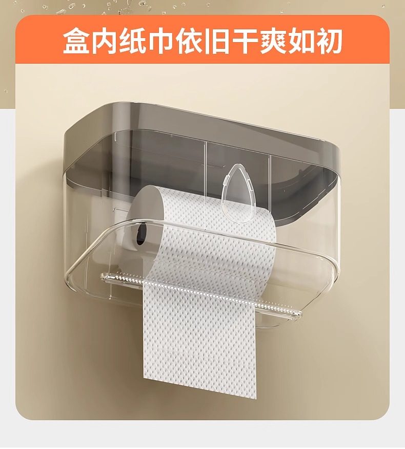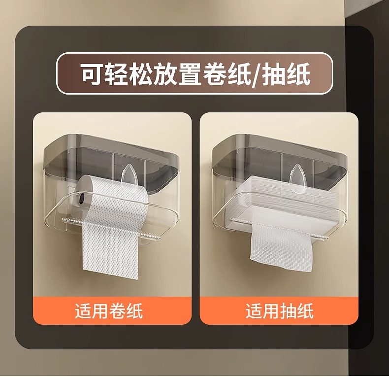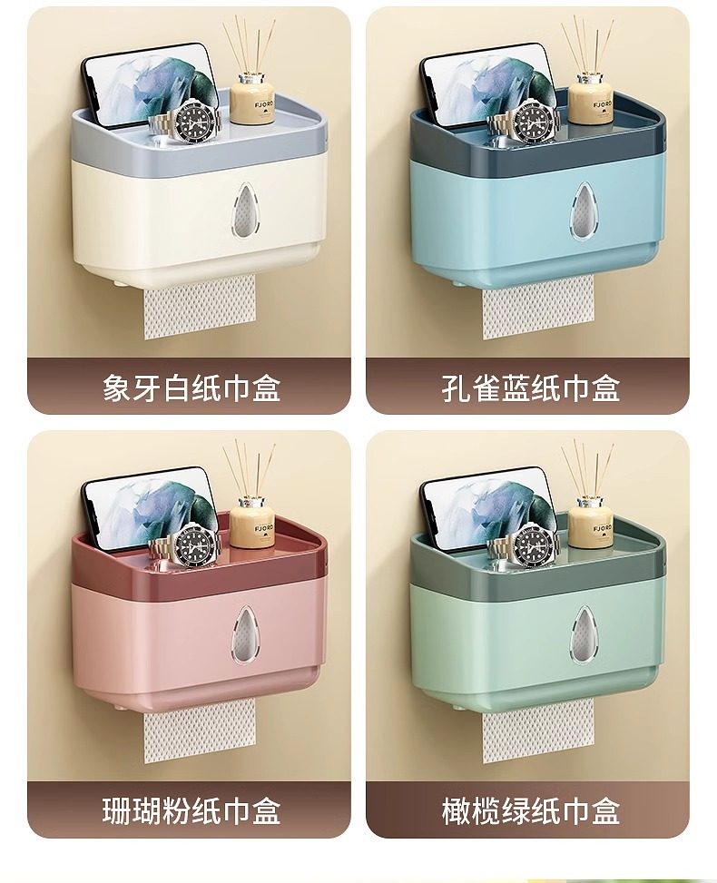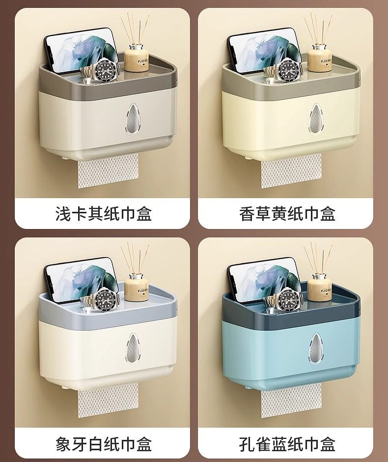 Bathroom Tissue Box Waterproof Toilet Paper Box Punch-Free Wall-Mounted Toilet Paper Box Roll Paper Toilet Paper Storage Rack