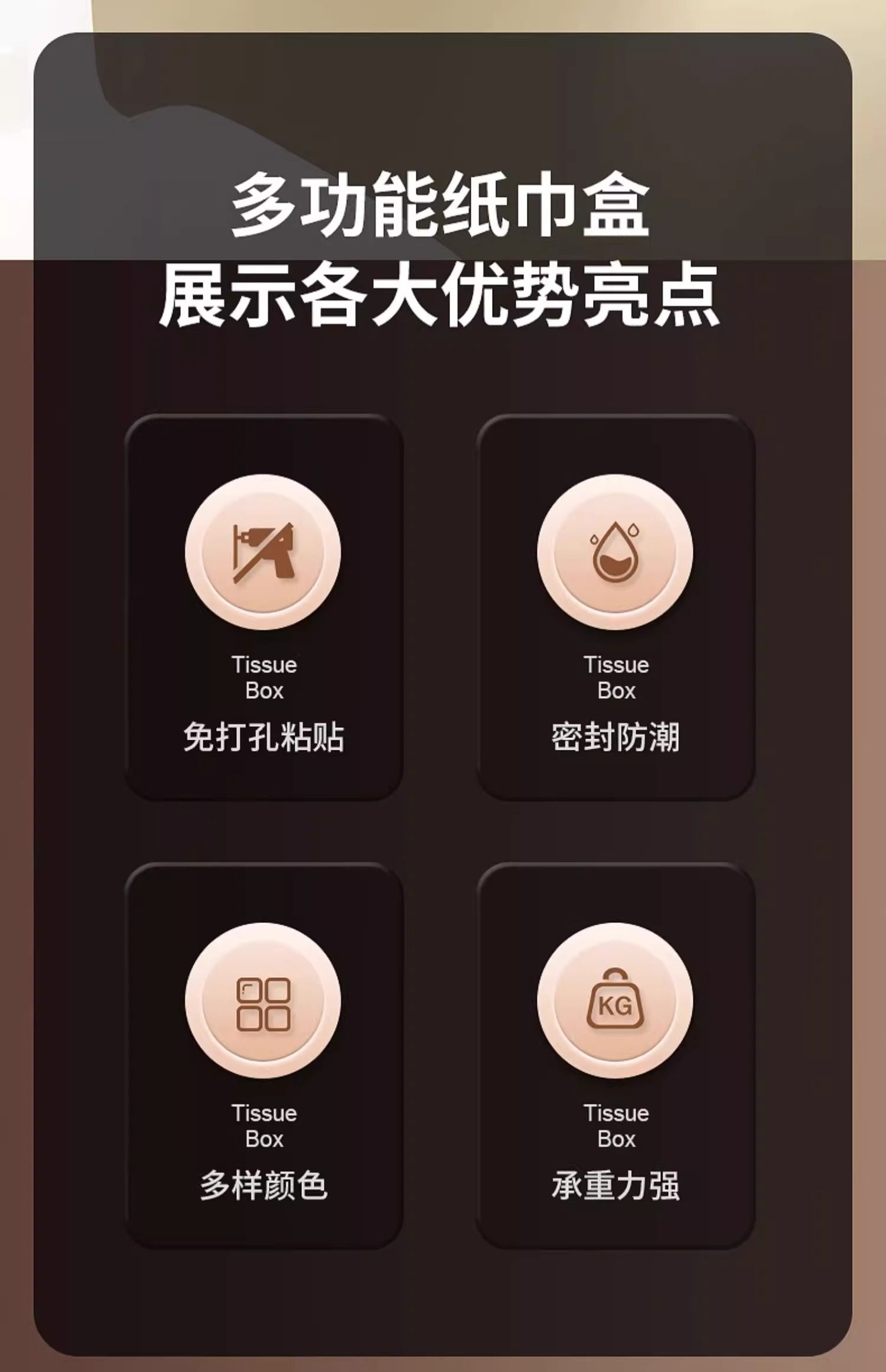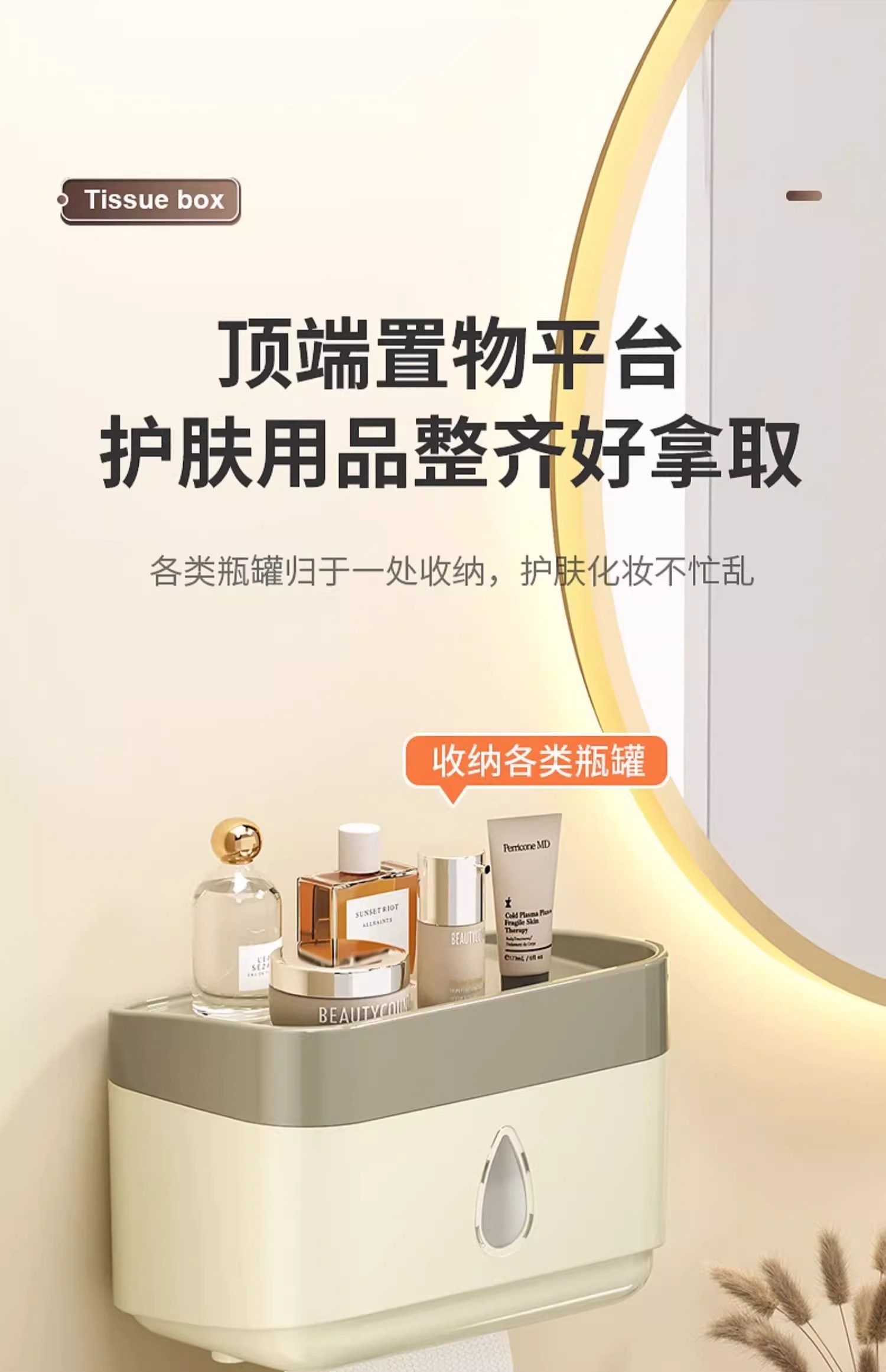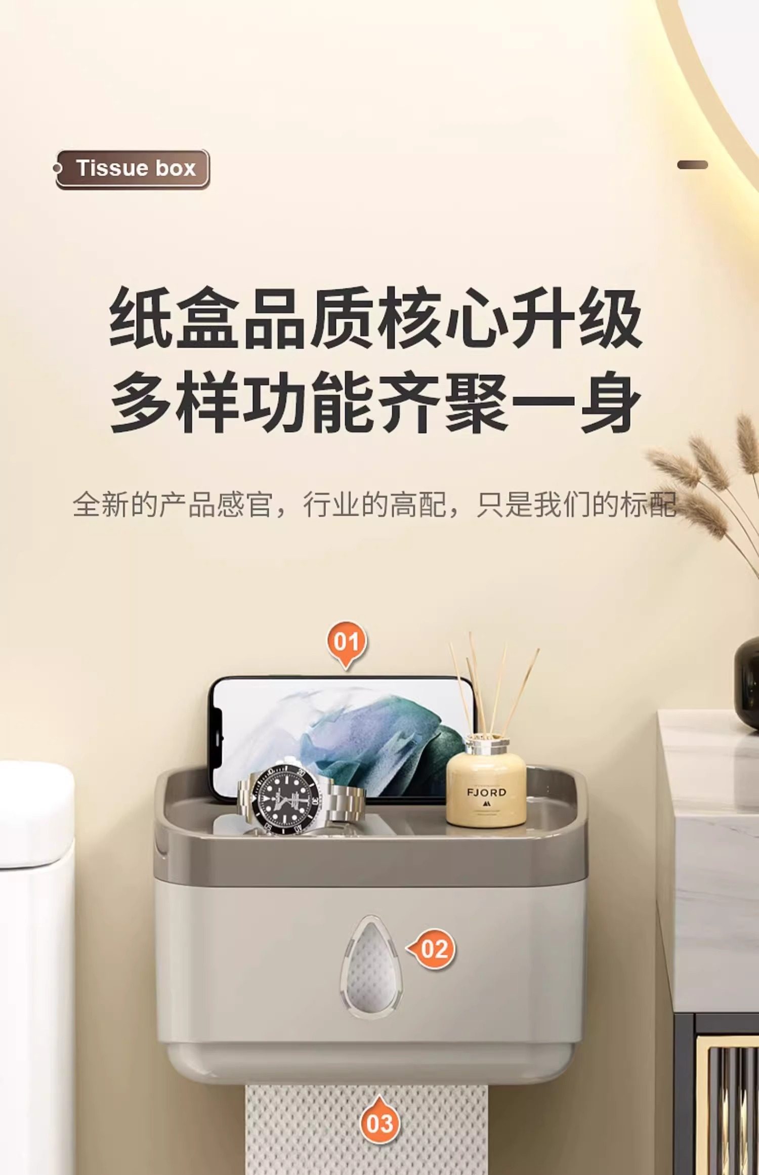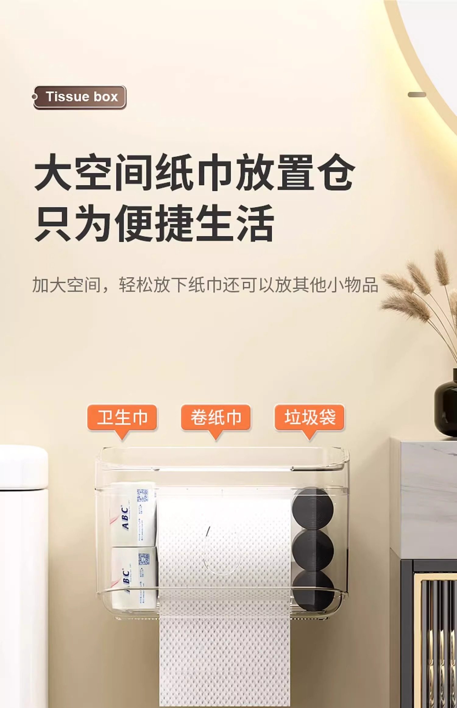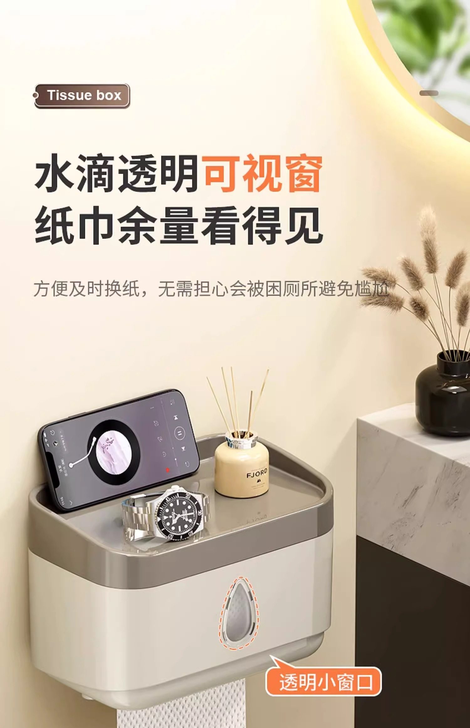 Bathroom Tissue Box Waterproof Toilet Paper Box Punch-Free Wall-Mounted Toilet Paper Box Roll Paper Toilet Paper Storage Rack
