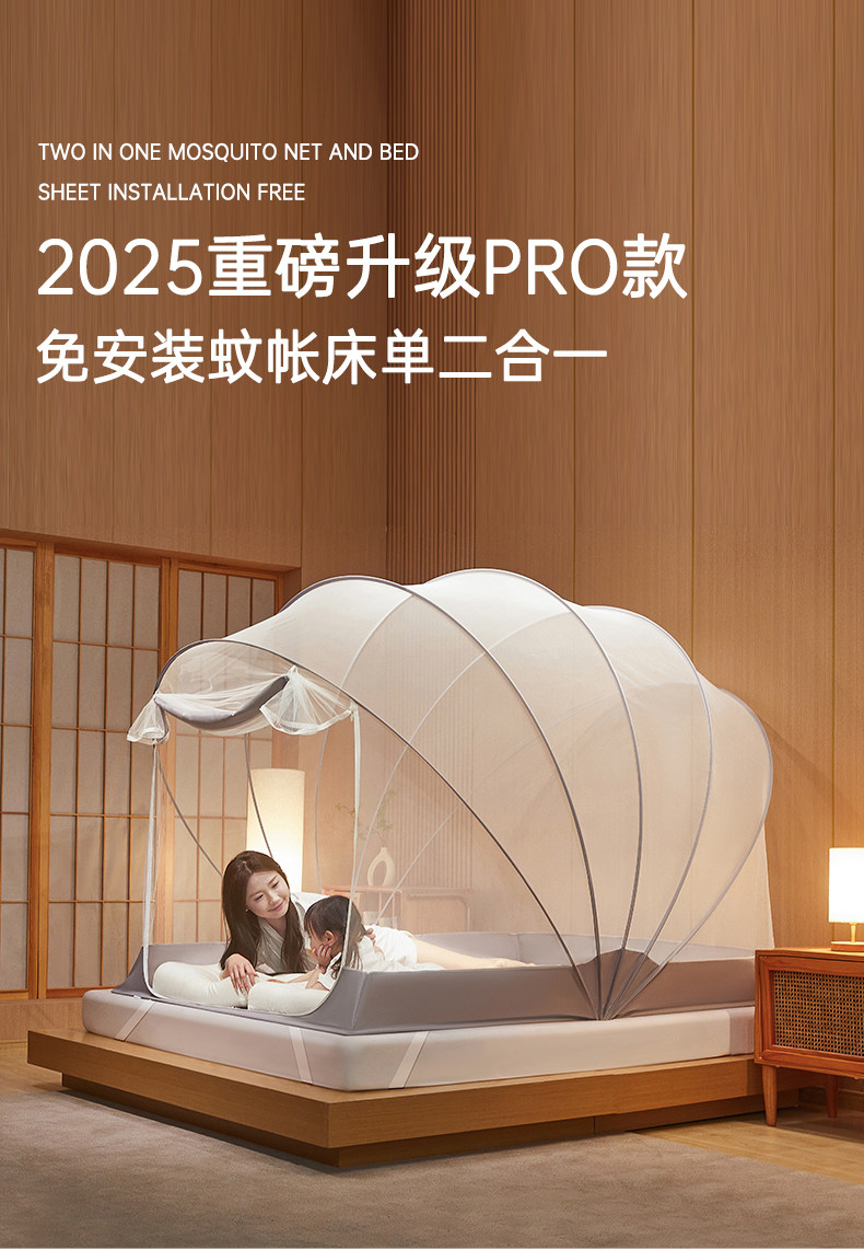 2025 New Model No-Installation Mosquito Net Foldable Home Bedroom Bed Sheet Integrated Full-Cover Yurt No Bracket Needed