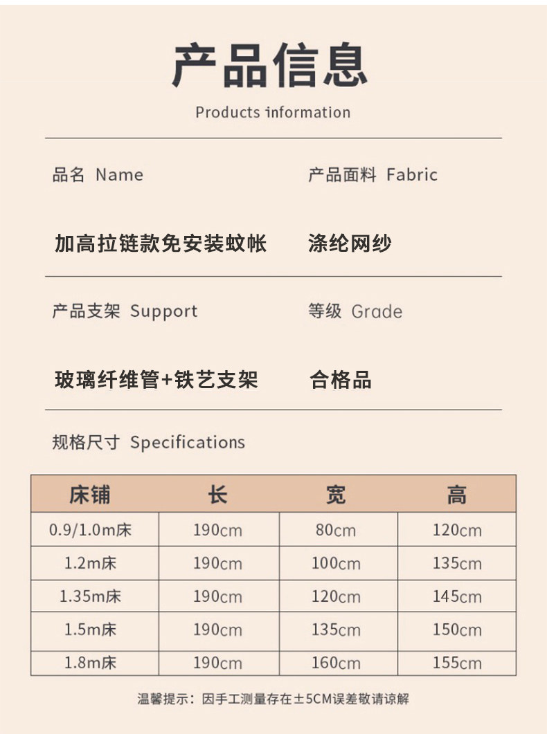 | Color Classification | Distant Mountain Gray [Heightened Tailgate Model] 50D Double Strand Mesh◆100% Blocking All Types of Mosquitoes Mosquito Nets⚡Easy Access.,Elegant Grey [High Tailgate Version] 50D Double Weave Mesh◆100% Blocking All Types of Mosquitoes Mosquito Nets⚡Easy Access,Cream Color [Heightened Tailgate Model] 50D Double-Strand Mesh◆100% Blocking All Types of Mosquitoes Mosquito Nets⚡Easy Access,Distant Mountain Gray [Heightened Tailgate Model + Pure Cotton Sheets] 50D Double Strand Mesh◆100% Blocking All Types of Mosquitoes Mosquito Nets◆Category A+ Is Available for Pregnant Women and Infants⚡Full Bottom Is Safer⚡Easy Access,Trendy Grey [Elevated Tailgate Model + Pure Cotton Bed Sheet] 50D Double-Strand Mesh ◆ 100% Blocking All Types of Mosquitoes Mosquito Nets ◆ Category A+ Is Available for Pregnant Women and Infants ⚡ Full Bottom Is Safer ⚡ Easy Access,Cream Color [Heightened Tailgate + Pure Cotton Sheets] 50D Double-Strand Mesh◆100% Blocking All Types of Mosquitoes Mosquito Nets◆Category A+ Is Available for Pregnant Women and Infants⚡Full Bottom Is Safer⚡Easy Access,Distant Mountain Gray [Heightened Tailgate Model + 2 Removable and Washable Pure Cotton Sheets] 50D Double-Strand Mesh◆100% Blocking All Types of Mosquitoes Mosquito Nets◆Category a for Pregnant and Infant Use⚡Making the Bed Is Super Convenient.⚡Easy Access.,Trendy Grey [Elevated Tailgate Model + 2 Removable & Washable Pure Cotton Bed Sheets] 50D Double-Strand Mesh◆100% Blocking All Types of Mosquitoes Mosquito Nets◆Category a for Pregnant and Infant Use⚡Making the Bed Is Super Convenient⚡Easy Access,Cream Color [Heightened Tailgate Model + 2 Removable and Washable Pure Cotton Sheets] 50D Double-Strand Mesh◆100% Blocking All Types of Mosquitoes Mosquito Nets◆Category a for Pregnant and Infant Use⚡Making the Bed Is Super Convenient⚡Easy Access,Distant Mountain Gray [Zipper Bottom Edge Does Not Include Bed Sheet] 50D Hexagonal Mesh⚡Fine and Soft,Elegant Grey [Zippered Bottom, Sheet Not Included] Elevated Mosquito Net⚡Mosquitoes Can'T Bite through,Cream Color [Zipper Bottom Edge Does Not Include Bed Sheets] Class a Antibacterial Tent Yarn⚡Security Upgrade,Stylish Gray [Mosquito Net + Quilted Sheet] - Makes Bed-Making a Breeze!⚡Full Bottom Is Safer,Distant Mountain Gray [Mosquito Net + Quilted Sheets] Is Super Convenient for Making a Bed⚡Full Bottom Is Safer,Cream Color [Mosquito Net + Quilted Sheets] Is Super Convenient for Making a Bed⚡Full Bottom Is Safer,Stylish Gray [Mosquito Net + Quilted Waterproof Bed Sheet] Waterproof and Urine-Proof⚡Mom's First Choice,Distant Mountain Gray [Mosquito Net + Quilted Waterproof Bed Sheets] Waterproof and Urine-Proof⚡Mom's First Choice,Cream [Mosquito Net + Quilted Waterproof Sheets] Waterproof and Urine Barrier⚡Mom's First Choice,Stylish Gray [Mosquito Net + Cooling Silk Bed Sheets] - Summer Exclusive⚡Classic Combination,Distant Mountain Gray [Mosquito Net + Cooling Silk Sheets] - Summer Exclusive⚡Classic Combination,Cream Color [Mosquito Net + Cool Silk Sheets] for Summer Only⚡Classic Combination,Stylish Gray [Mosquito Net + Cool Silk Waterproof Bed Sheets] - Summer Exclusive⚡Mom's First Choice,Distant Mountain Gray [Mosquito Net + Cool Silk Waterproof Bed Sheets] - Summer Exclusive⚡Mom's First Choice,Cream [Mosquito Net + Cool Silk Waterproof Sheets] for Summer Only⚡Mom's First Choice |
