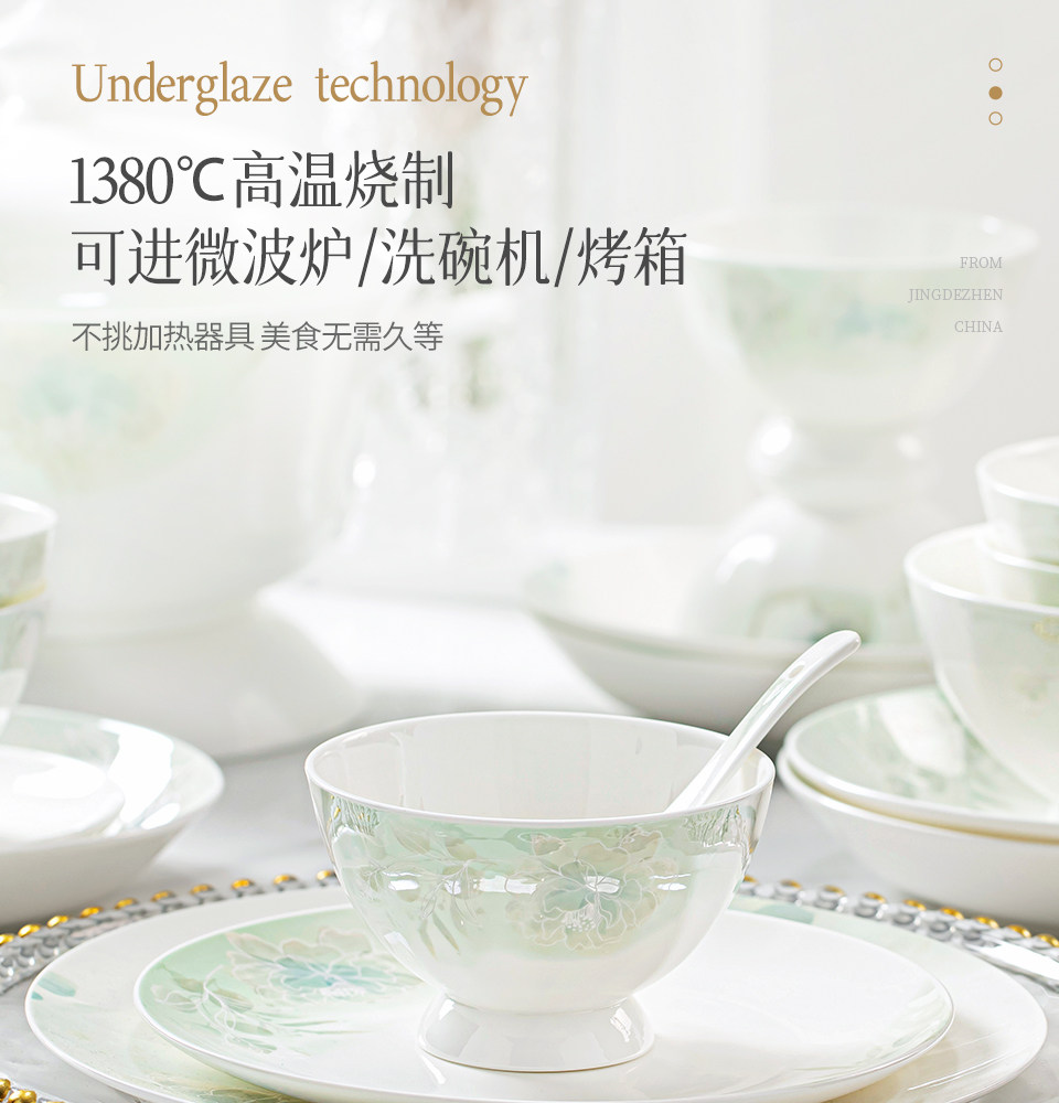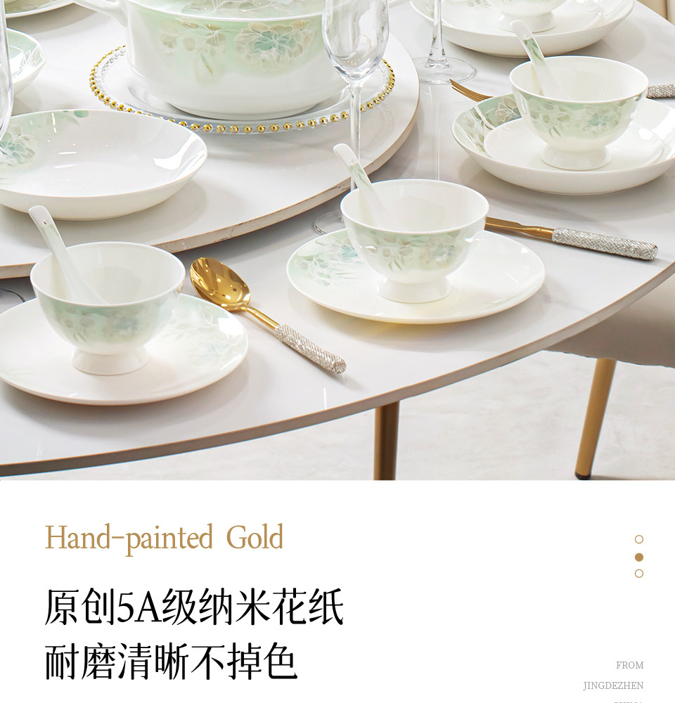 2026 High-Quality Simple and Luxurious Bowl and Plate Set for Home Use, Jingdezhen Ceramic Bone China Tableware Set, Bowls and Plates for Housewarming