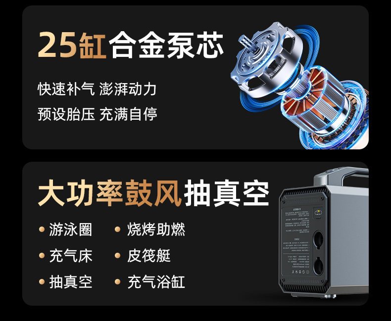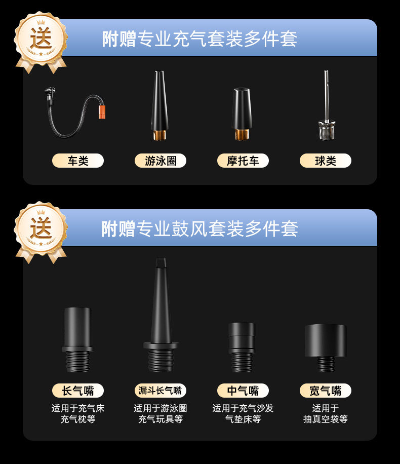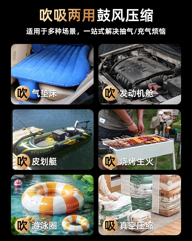 | Color Classification | [Standard Set]★Main Unit + Thick Clamp + 2 Gimbals + Air Pipe Nozzle + Air Blowing and Suction Set,[Fishing Set]★★★Standard Kit + Alloy Blue & White Zoomable Spotlight + Phone Holder,[Camping Set]★★★Standard Kit + Smart 300W Inverter + Ec5 to Cigarette Lighter Adapter Cable,[All-Round Set]★★★★★Standard Kit + Smart 300W Inverter + Ec5 to Cigarette Lighter Adapter + Alloy Blue & White Zoomable Spotlight + Phone Holder |