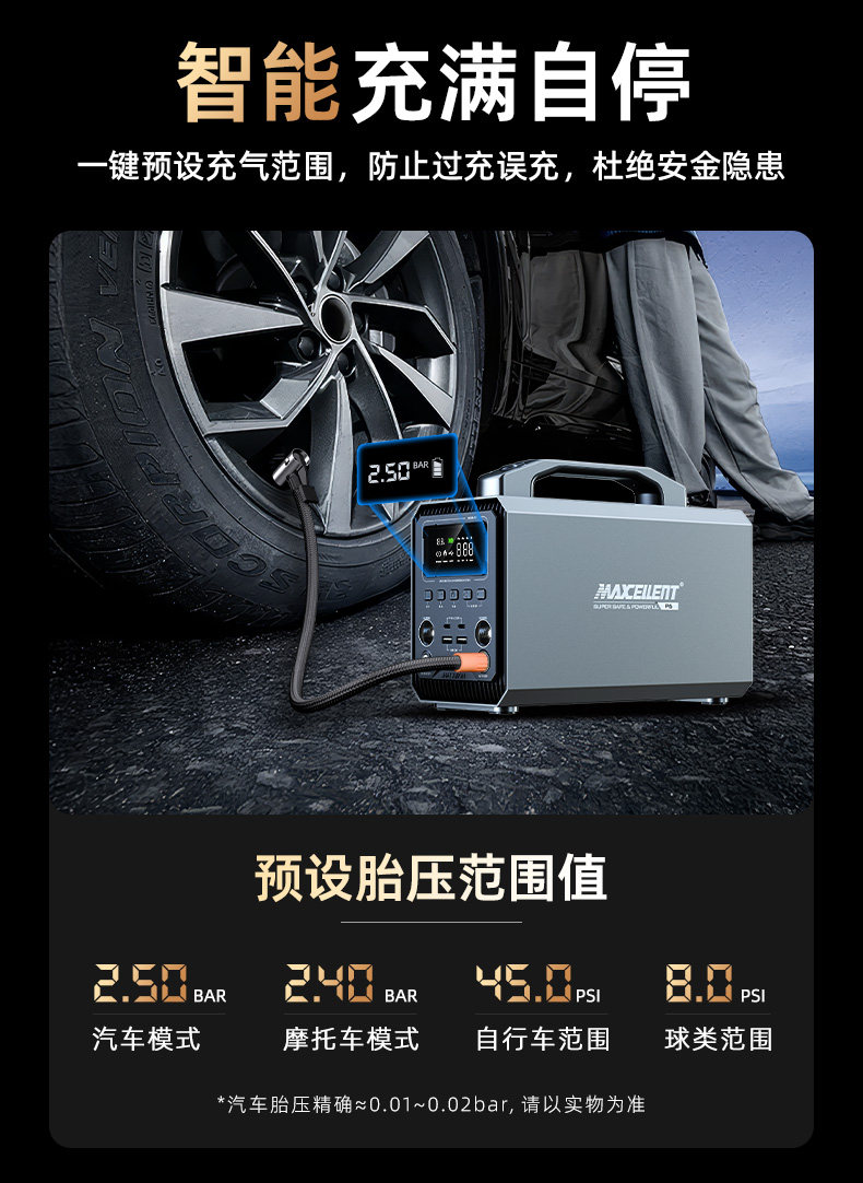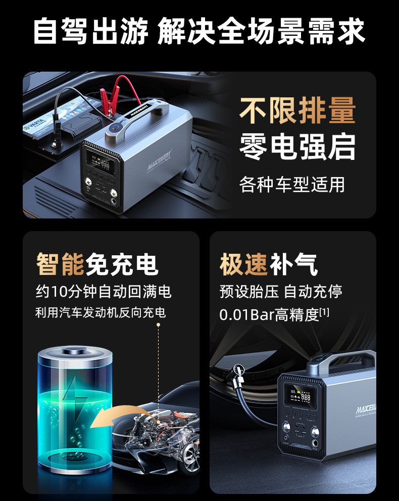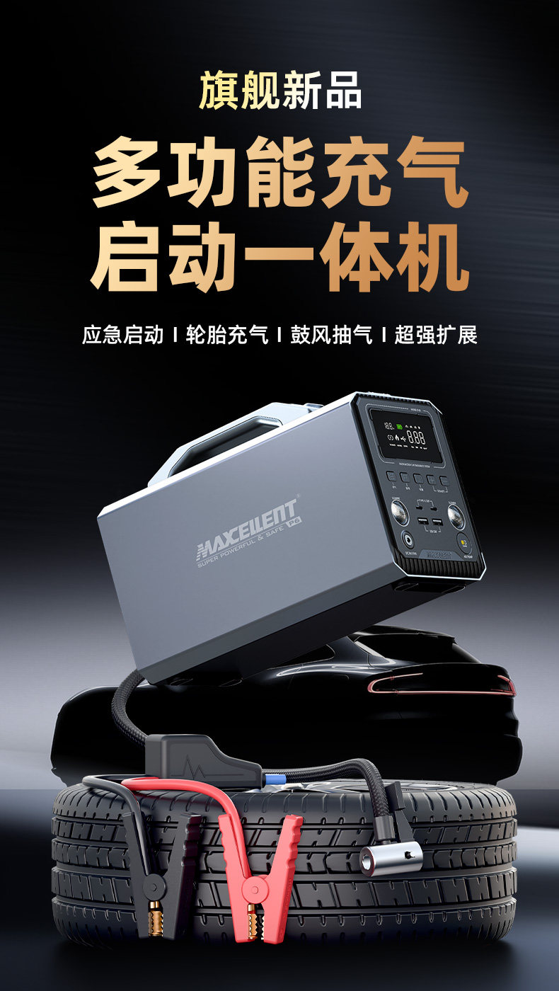 Maseron Car Air Pump with Tire Pressure Measurement and Emergency Jump Starter All-In-One Device Suitable for Cars