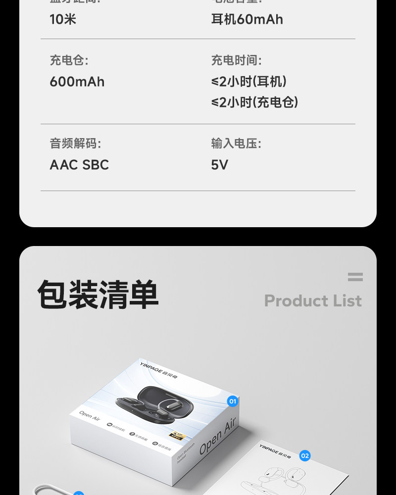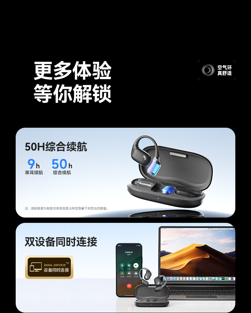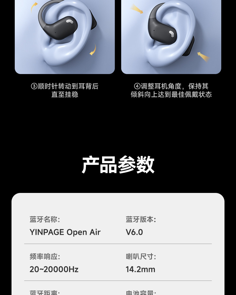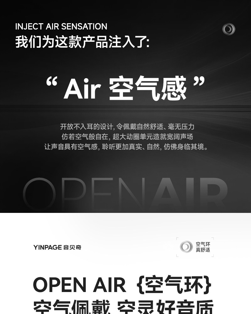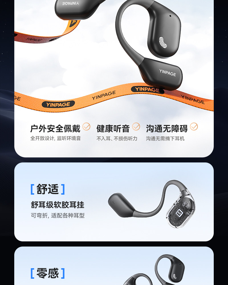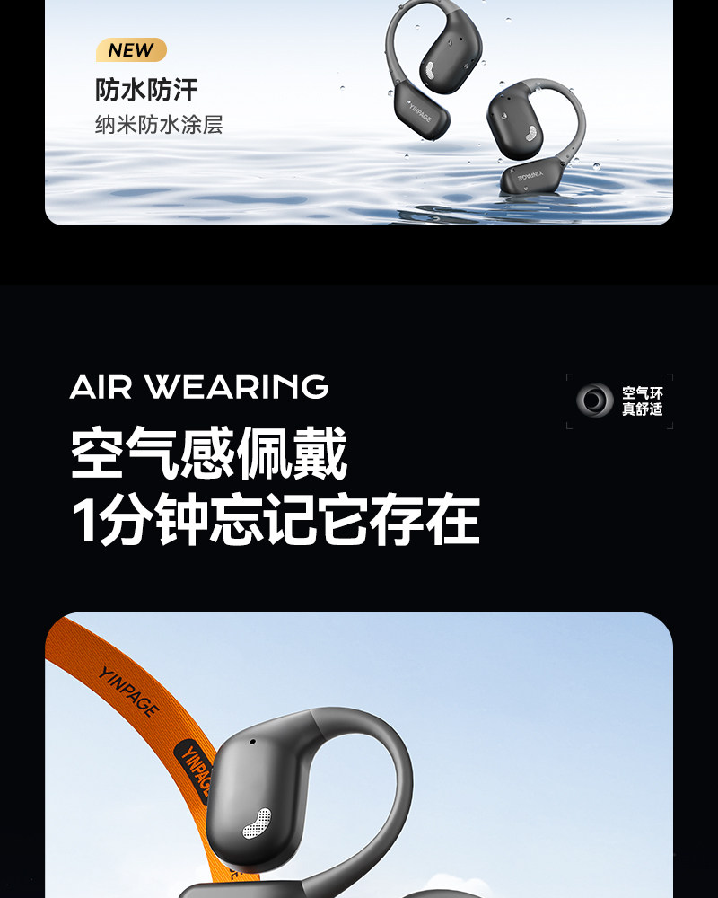 Yinbeiqi Openair Bluetooth Headphones Wireless Over-Ear Air Conduction Open Non-In-Ear Sports 2026 New Model