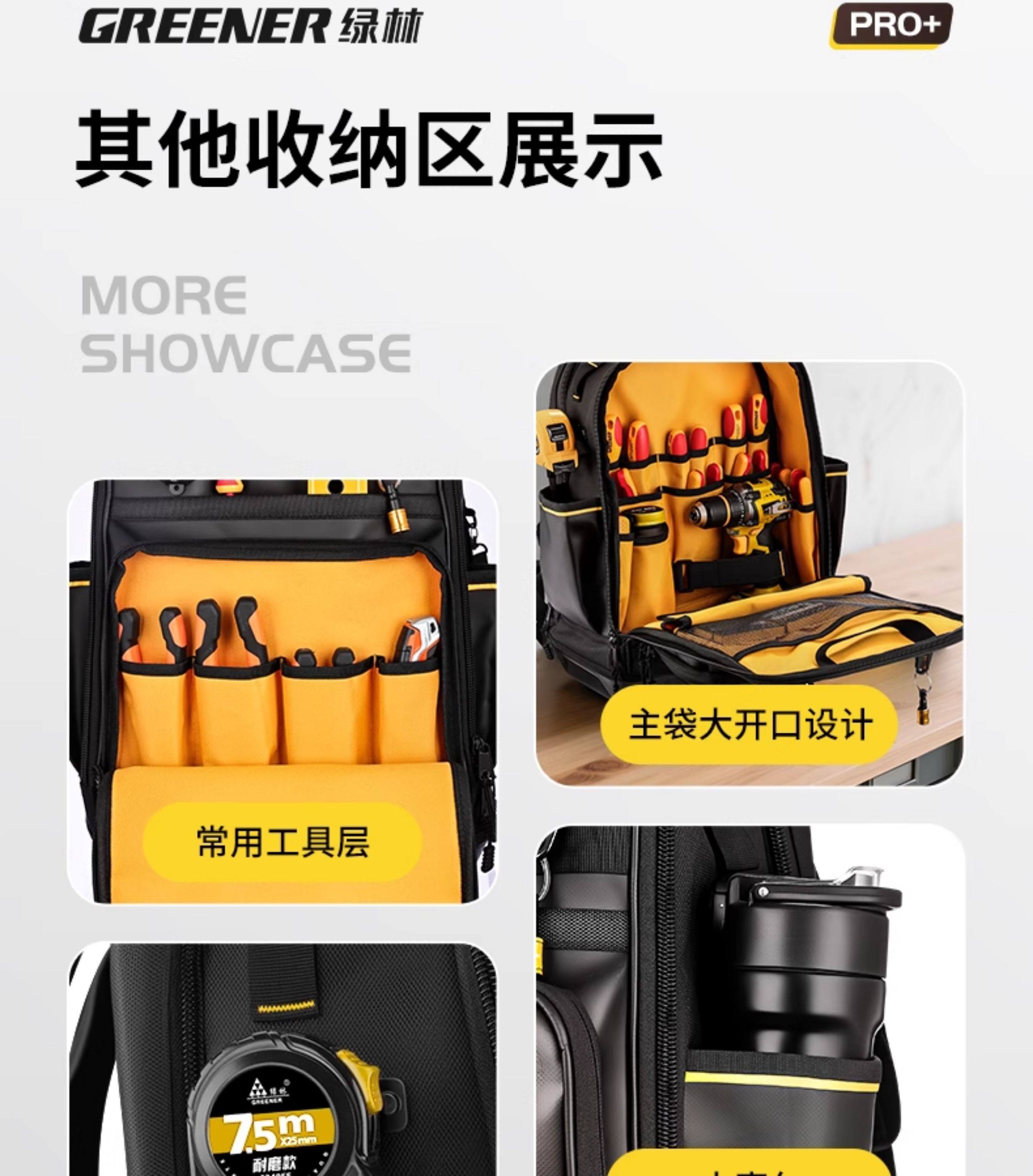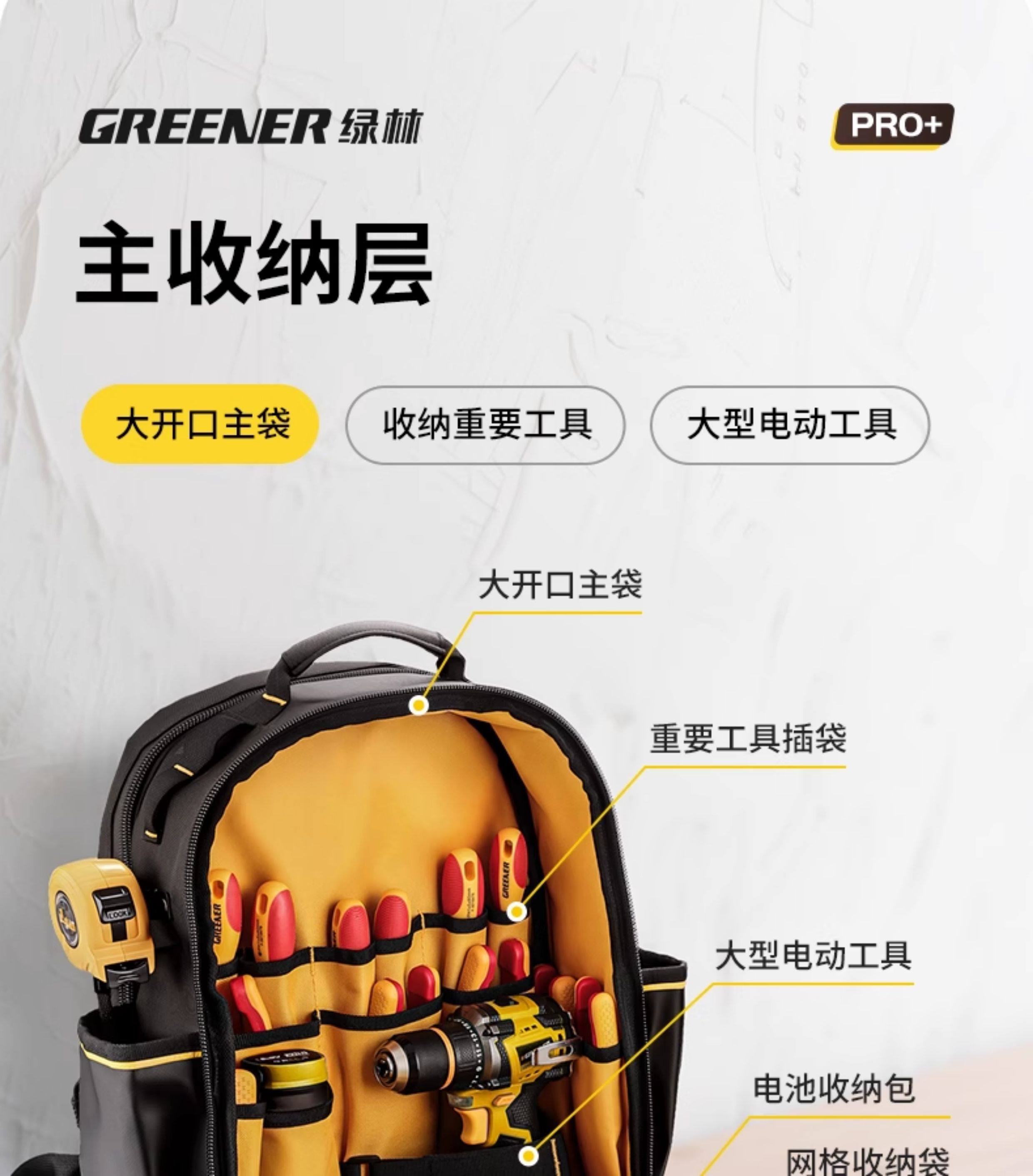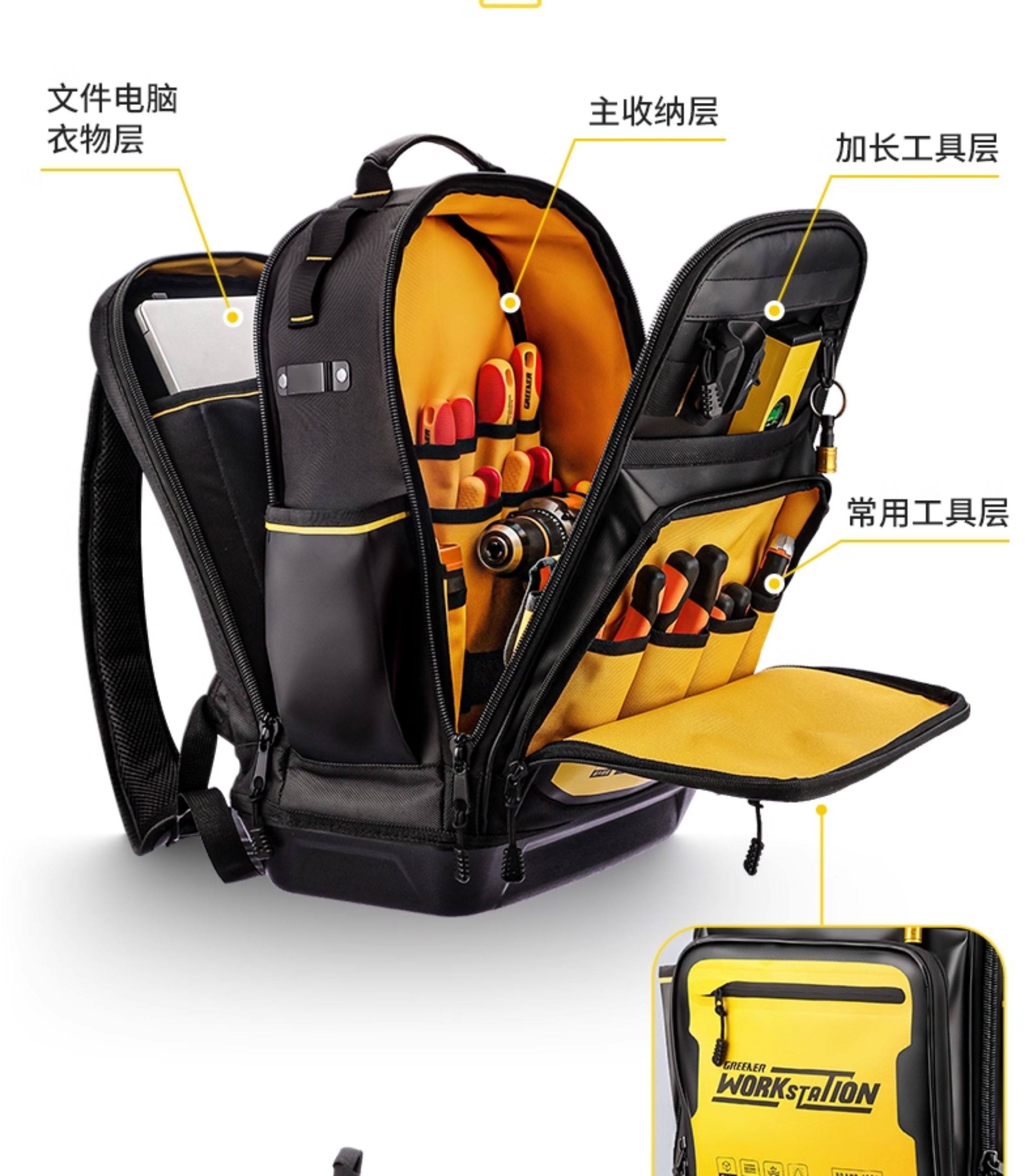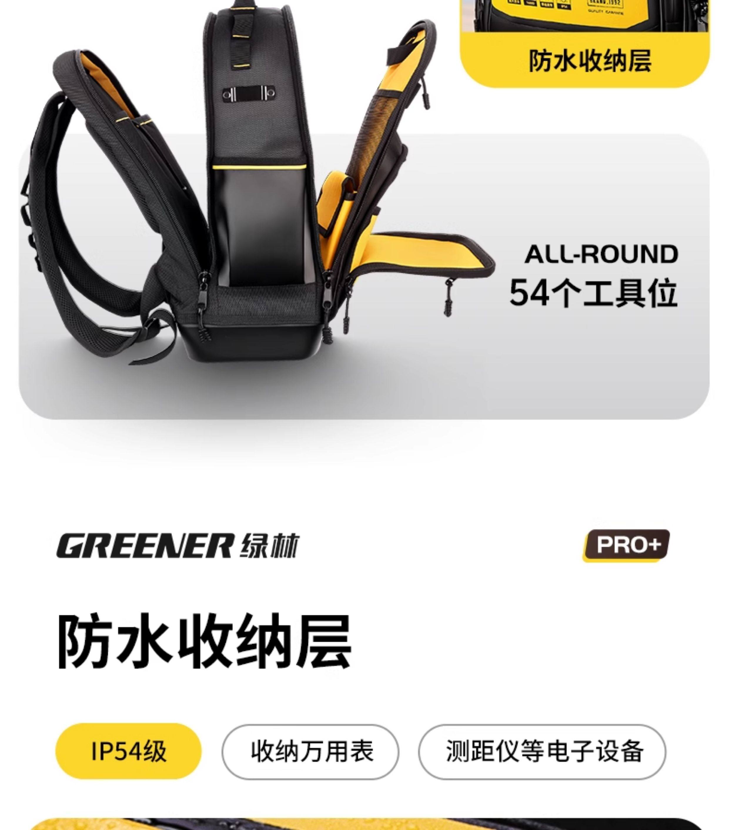 [Green Forest Pro Backpack]Tool Backpack Double-Shoulder Engineer Weak Current Electrician Installation Technician Multifunctional Storage