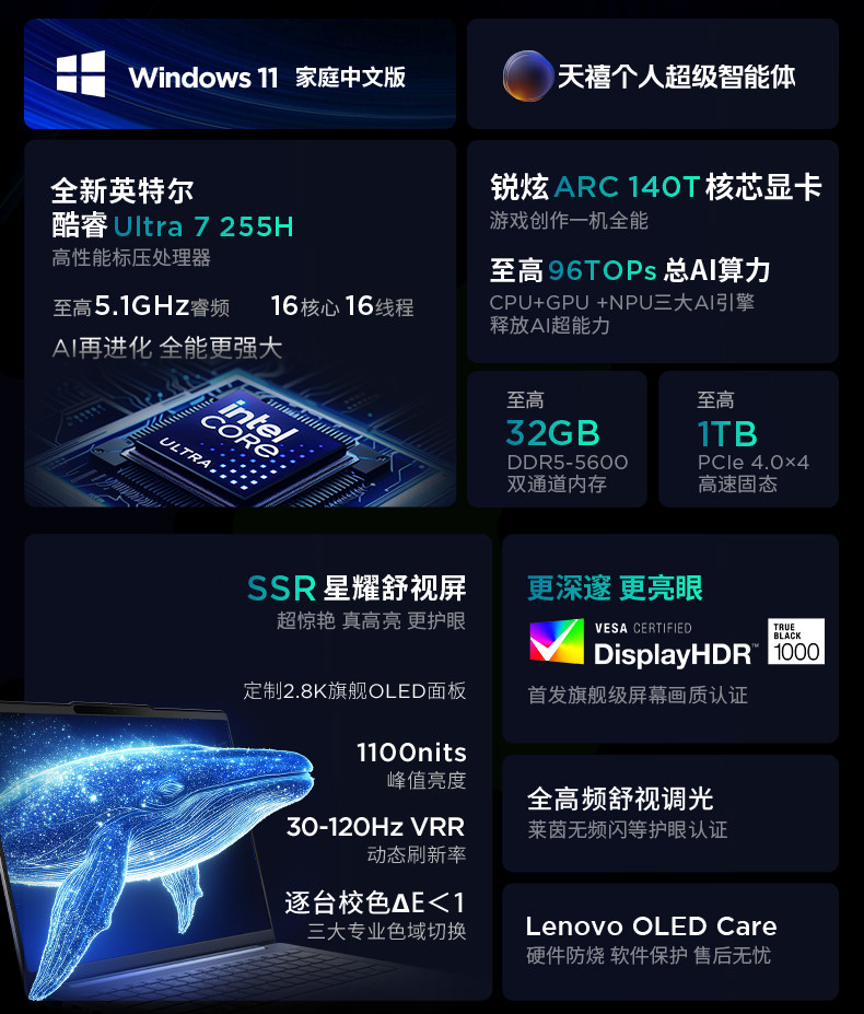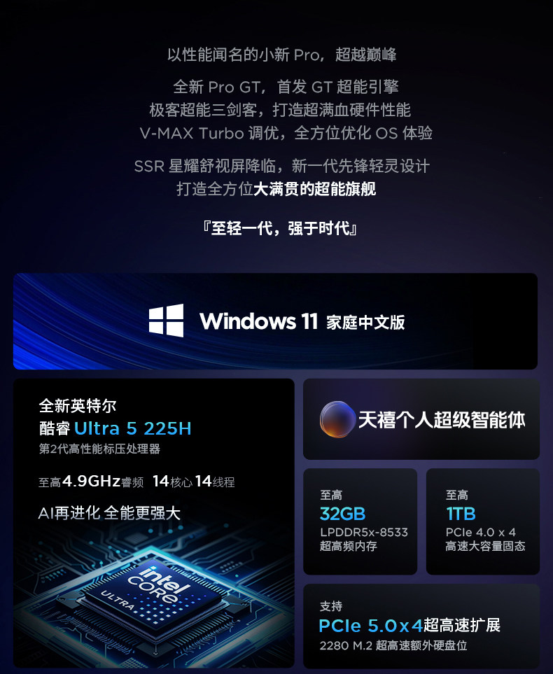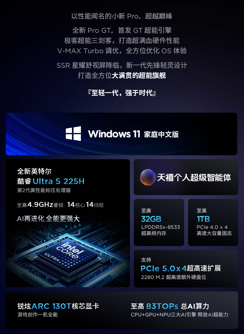 | Color Classification | [Pro14Gt Ai Yuanqi] 14inch /Ultra5-225H/2.8K Oled 120Hz,[Pro16Gt Ai Yuanqi] 16inch /Ultra5-225H/2.8K Oled 120Hz,[Pro14 Ai Yuanqi] 14inch /Ultra7-255H/32G/1Tb Ssd/2.8K Oled 120Hz,[Pro16 Ai Yuanqi] 16inch /Ultra7-255H/32G/1Tb Ssd/2.8K Oled 120Hz,[Pro14Gt Ai Yuanqi] 14inch /Ultra9-285H/2.8K Oled 120Hz,[Pro16Gt Ai Yuanqi] 16inch /Ultra9-285H/2.8K Oled 120Hz,[Pro14Gt Ai Yuanqi] Azure Blue/ 14inch /Ultra9 285H/32G/1Tb Ssd/2.8K Oled 120Hz/Diy Keycap,[Xiaoxin 14 360 Ai Yuanqi] 14inch Handwriting Touch Screen/Ultra7-255H/24G/1Tb Ssd/360°Flip,[Pro16Gt Ai Yuanqi] 16inch /Ultra9-285H/Rtx5050 Independent Graphics/32G/1Tb Ssd/2.8K Oled 120Hz |