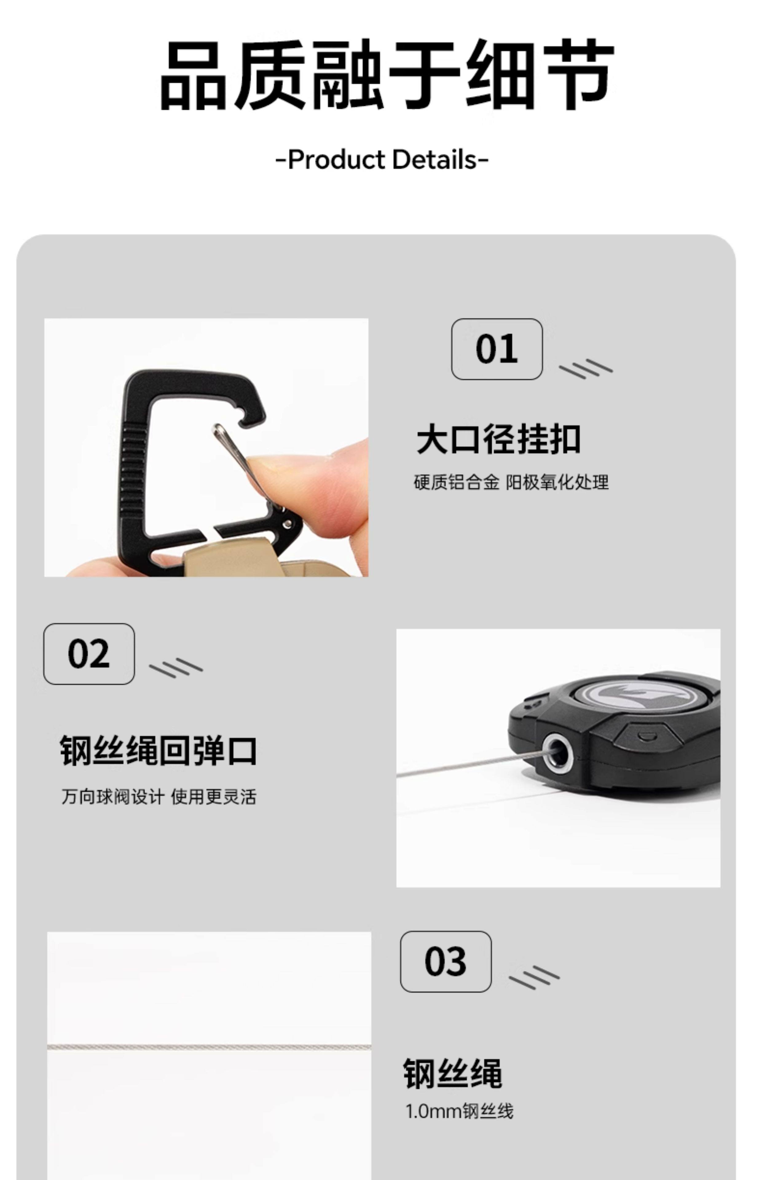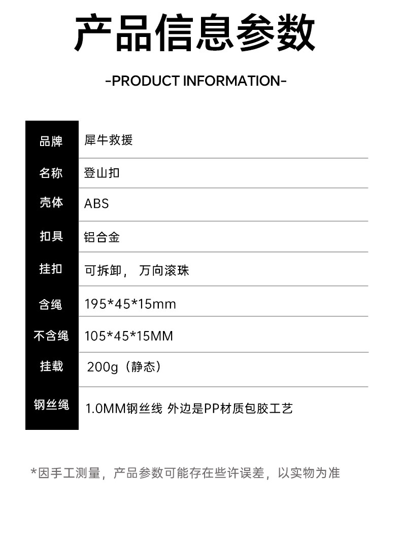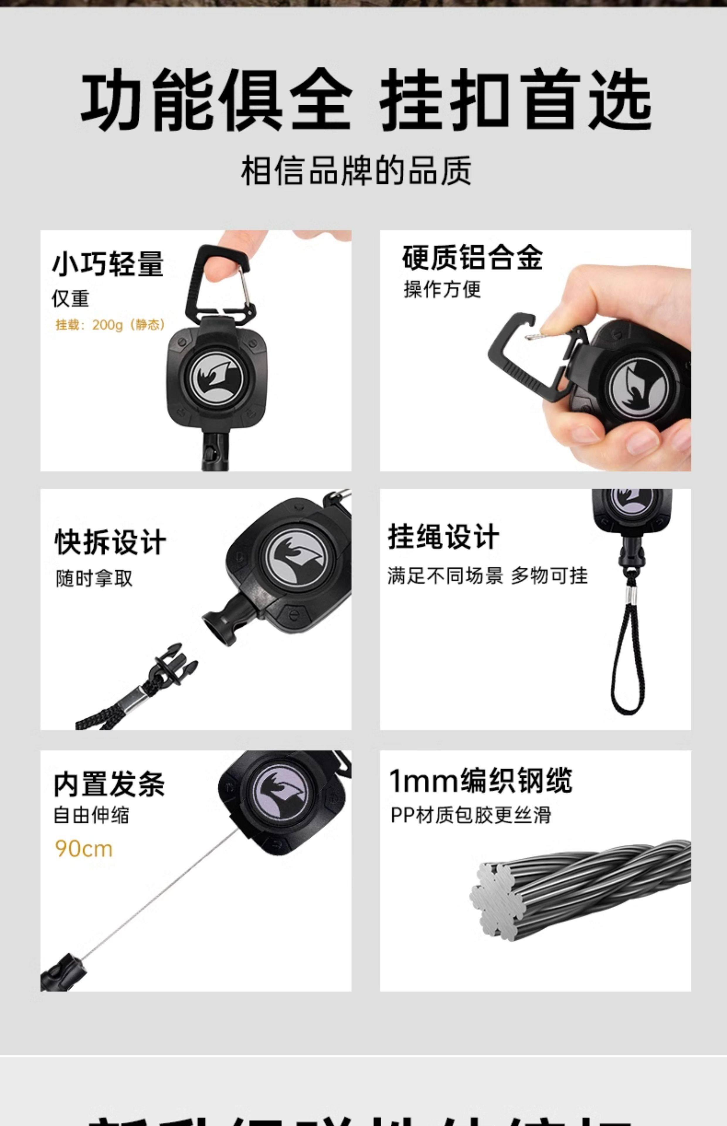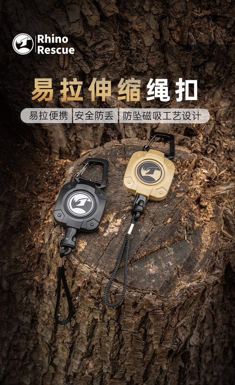 Rhino Rescue Outdoor Camping Carabiner Retractable Easy-Pull Spring Multi-Function Hook for Fishing