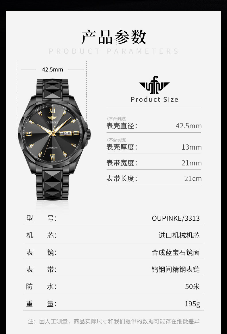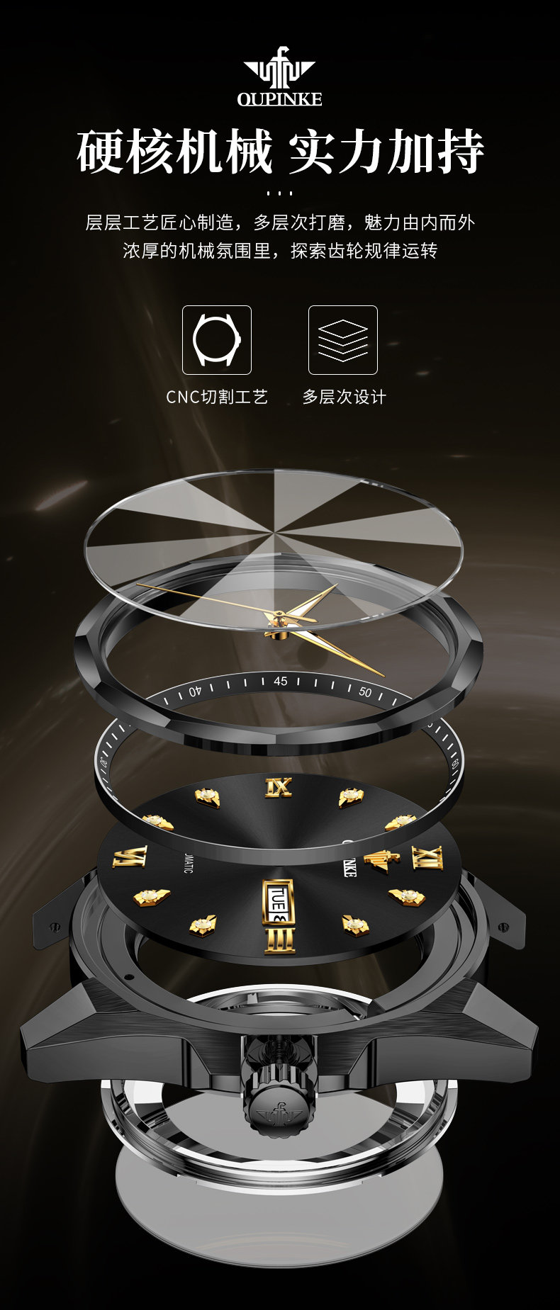Swiss Oupinke Brand Genuine Imported Movement Men's Watch, Men's Mechanical Watch, Fully Automatic Business Men's Model