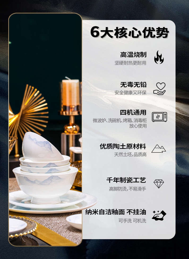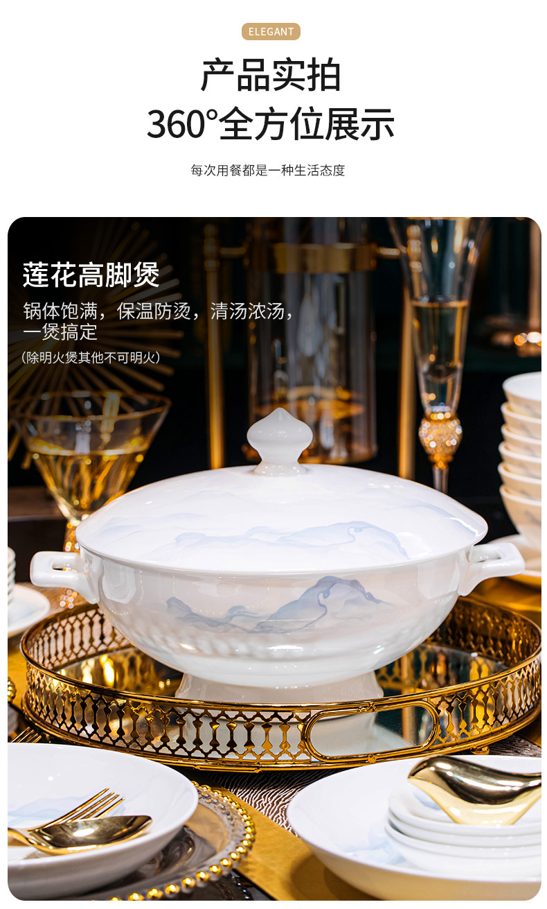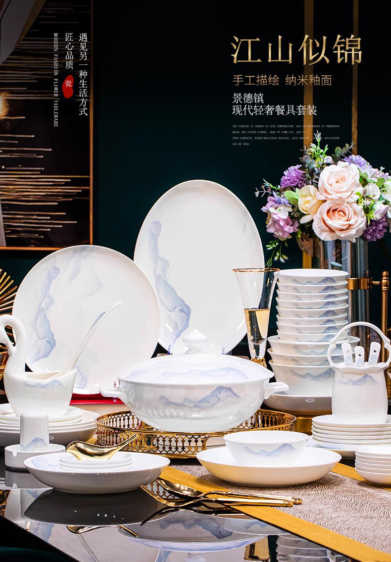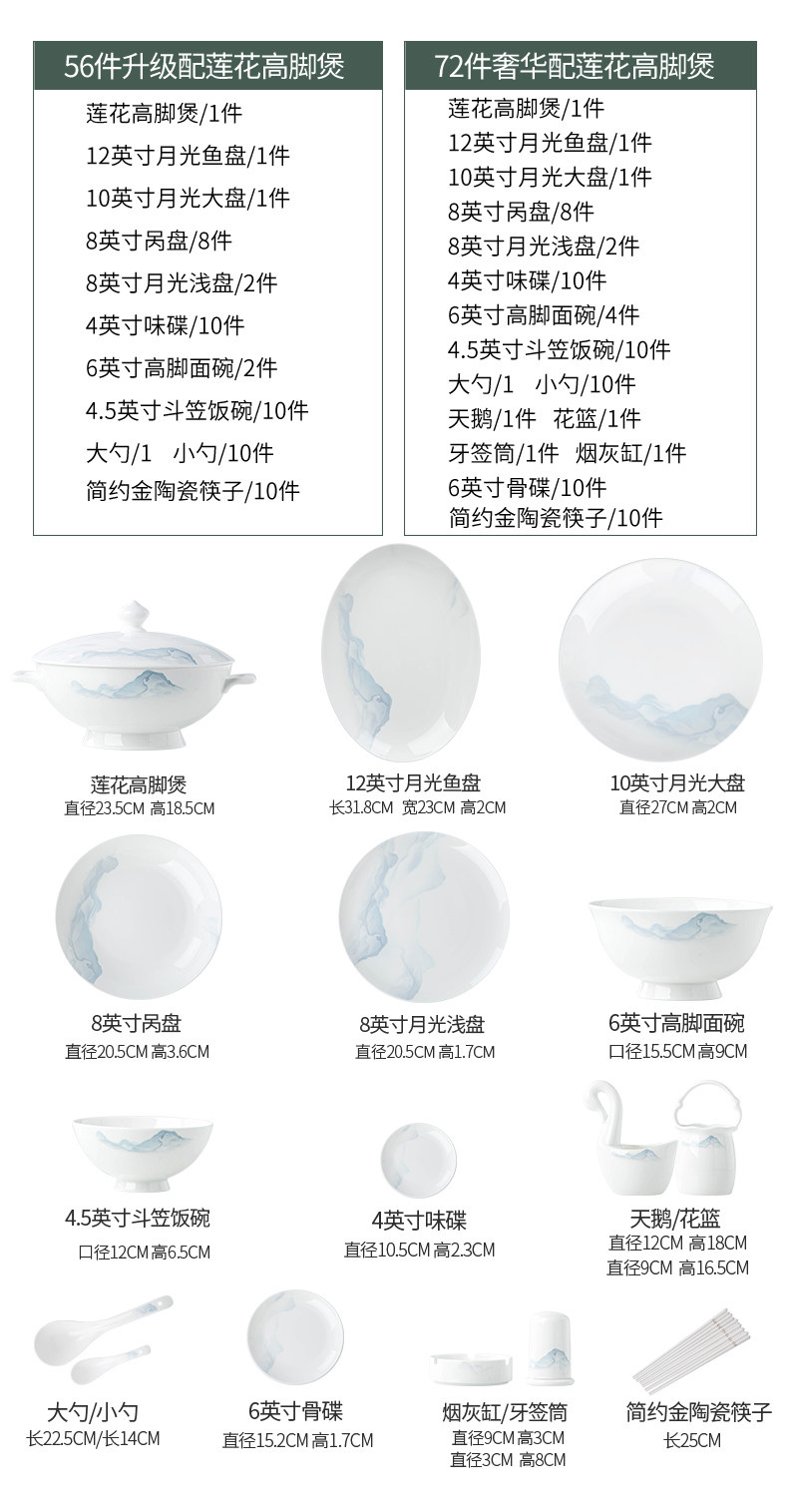 | Color Classification | ❤Underglaze Bone China❤"Golden Landscape" 56-Piece Upgraded Dinnerware Set with Lotus-Shaped High-Legged Pot (Microwave & Dishwasher Safe),❤Underglaze Bone China❤Luxury 72-Piece "Rivers and Mountains in Splendor" Dinnerware Set with Lotus-Shaped High-Legged Pot (Microwave and Dishwasher Safe),The Country Is Beautiful |