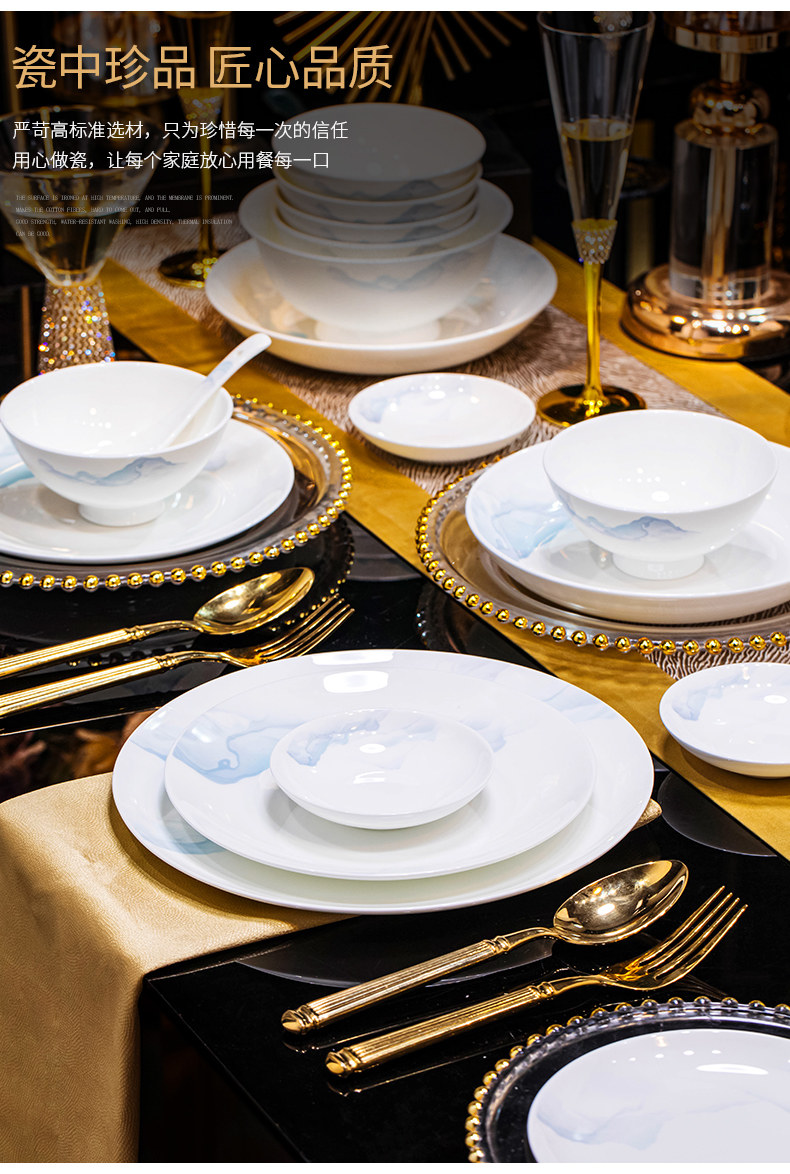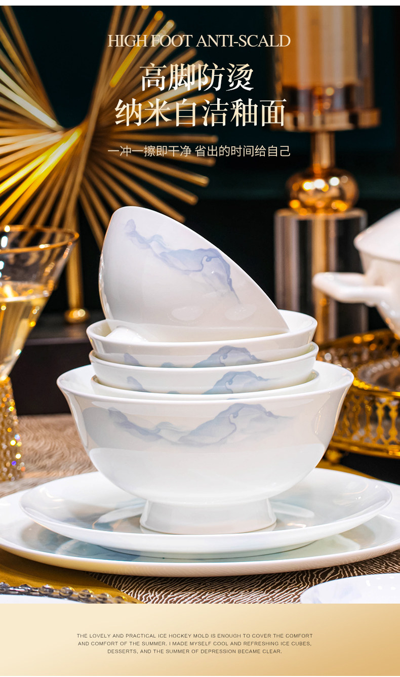 Bowl Set for Home Use 2026, High-End and Luxurious, Bowl and Plate Set for Home Use, Jingdezhen Bone China Tableware Set, Bowl for Housewarming Gift