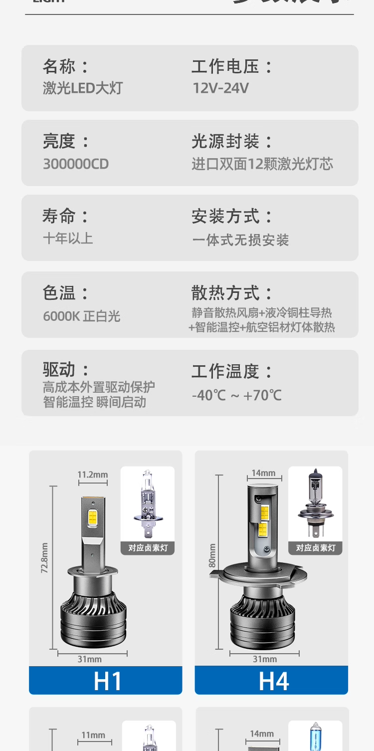 | Color Classification | 200W Super Bright[H1]40 Times Brighter Led Headlights,200W Super Bright[H3] 40 Times Brighter Led Headlights,200W Super Bright[H4] 40 Times Brighter Led Headlights,200W Super Bright[H7] 40 Times Brighter Led Headlights,200W Super Bright[H8/H9/H11] 40 Times Brighter Led Headlights,200W Super Bright[9005]40 Times Brighter Led Headlights,200W Super Bright[9006] 40 Times Brighter Led Headlights,200W Super Bright[9012] 40 Times Brighter Led Headlights,300W Laser[H1] 60 Times Brighter Led Headlights,300W Laser[H3] 60 Times Brighter Led Headlights,300W Laser[H4] 60 Times Brighter Led Headlights,300W Laser[H7] 60 Times Brighter Led Headlights,300W Laser[H8/H9/H11] 60 Times Brighter Led Headlights,300W Laser[9005] 60 Times Brighter Led Headlights,300W Laser[9006] 60 Times Brighter Led Headlights,300W Laser[9012] 60 Times Brighter Led Headlights |