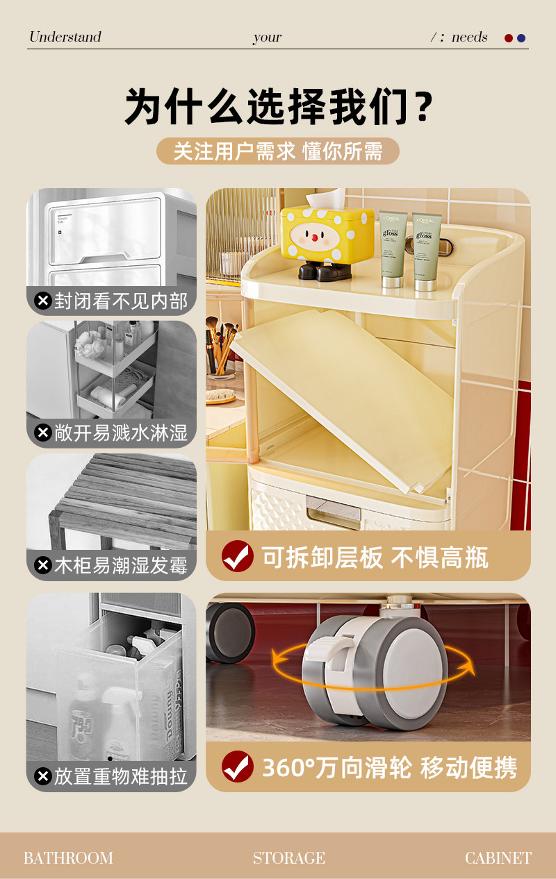 Bathroom Gap Storage Cabinet, Drawer-Type Bathroom Narrow Gap Cabinet, Bedside Living Room Snack and Toy Storage Rack