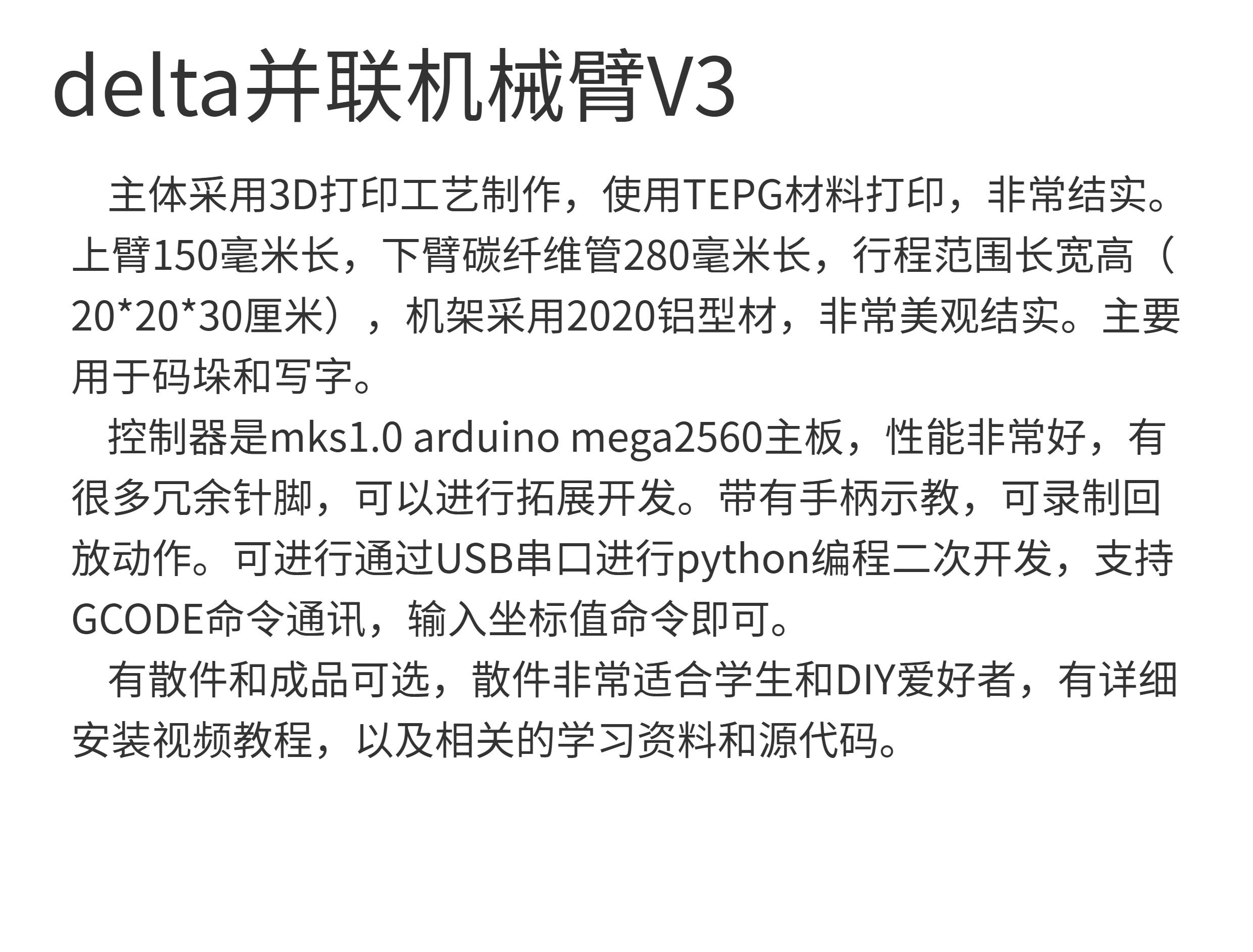 Open-Source Delta Stepper Motor Robotic Arm/Aluminum Alloy Frame/Carbon Fiber Tube/Teaching Programming/Visual Guidance/3D Printing