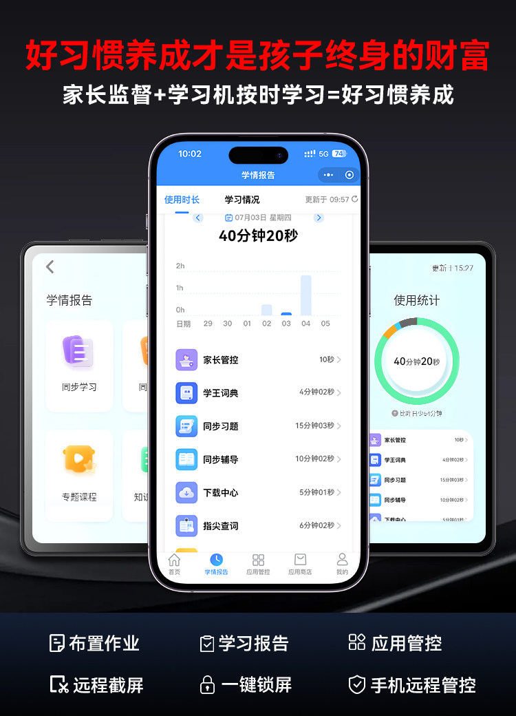 | Parental Control | Sitting Posture Monitoring,Combination Mode,Self-Study Statistics,Answer Locked,Internet Access Control,Content Filtering,Parental Mobile App,Application Download Restrictions,Take Regular Breaks,Remote Screenshot,Parents Accompany Learning,Time Period Control,Ai English Q&A and Tutoring,Usage Statistics,Application Management,Personalized Reminder,Learning Daily |