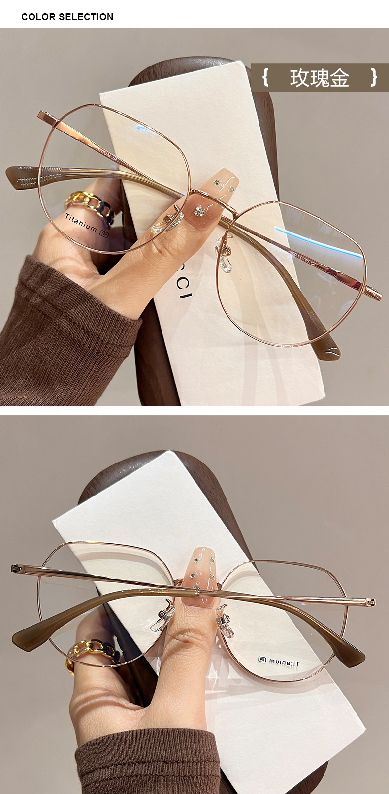 | Color Classification | [Titanium Frame] Mocha Gold C2,[Titanium Frame] Starlight Silver C6,[Titanium Frame] Rose Gold C4,[Titanium Frame] Black Gold Frame C3,[Titanium Frame] Frosted Green C5 |