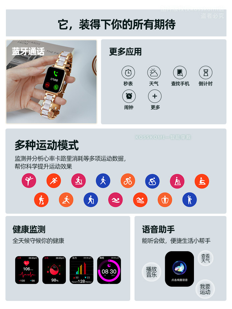 | Appearance Color | Creamy White Rose Gold [Bluetooth Calling, Offline Payments, Message Sync, Fitness Tracking, Heart Rate & Blood Pressure Monitoring, and More],Flash Silver [Bluetooth Calls, Offline Payments, Message Synchronization, Exercise Tracking, Heart Rate and Blood Pressure Health Monitoring and Other Functions],Tortoiseshell Black [Bluetooth Calling, Offline Payments, Message Sync, Activity Tracking, Heart Rate & Blood Pressure Monitoring, and More],Tortoiseshell Rose Gold [Bluetooth Calling, Offline Payments, Message Sync, Activity Tracking, Heart Rate & Blood Pressure Monitoring, and More],Lotus Root Pink Rose Gold [Bluetooth Calling, Offline Payment, Message Sync, Fitness Tracking, Heart Rate & Blood Pressure Monitoring, and More],Rainbow Rose Gold [Bluetooth Calls, Offline Payments, Message Synchronization, Exercise Tracking, Heart Rate and Blood Pressure Health Monitoring and Other Functions],Pink Green Rose Gold [Bluetooth Calls, Offline Payments, Message Synchronization, Exercise Tracking, Heart Rate and Blood Pressure Health Monitoring and Other Functions],Pink, Green and Silver [Bluetooth Calls, Offline Payments, Message Synchronization, Exercise Tracking, Heart Rate and Blood Pressure Health Monitoring and Other Functions],Upgraded 07 Creamy White Rose Gold [New Features: Wechat Chat + Local Music + Bluetooth Calling, Offline Payment, Message Synchronization, Fitness Tracking, and More],Upgraded 07 Flash Silver [New Wechat Chat + Local Music + Bluetooth Calls, Offline Payment, Message Synchronization, Sports and Health, Etc.],Upgraded 07 Tortoiseshell Black [New Wechat Chat + Local Music + Bluetooth Call, Offline Payment, Message Synchronization, Sports and Health, Etc.],Upgraded 07 Tortoiseshell Rose Gold [New Wechat Chat + Local Music + Bluetooth Call, Offline Payment, Message Synchronization, Sports and Health, Etc.],Upgraded 07 Lotus Root Pink Rose Gold [New Features: Wechat Chat + Local Music + Bluetooth Calling, Offline Payment, Message Synchronization, Fitness & Health, Etc.],Upgrade to 07 Rainbow Rose Gold [New Wechat Chat + Local Music + Bluetooth Calls, Offline Payment, Message Synchronization, Sports and Health, Etc.],Upgrade to 07 Pink Green Rose Gold [New Wechat Chat + Local Music + Bluetooth Calls, Offline Payment, Message Synchronization, Sports and Health, Etc.],Upgrade to 07 Pink, Green and Silver [New Wechat Chat + Local Music + Bluetooth Calls, Offline Payment, Message Synchronization, Sports and Health, Etc.],Rose Gift Box & Creamy White Rose Gold [Personalized Greeting Card Available. Contact Customer Service for Color Changes or Other Requests.],Mirror Gift Box & Creamy White Rose Gold [Personalized Greeting Card Available. Contact Customer Service for Color Changes or Other Requests.],White & Orange Gift Box & Creamy White Rose Gold [Personalized Greeting Card Available. Contact Customer Service for Color Changes or Other Requests.],Love Red Gift Box & Creamy White Rose Gold [Personalized Greeting Card Available. Contact Customer Service for Color Changes or Other Requests.],Heart Lock Love Gift Box & Creamy White Rose Gold [Greeting Card Can Be Written on Behalf of You. if You Need to Change the Color or Have Other Requirements, Please Contact Customer Service],Camellia Bow Gift Box & Creamy White Rose Gold [Personalized Greeting Card Available. Contact Customer Service for Color Changes or Other Requests.],Joyful Gift Box & Creamy Rose Gold [Personalized Greeting Card Available. Contact Customer Service for Color Changes or Other Requests.],Pink Gift Box & Creamy White Rose Gold [Personalized Greeting Card Available. Contact Customer Service for Color Changes or Other Requests.],Spare 1,Spare 2 |