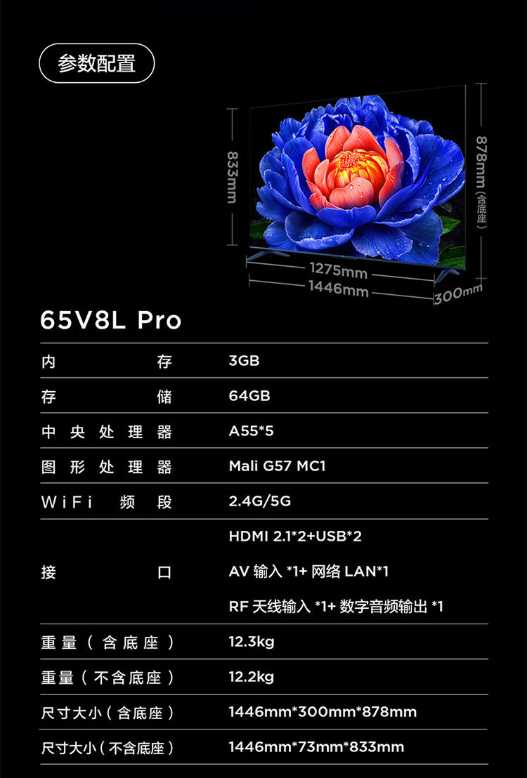 Tcl Tv 65V8L Pro 65-Inch 144Hz High Refresh Rate High Color Gamut 3+64Gb Large Memory Flat-Panel Tv