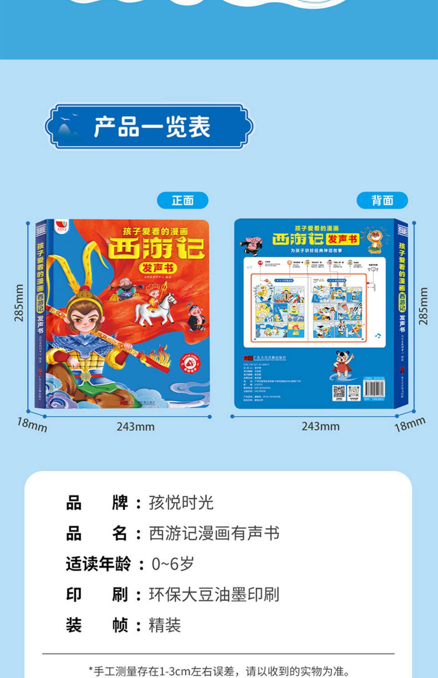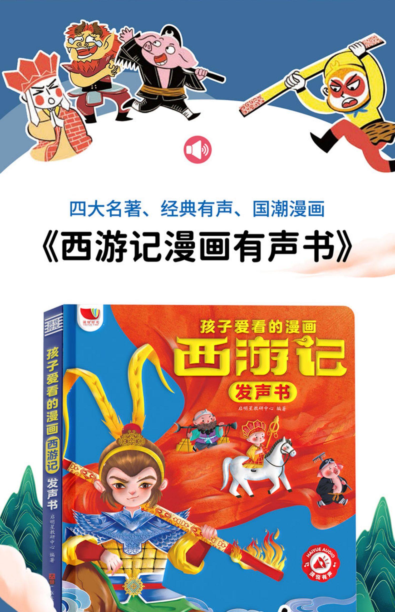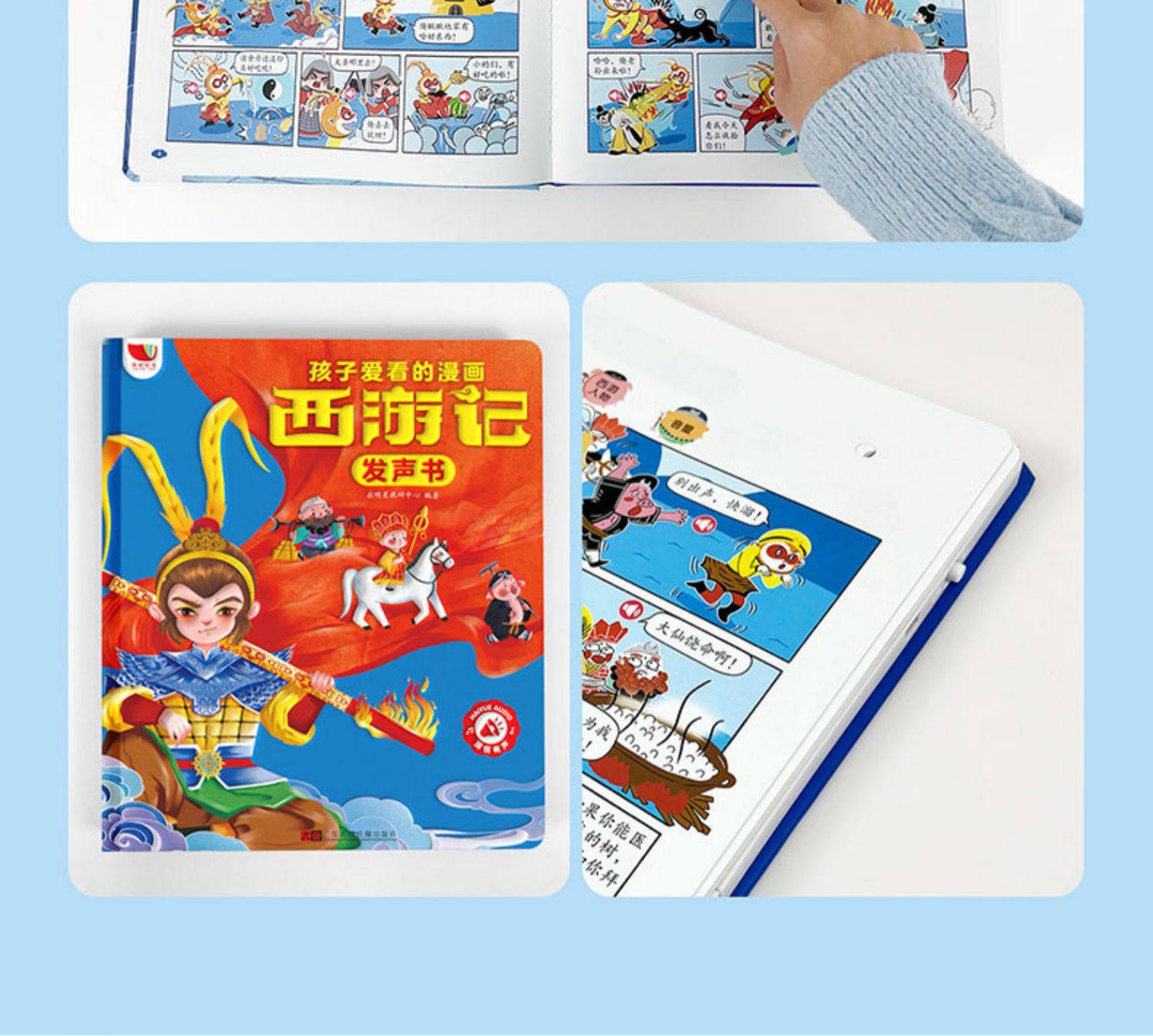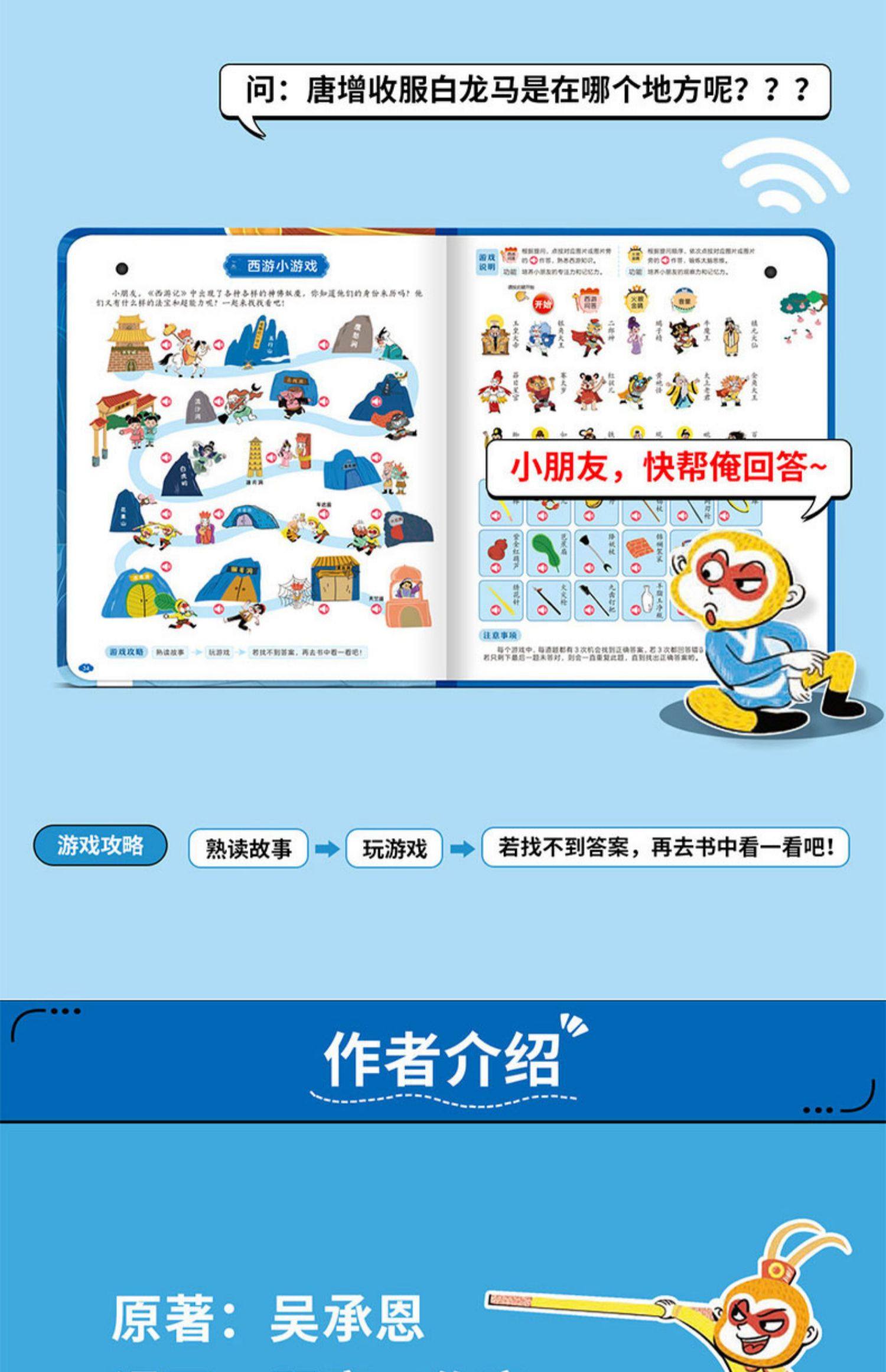 Children's Journey to the West Comic Audio Book, Finger-Point Reading Sound Book, Genuine Comic Book, Classic Four Great Classics Picture Book, Early Education and Intelligence Development for Children Aged 0 to 3, Talking Early Education Story Book for Babies Aged 3-6, Tear-Resistant Children's Book
