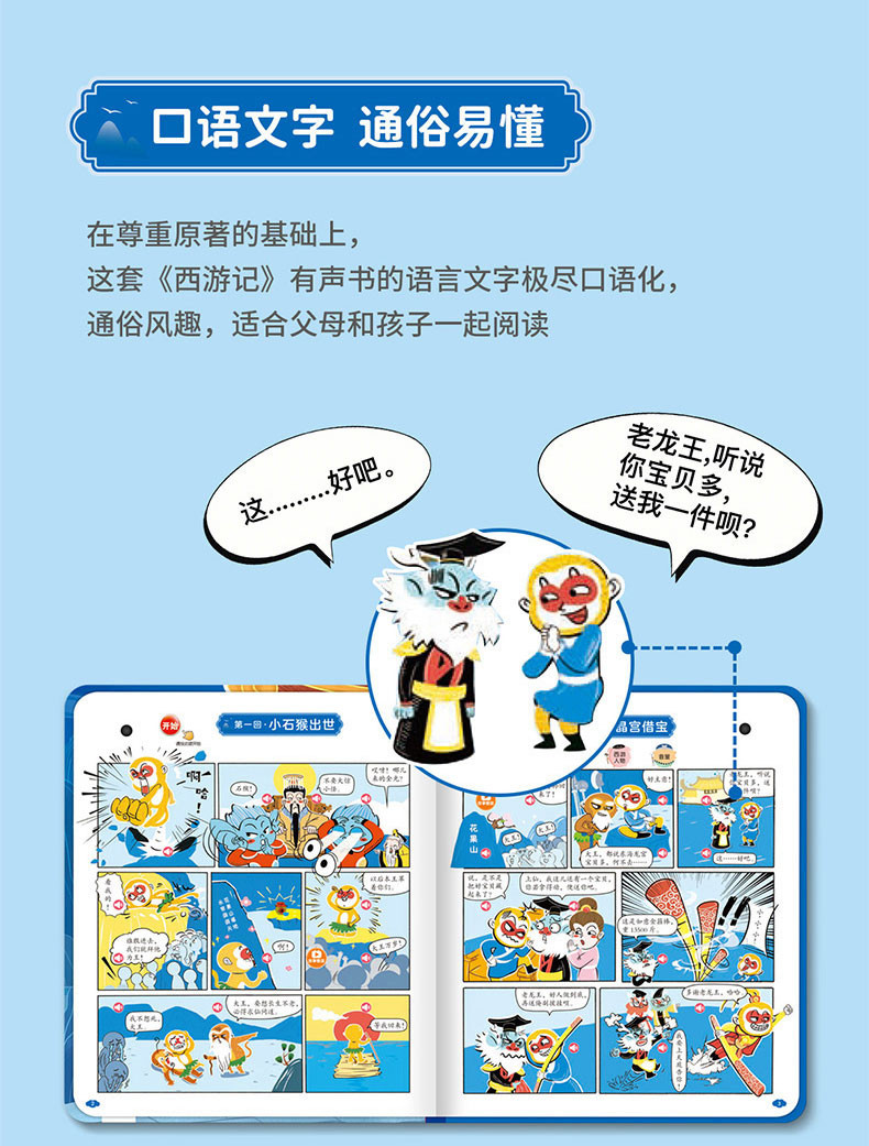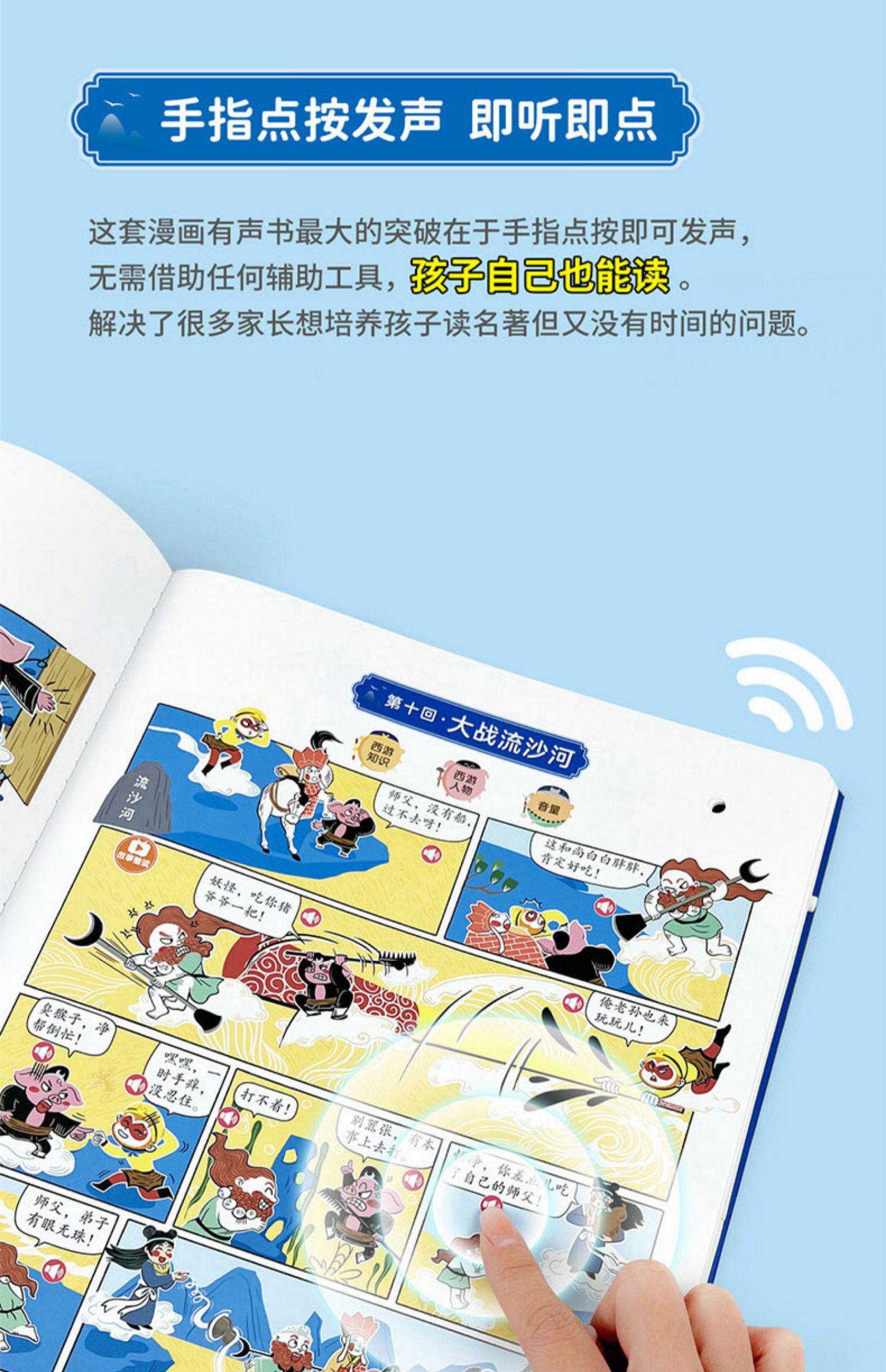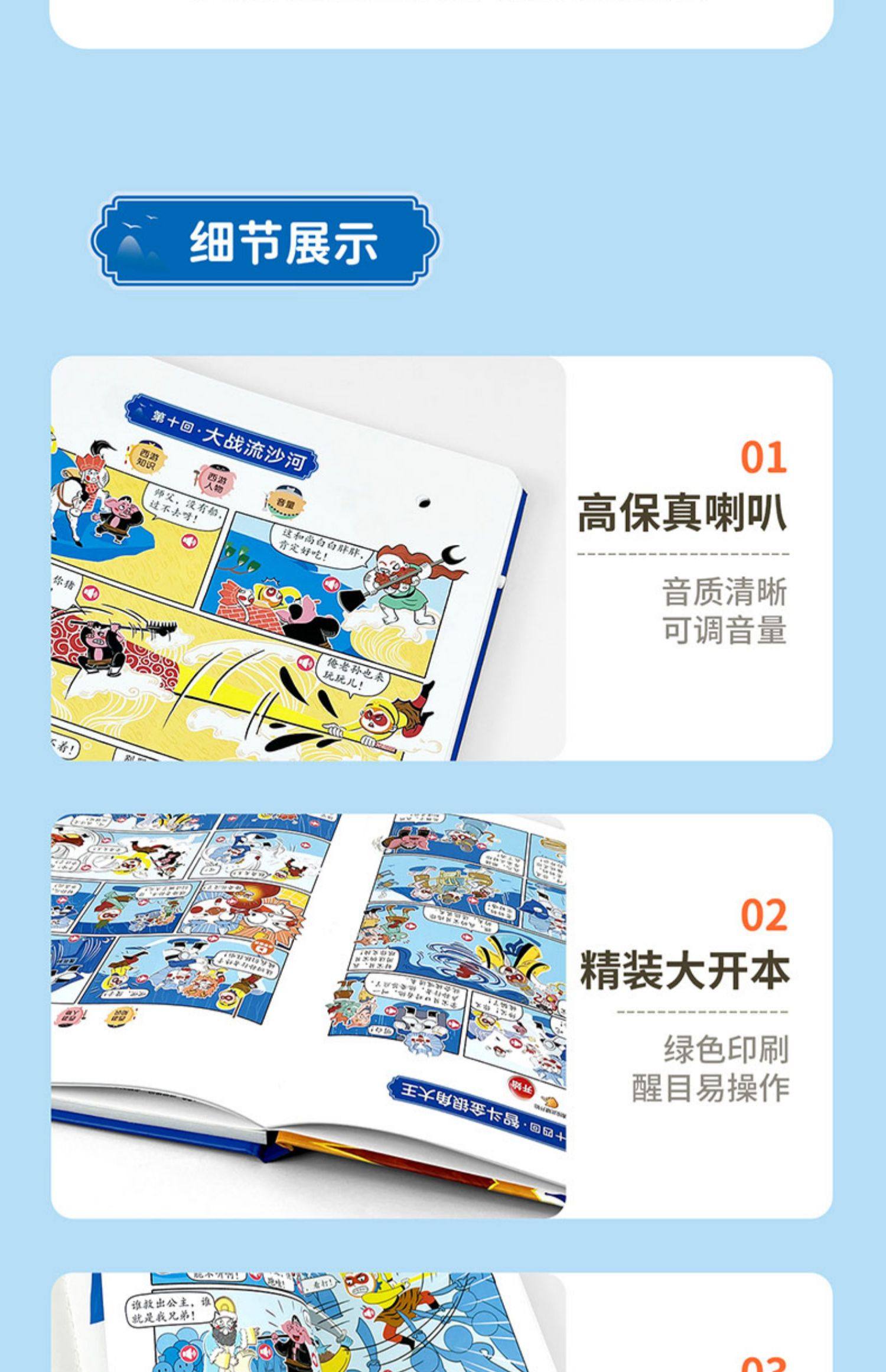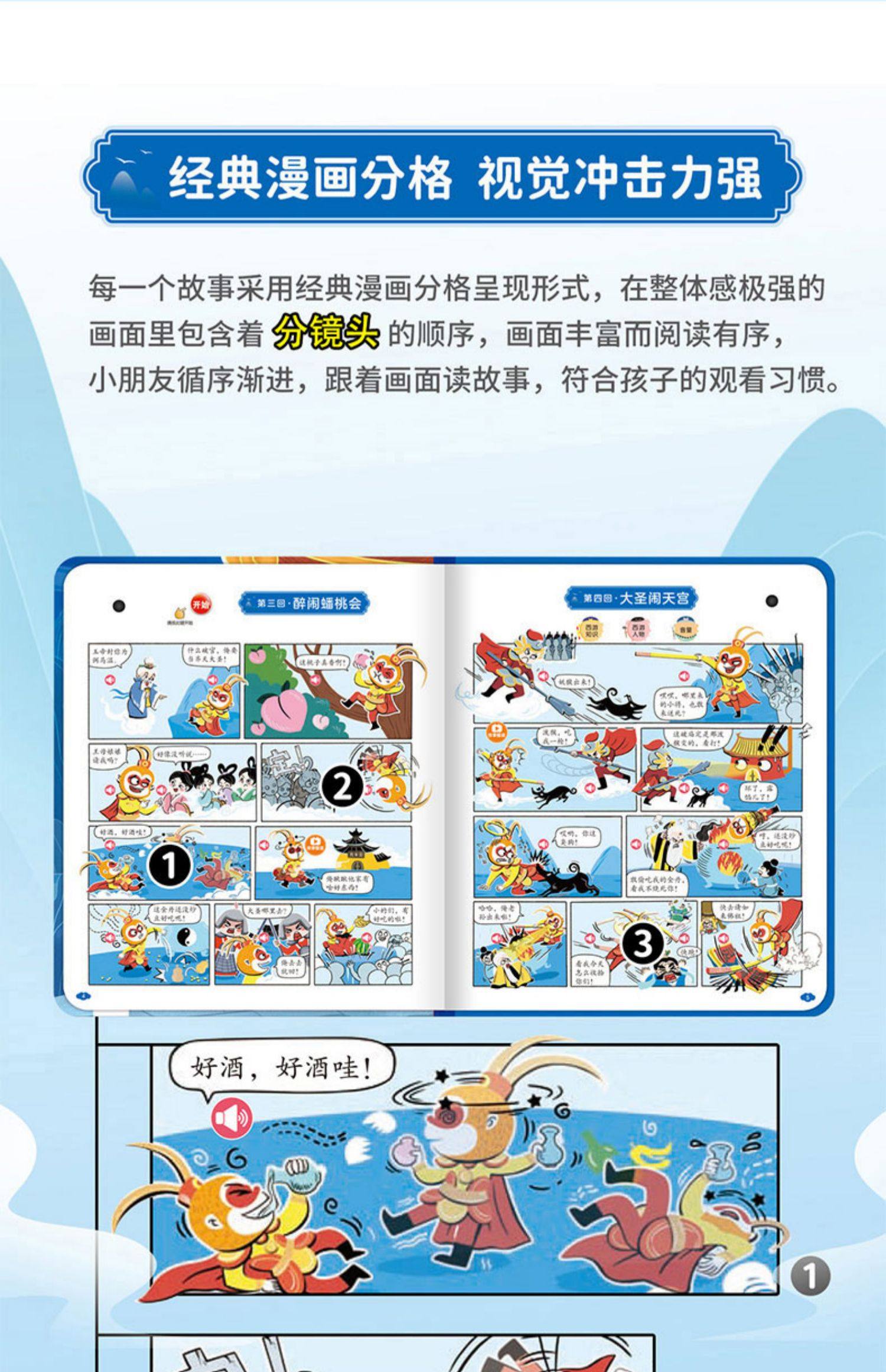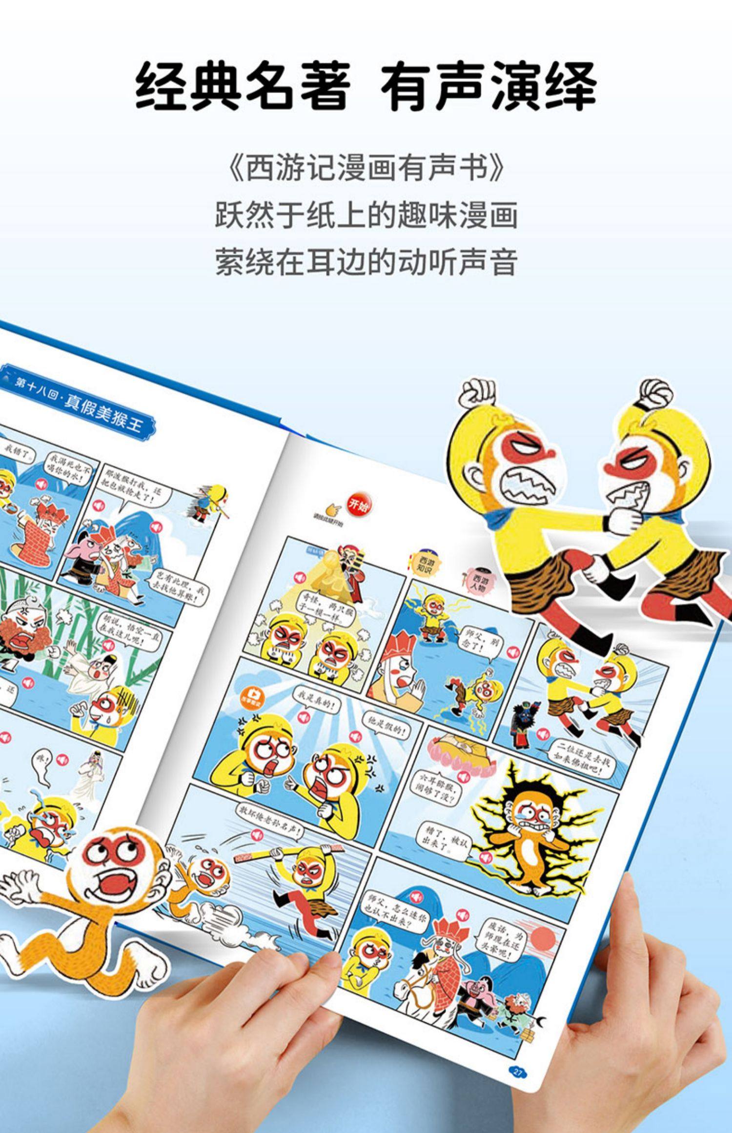 Children's Journey to the West Comic Audio Book, Finger-Point Reading Sound Book, Genuine Comic Book, Classic Four Great Classics Picture Book, Early Education and Intelligence Development for Children Aged 0 to 3, Talking Early Education Story Book for Babies Aged 3-6, Tear-Resistant Children's Book