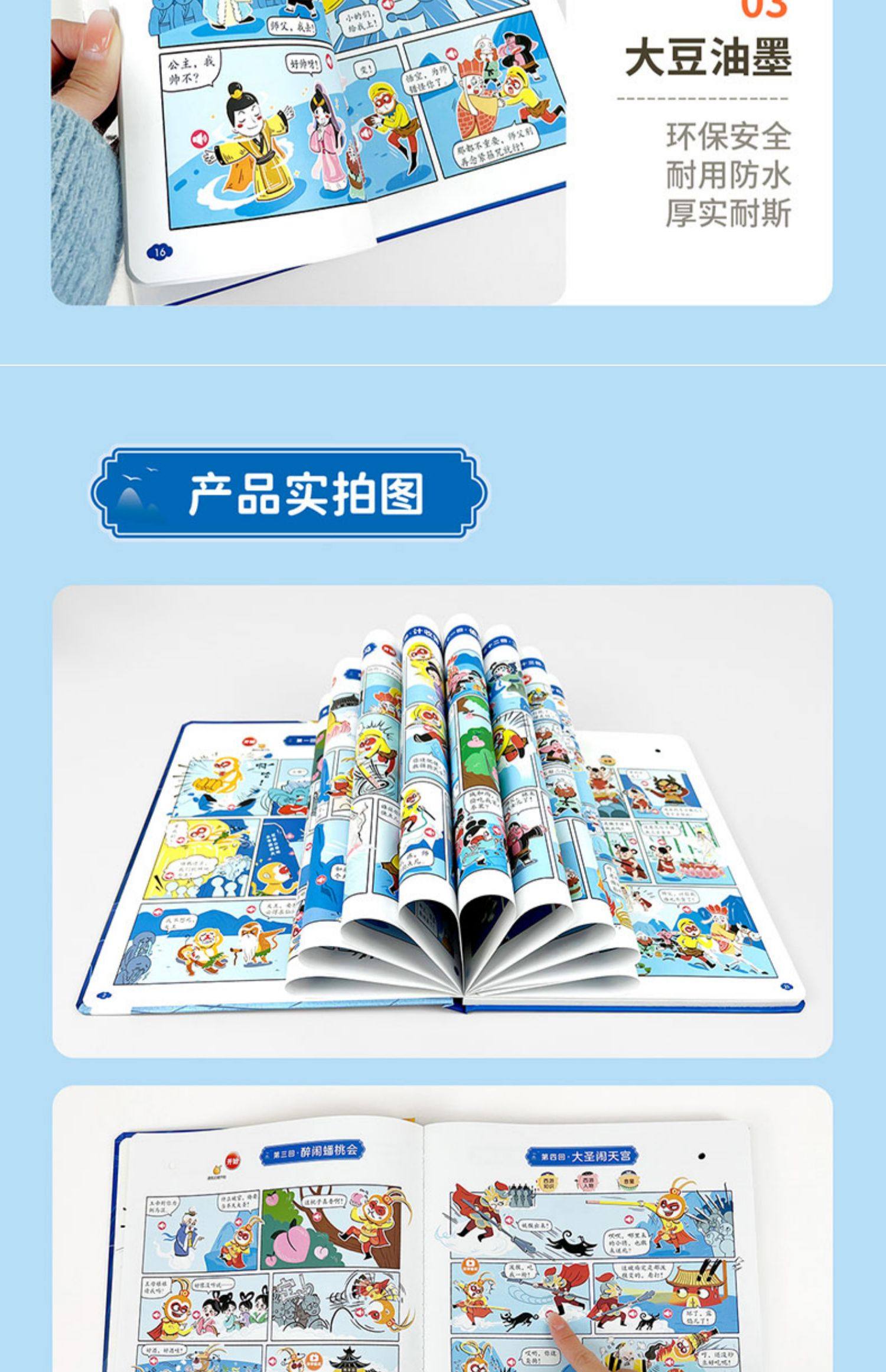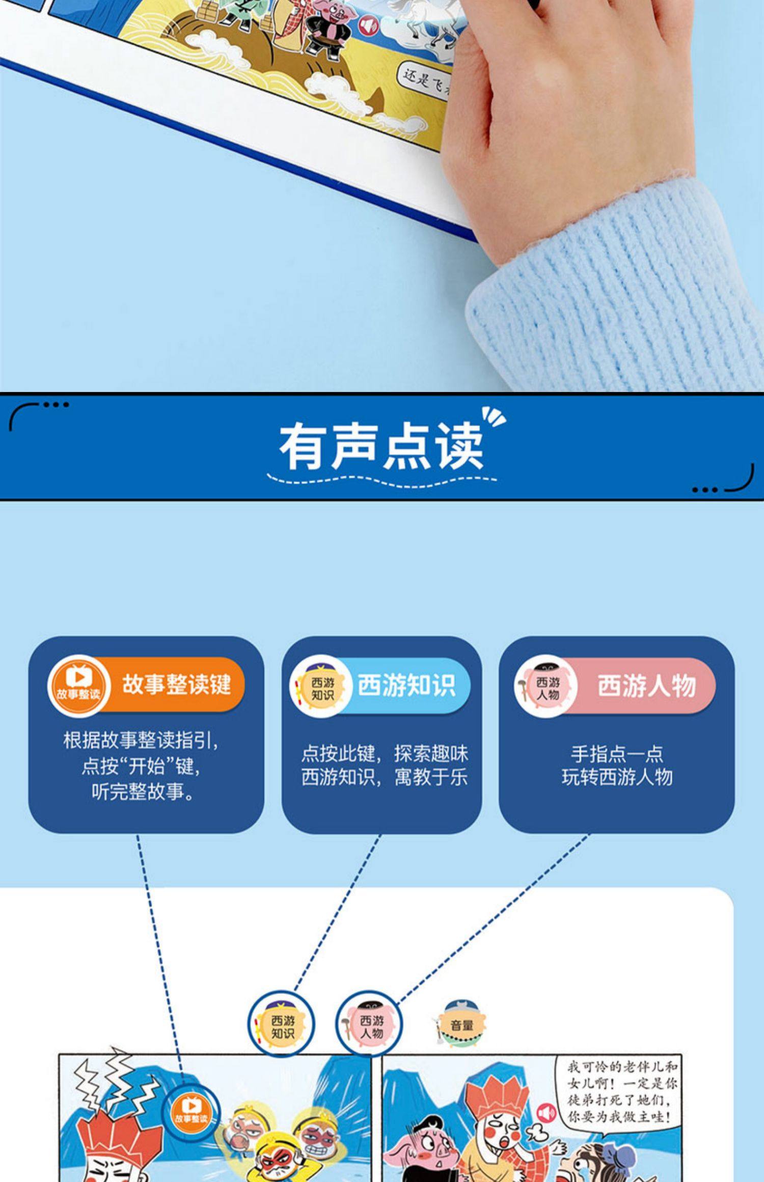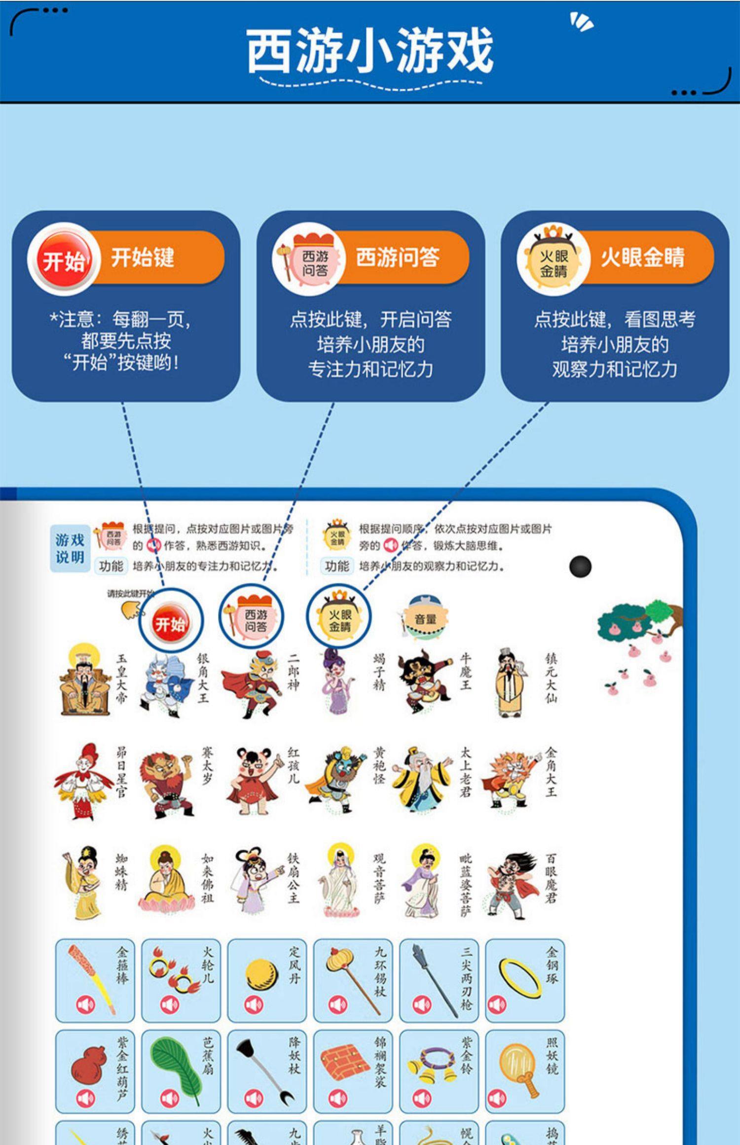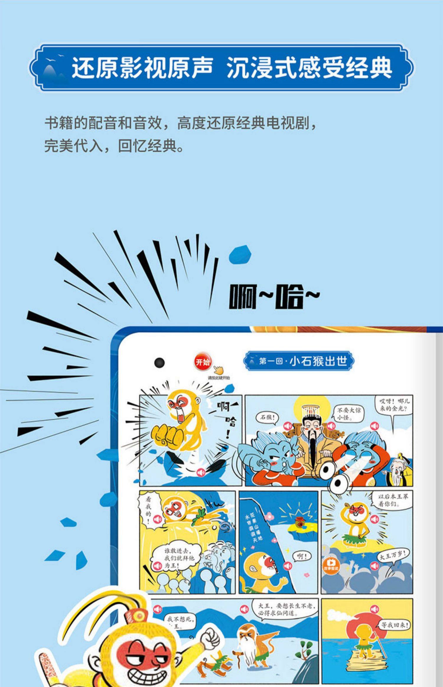 Children's Journey to the West Comic Audio Book, Finger-Point Reading Sound Book, Genuine Comic Book, Classic Four Great Classics Picture Book, Early Education and Intelligence Development for Children Aged 0 to 3, Talking Early Education Story Book for Babies Aged 3-6, Tear-Resistant Children's Book
