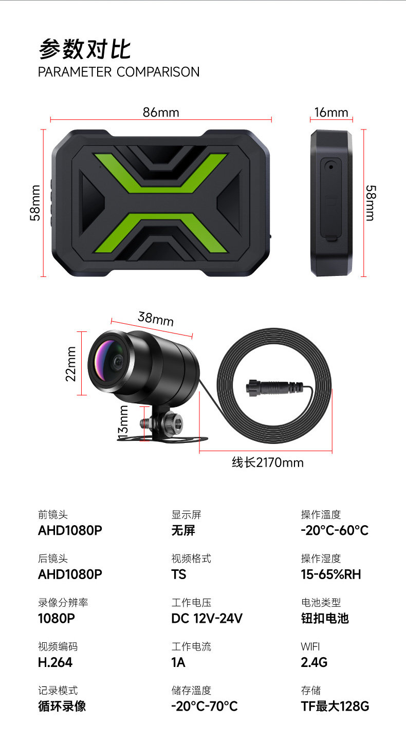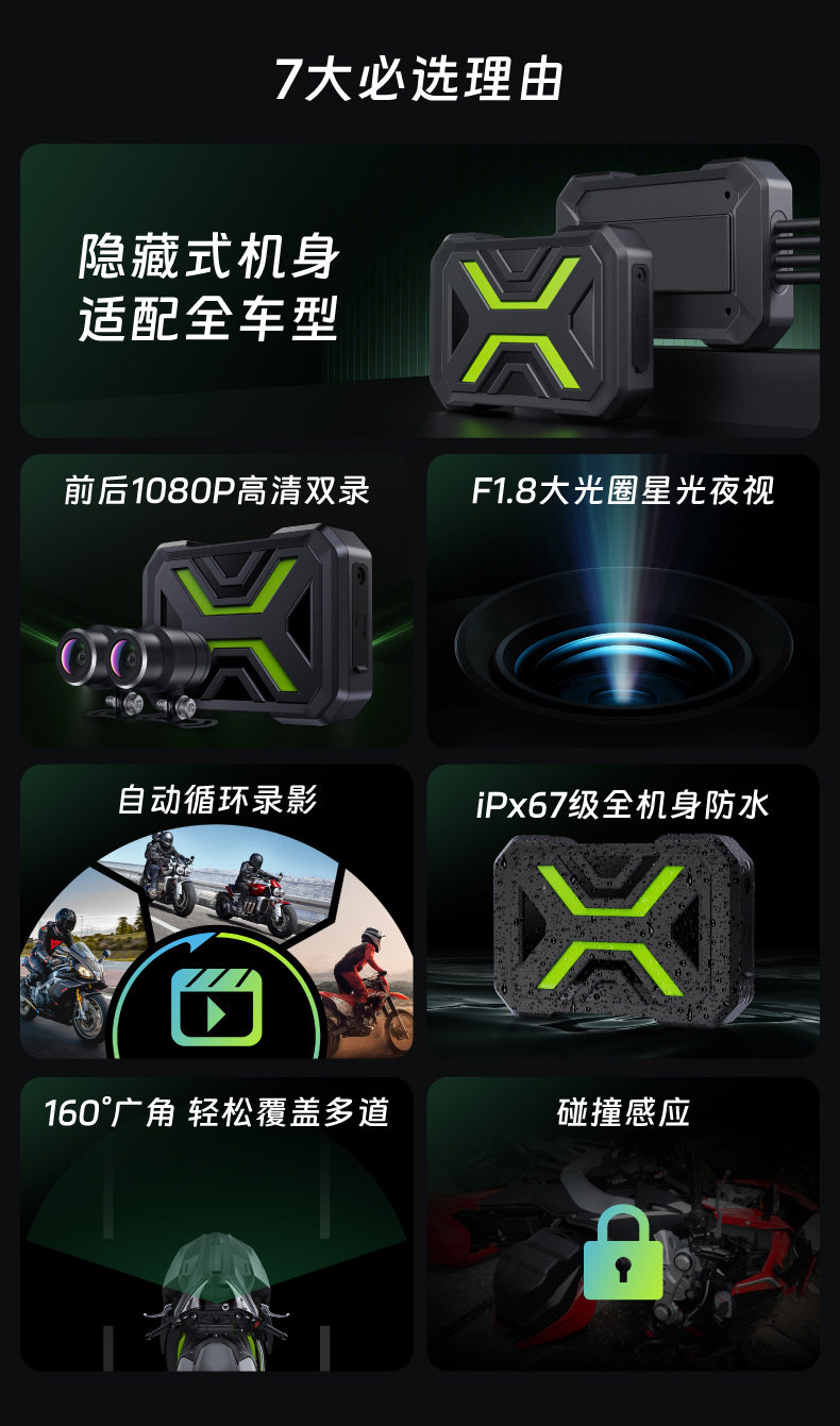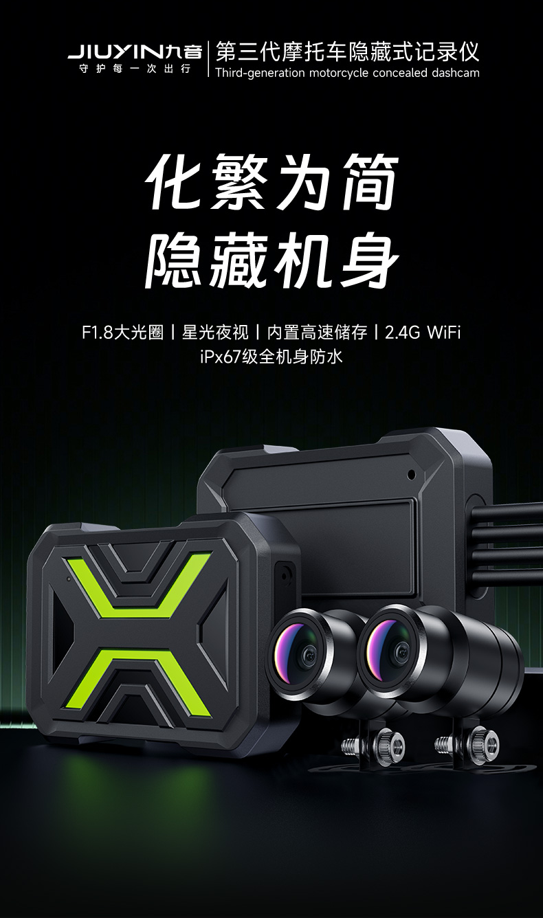 Jiuyin Driving Recorder with Dual Front and Rear Cameras for Motorcycles, Electric Vehicles/Motorbikes, and Parking Monitoring