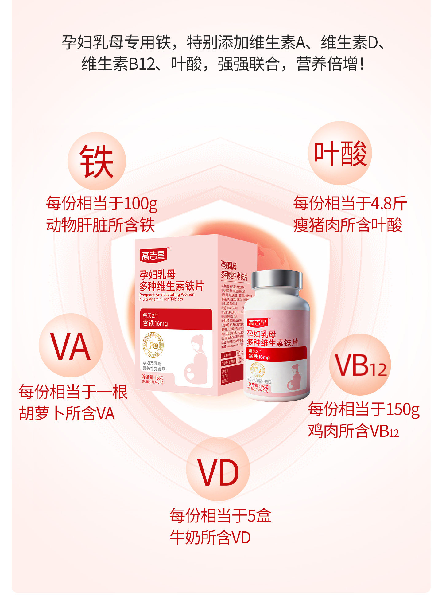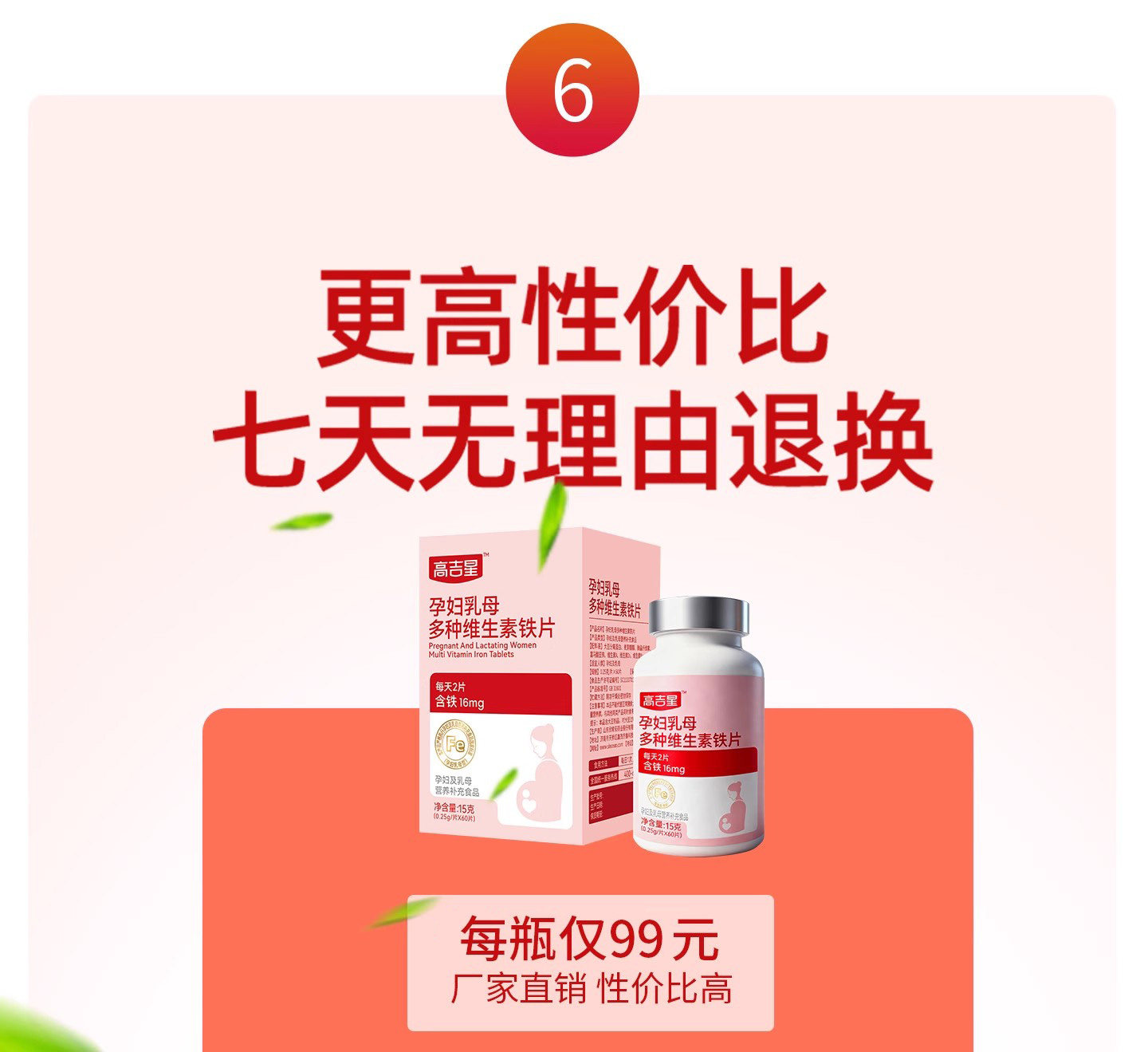 | Color Classification | 1 Bottle of Iron for Pregnant Women,The Company Is a Corporate Member of the Chinese Association for Population and Family Planning,3 Bottles of Iron for Pregnant Women (Buy 2 and Get 3),The Company Is a Corporate Member of the Chinese Association for Population and Family Planning,6 Bottles of Iron for Pregnant Women (Buy 4 and Get 6),The Company Is a Corporate Member of the Chinese Association for Population and Family Planning,1 Bottle of Iron for Pregnant Women + 1 Bottle of Vd Milk Calcium for Pregnant Women,1 Bottle of Iron for Pregnant Women + 1 Bottle of Bird's Nest Acid Dha for Pregnant Women,2 Boxes of Maternal Nutrients + 1 Bottle of Bird's Nest Acid Maternal Dha |