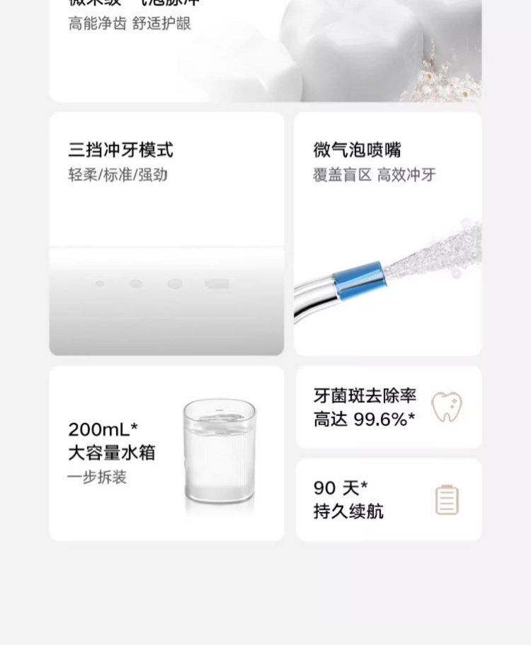 Mijia Electric Dental Irrigator 2 for Home Use, Micron-Level Bubble Pulse, Anti-Pain, Three-Speed Dental Irrigation, 200ml Large Water Tank