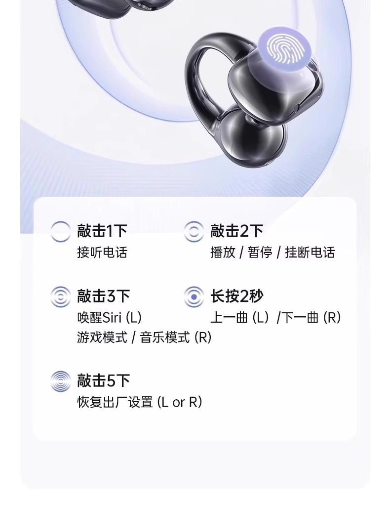 Ai Bluetooth Headset Wireless Bone Conduction Ear Clip Open Type Non-In-Ear 2025 New Model Suitable for Apple Sony Sony