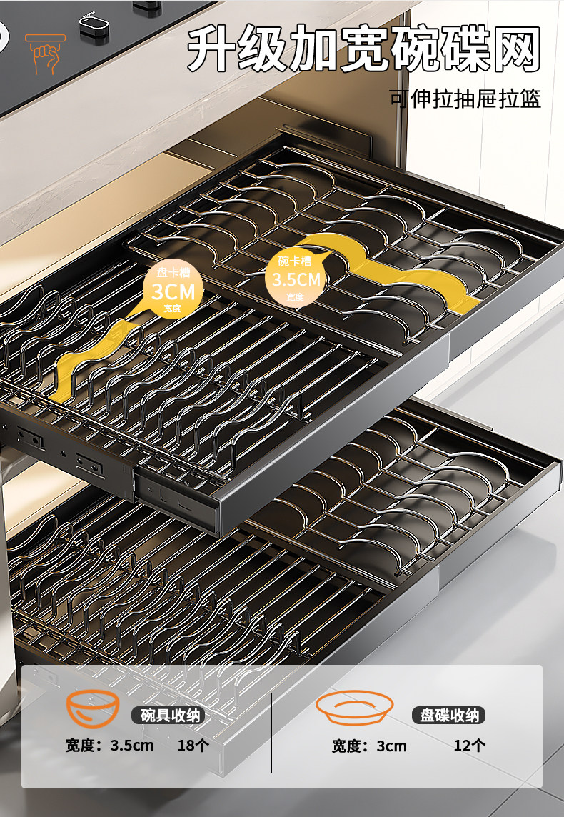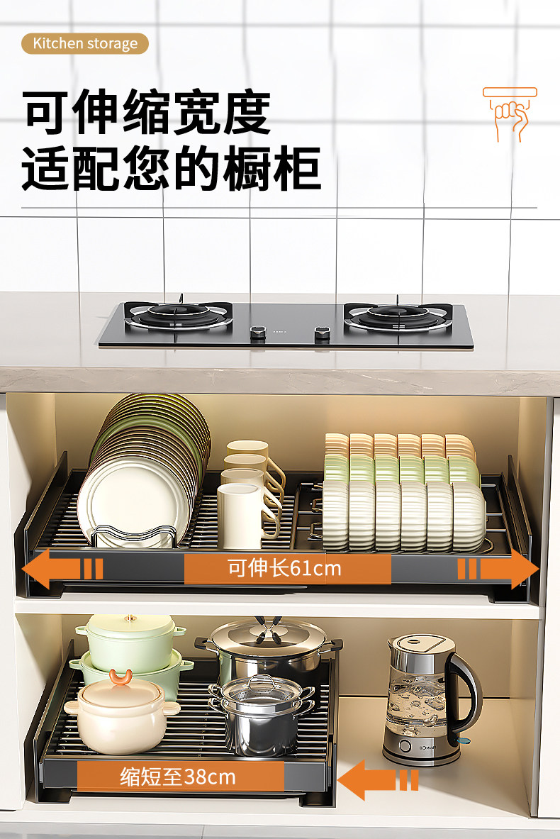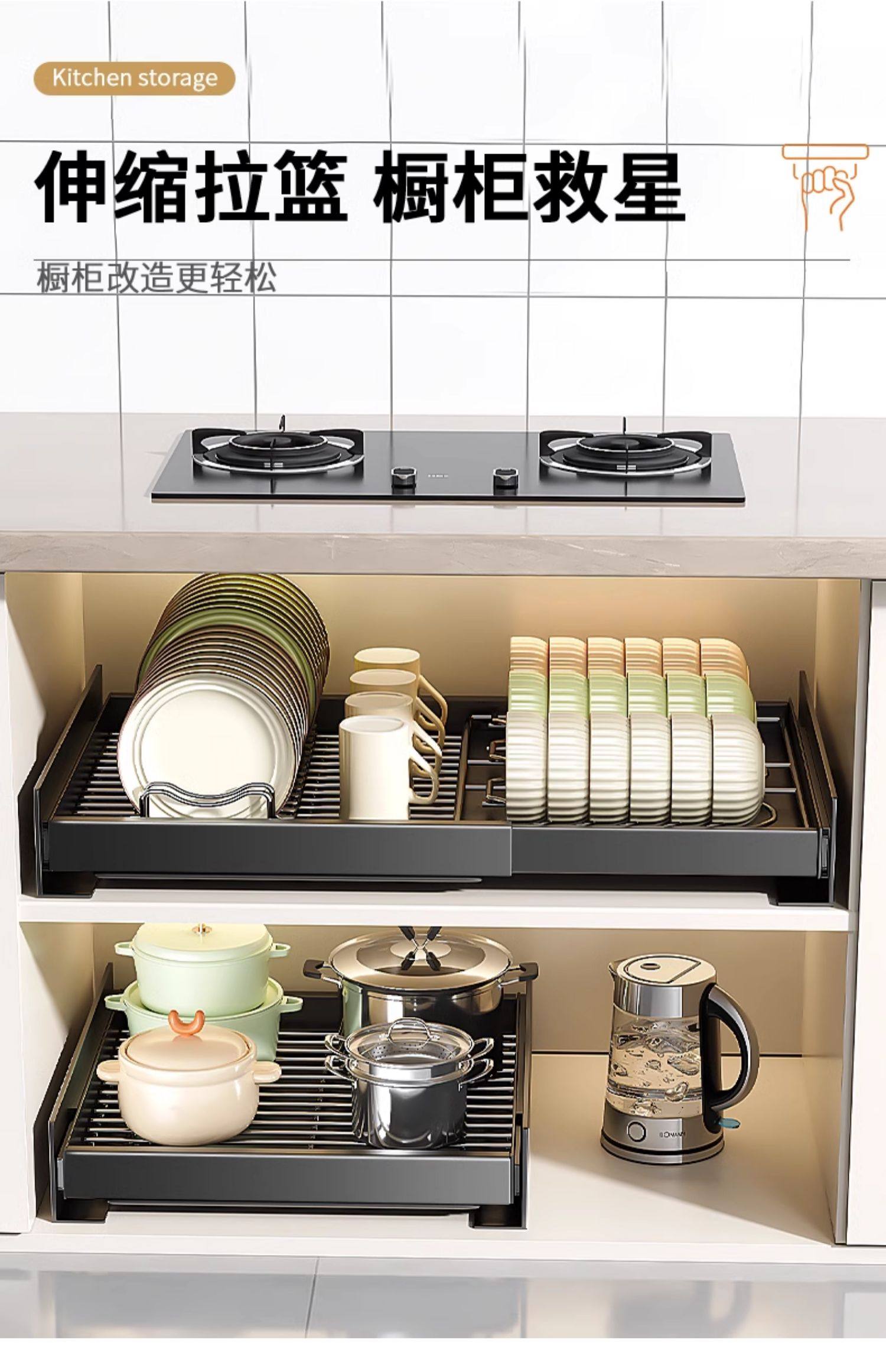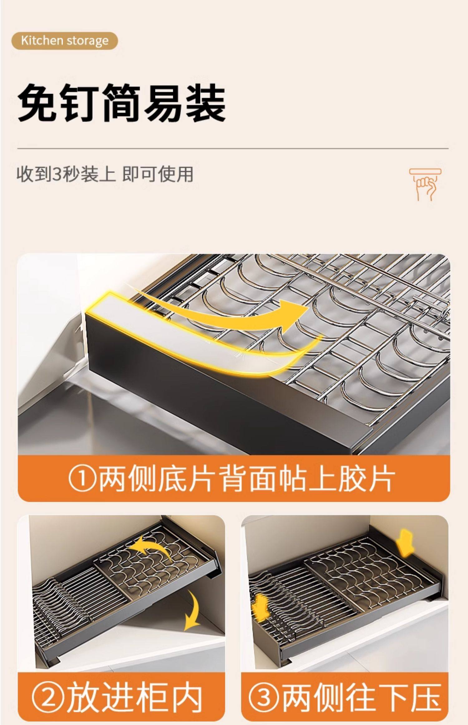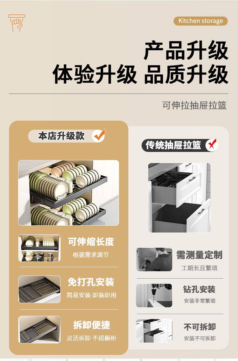 Kitchen Cabinet Built-In Shelf Drawer-Type Dish Storage Rack Telescopic Pull-Out Dish Basket Drain Rack Dish Rack