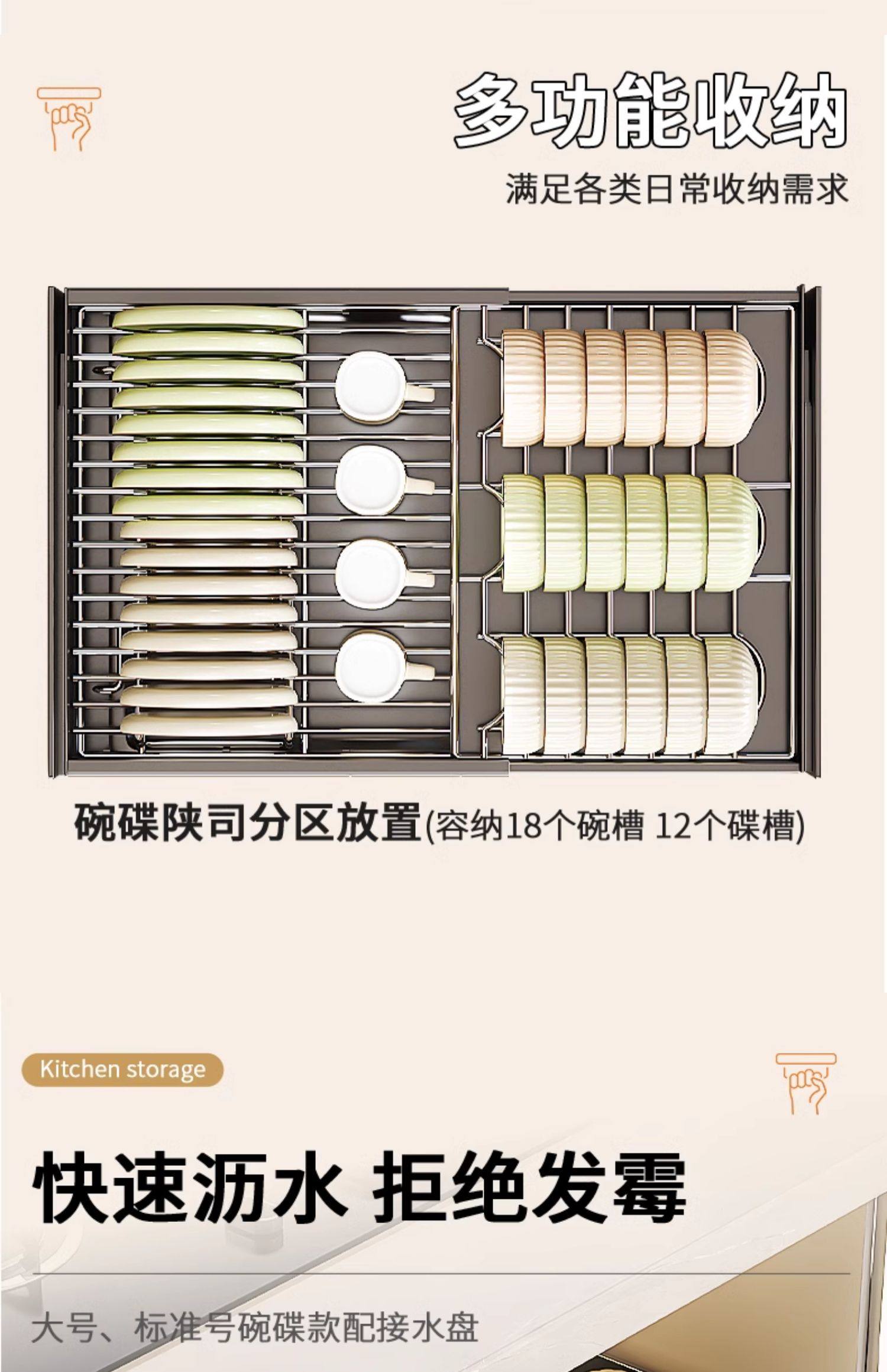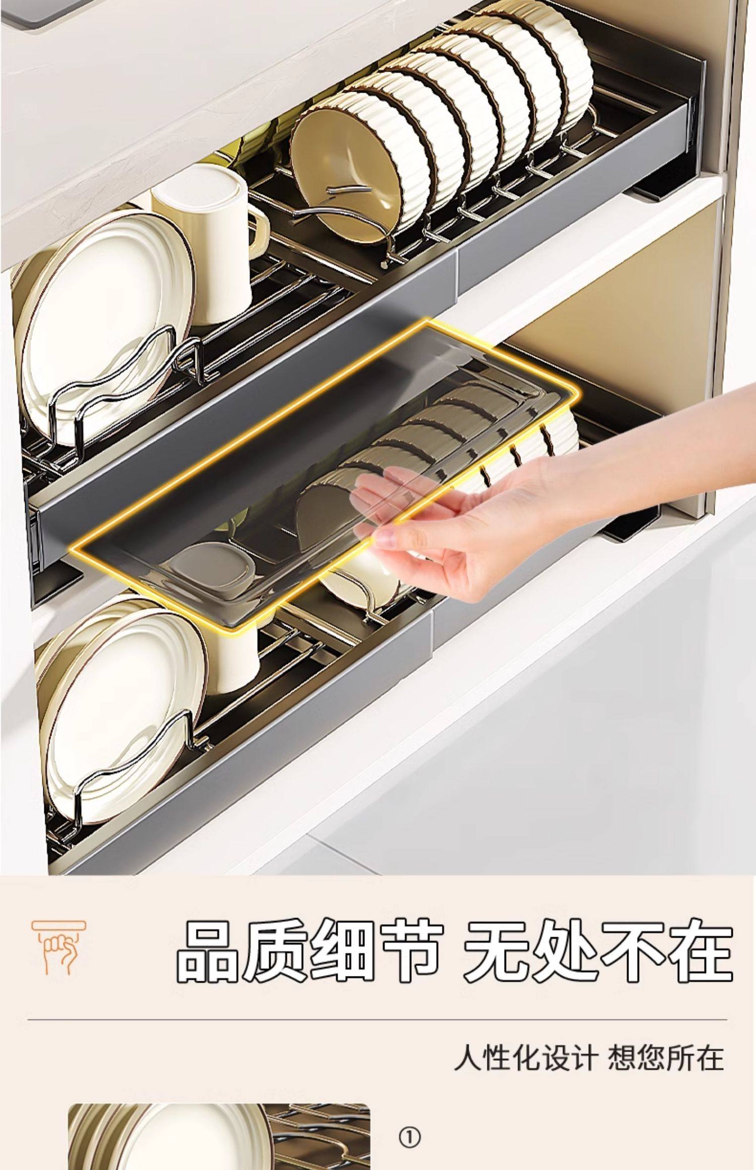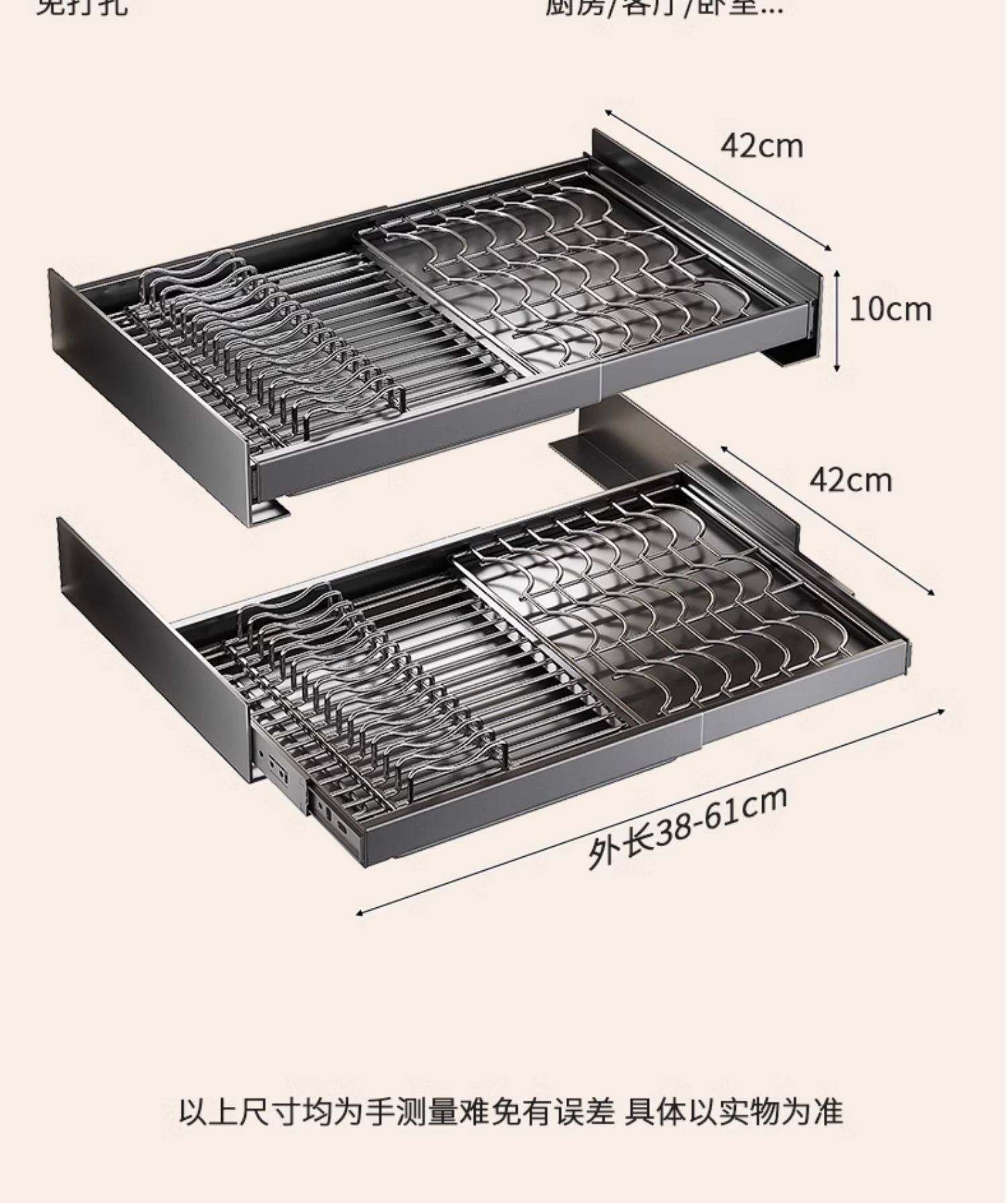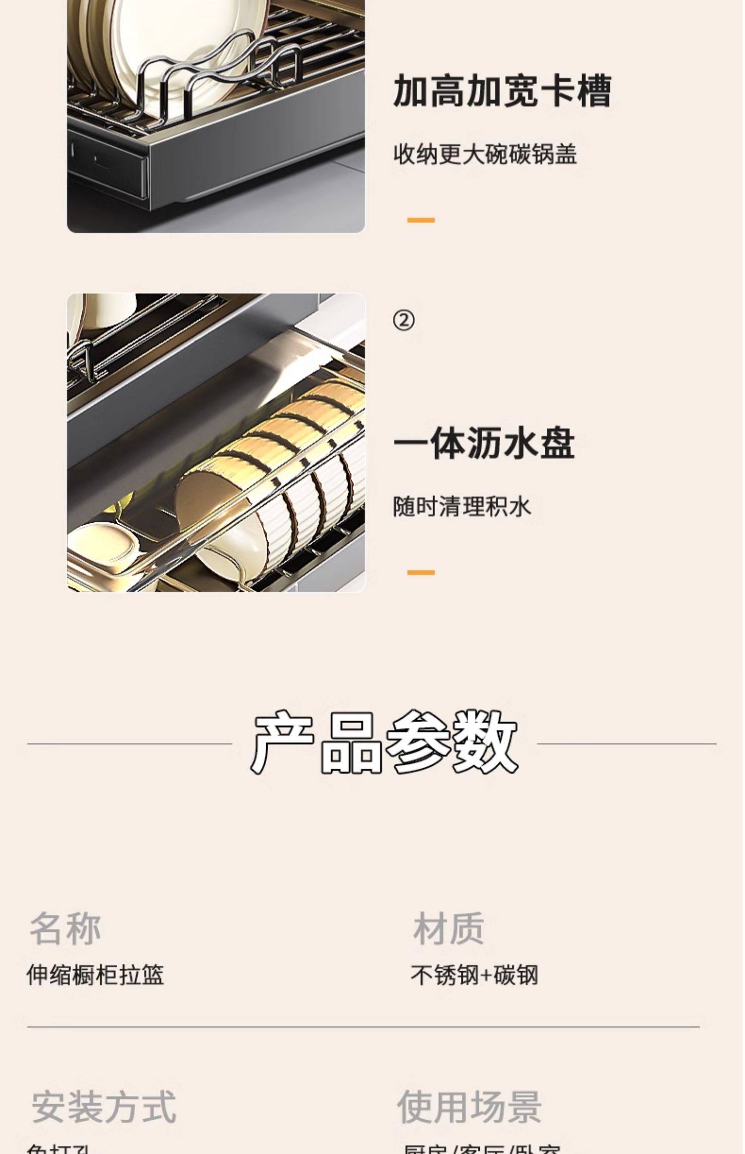 Kitchen Cabinet Built-In Shelf Drawer-Type Dish Storage Rack Telescopic Pull-Out Dish Basket Drain Rack Dish Rack