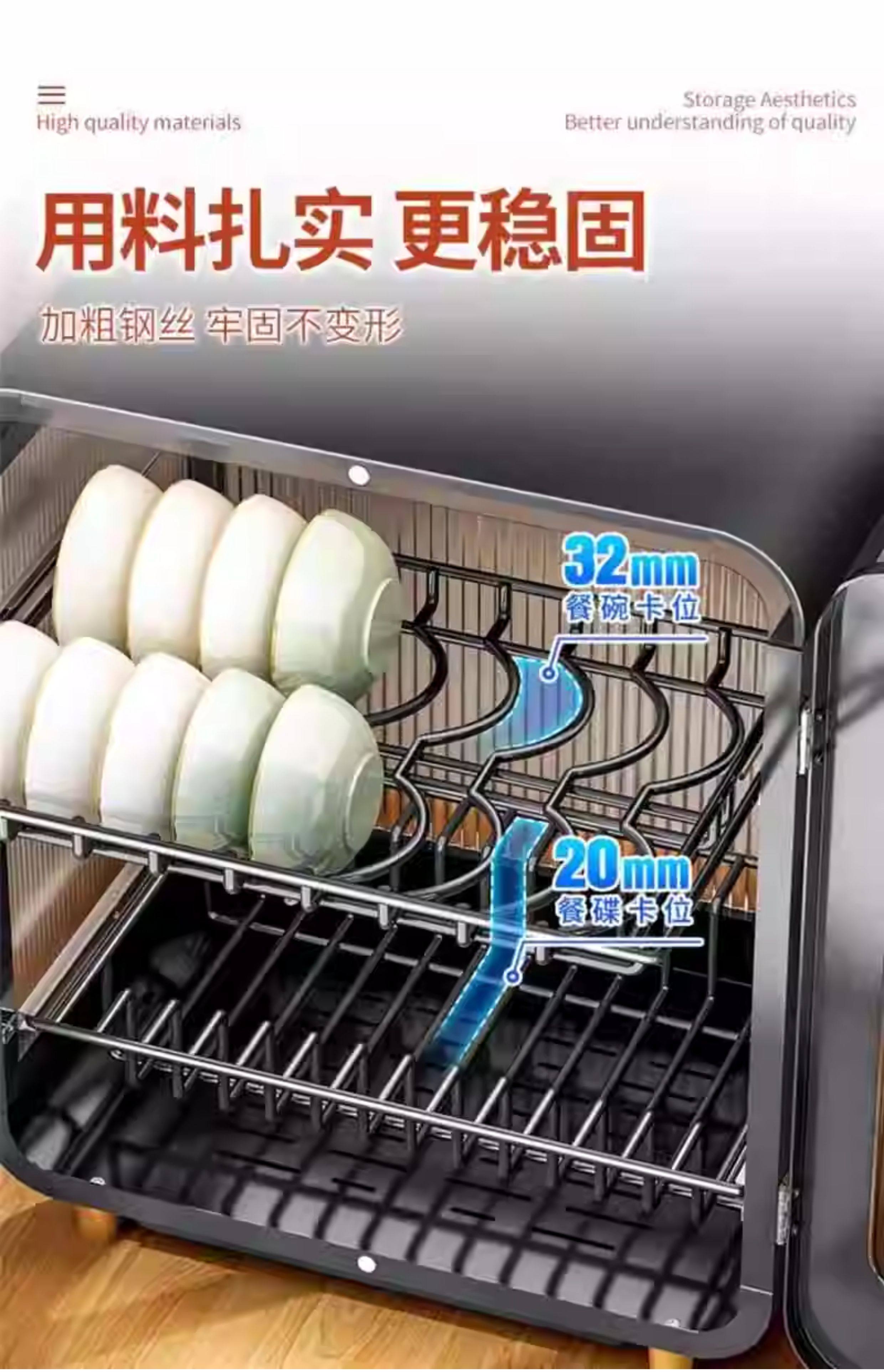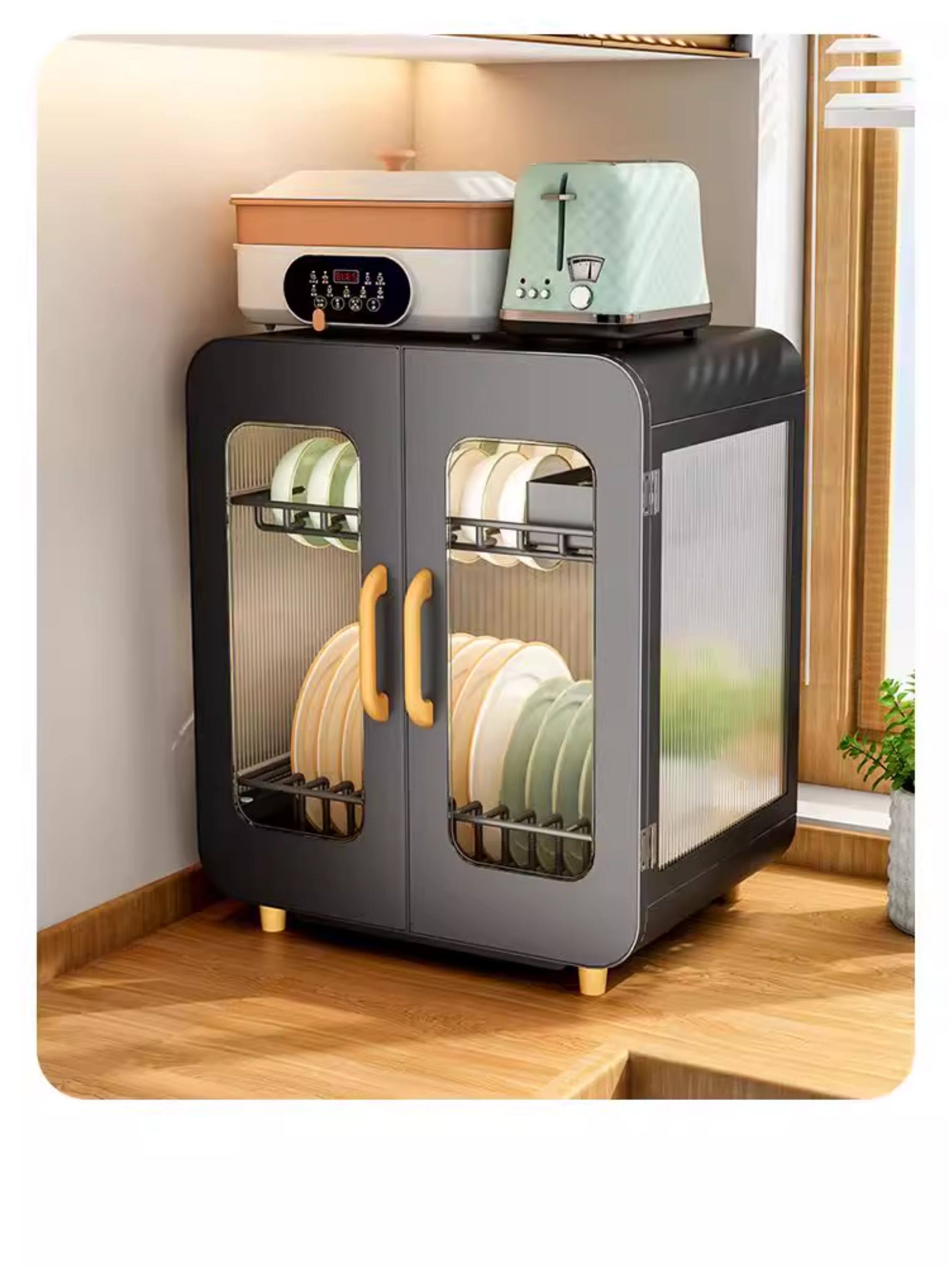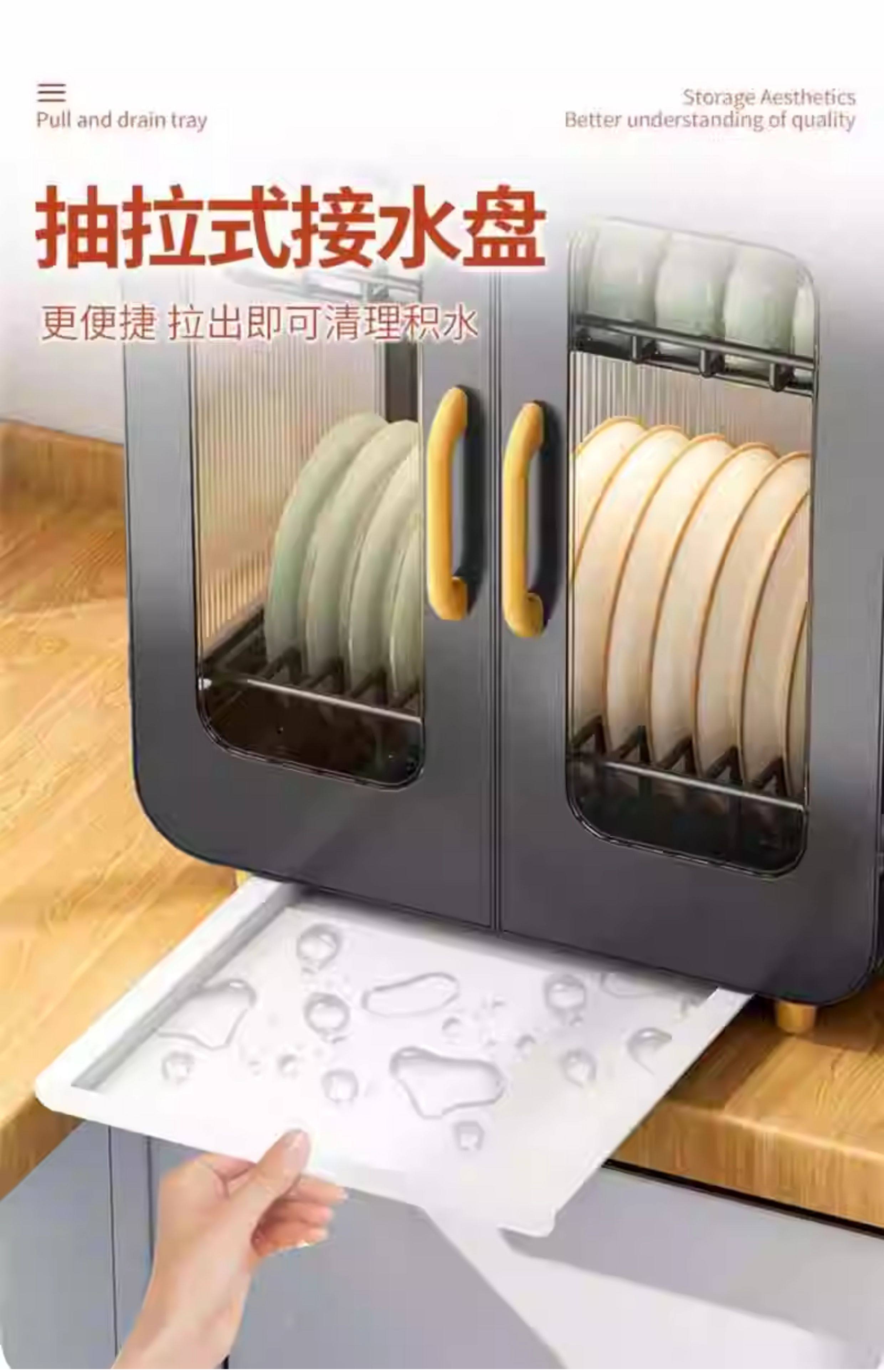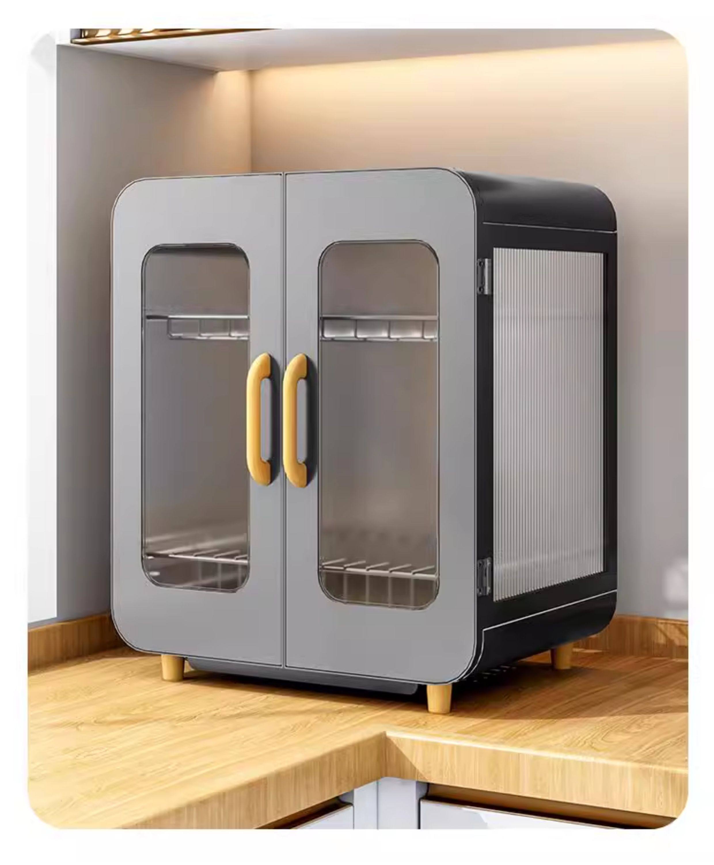 Fully Sealed Kitchen Dish Storage Rack, Dust-Proof Cupboard, Multi-Functional Dishware Storage Rack, Dishware and Cutlery Storage and Draining Rack