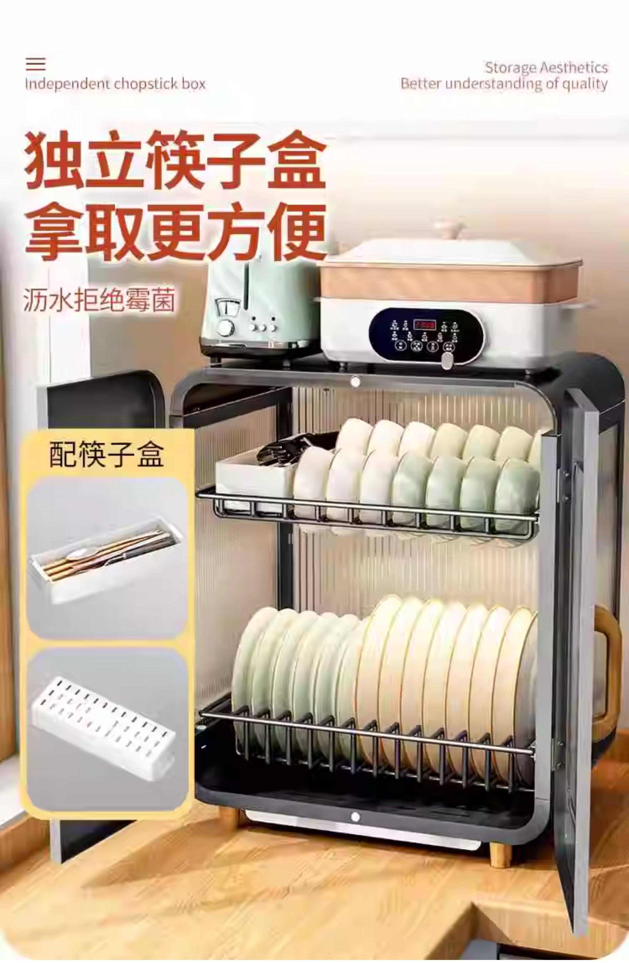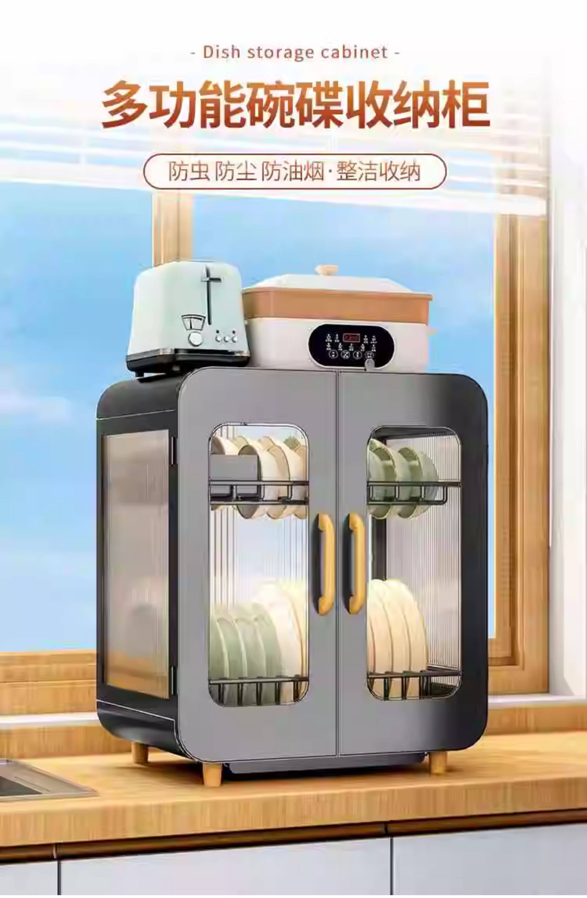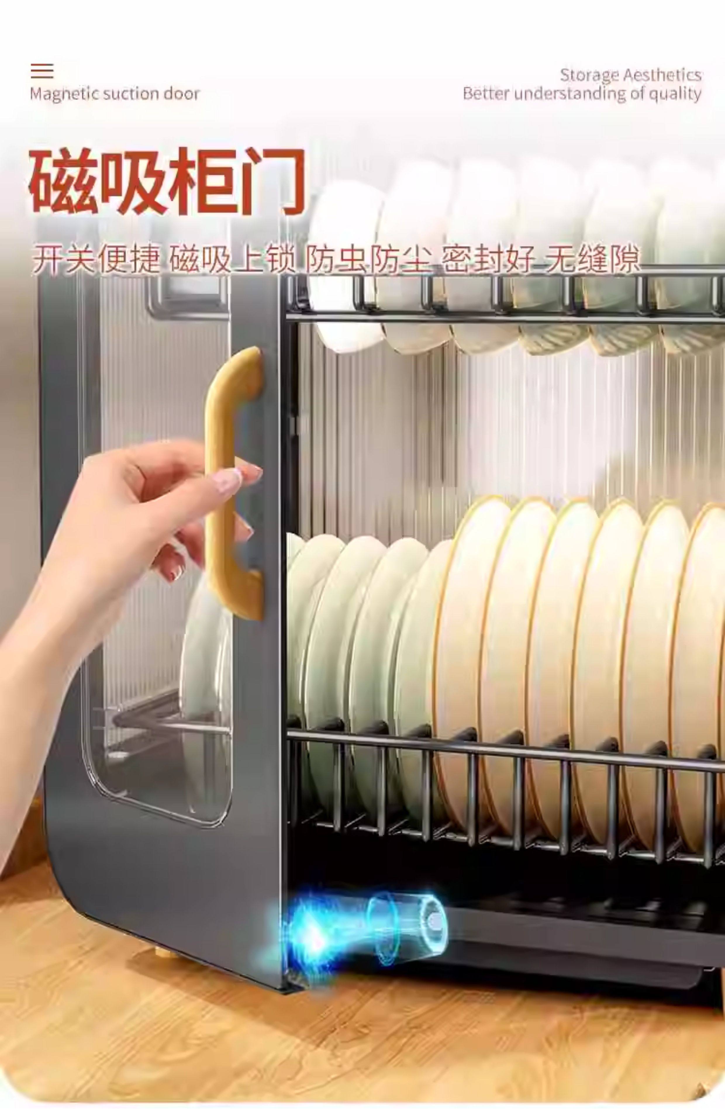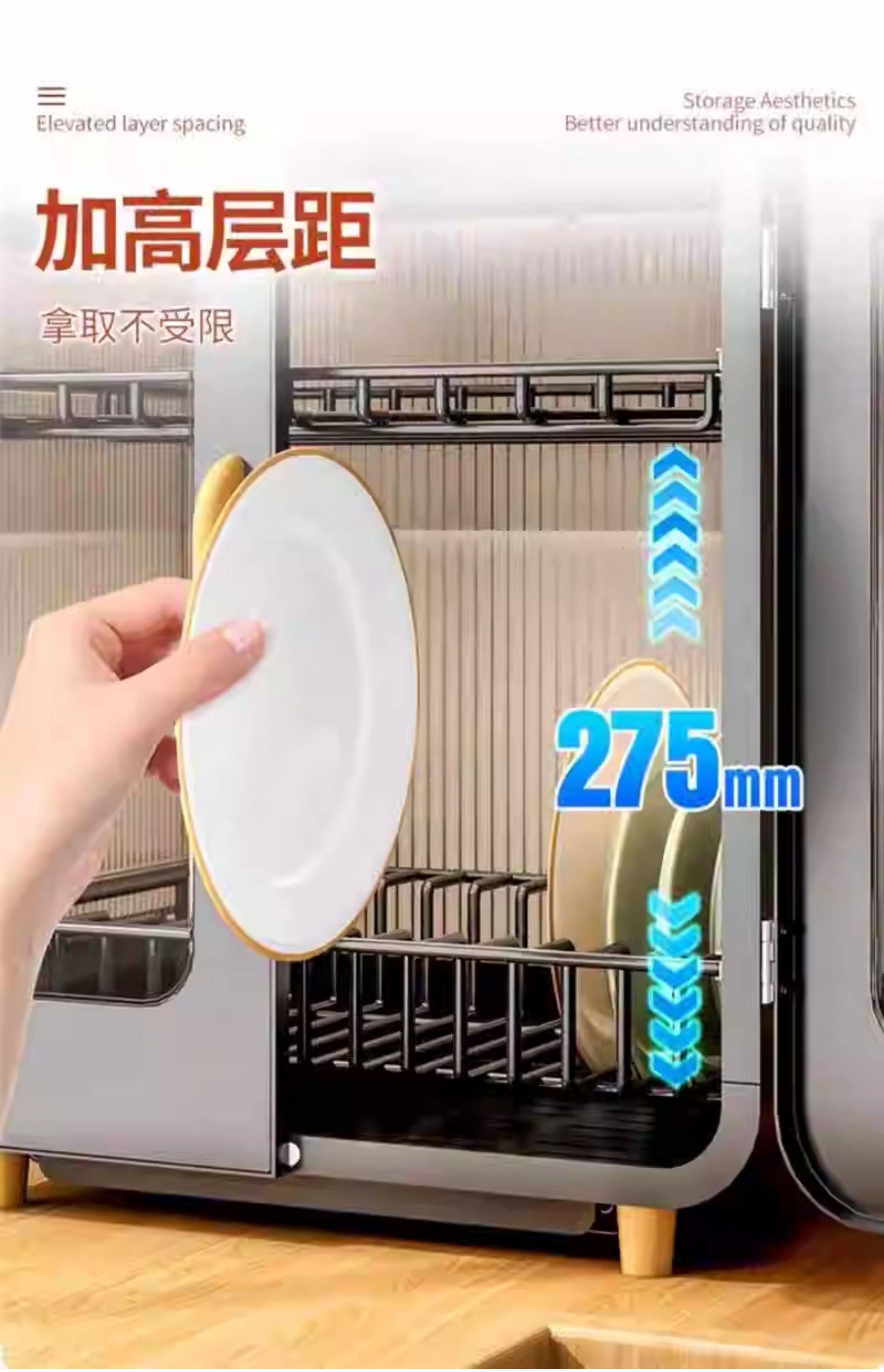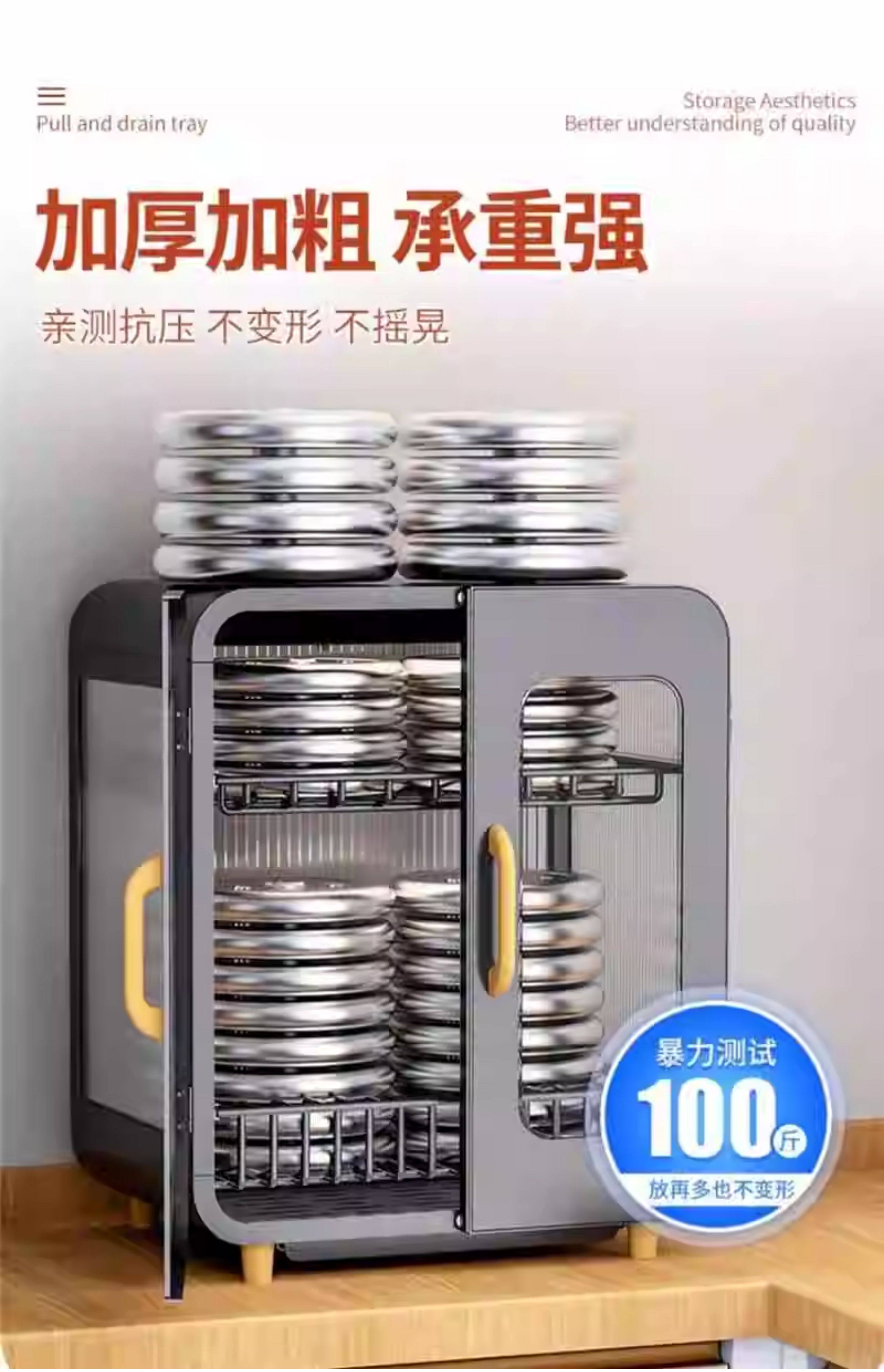 Fully Sealed Kitchen Dish Storage Rack, Dust-Proof Cupboard, Multi-Functional Dishware Storage Rack, Dishware and Cutlery Storage and Draining Rack